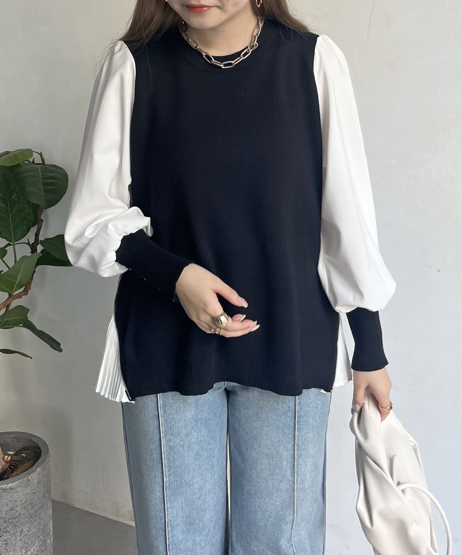 ●カフス部分もニット地になっており、手首がキュッと細く見えるデザイン