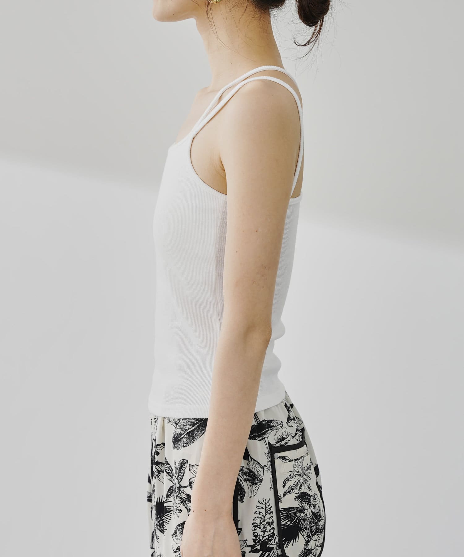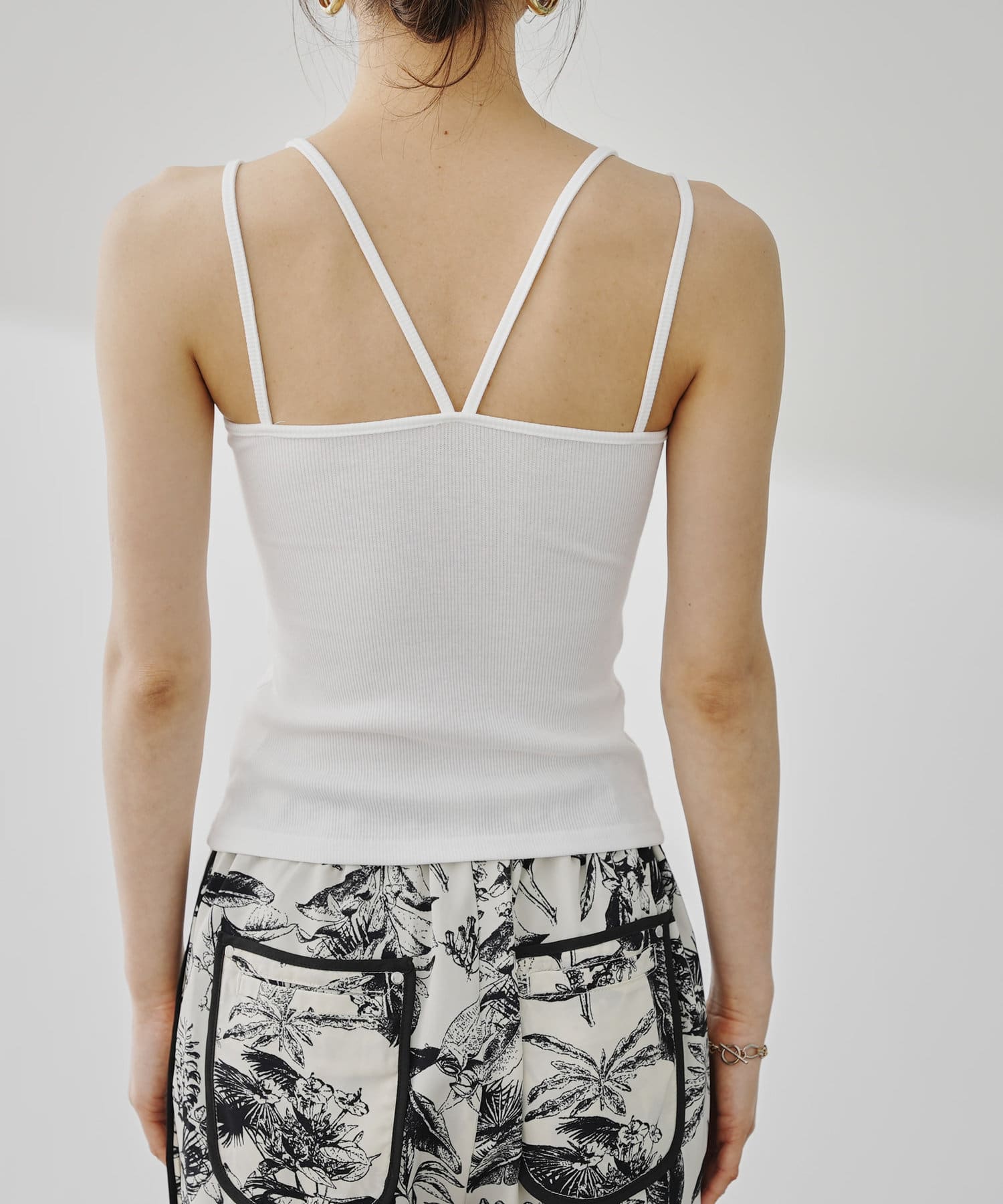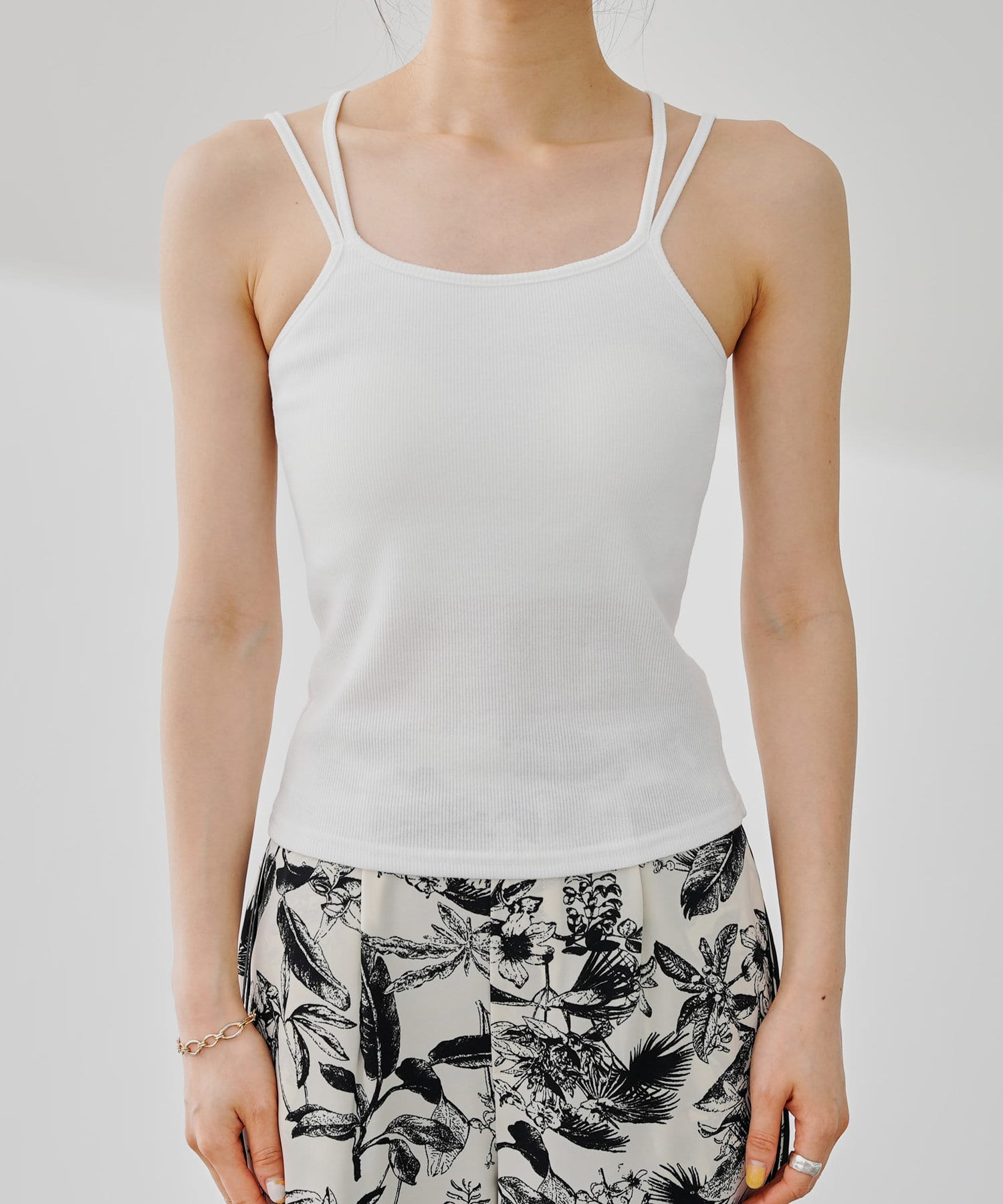 【M/Lサイズ展開】Wストラップカップ付きテレコキャミソール