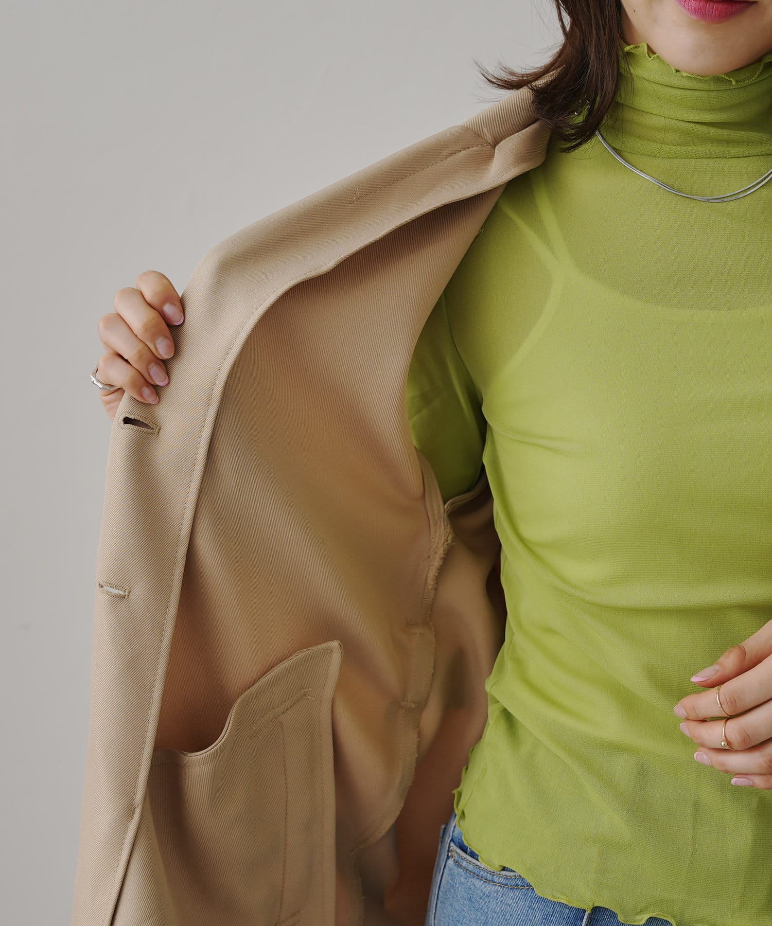 外して前を開けて羽織ってもきれいめに着こなせるシルエットが魅力