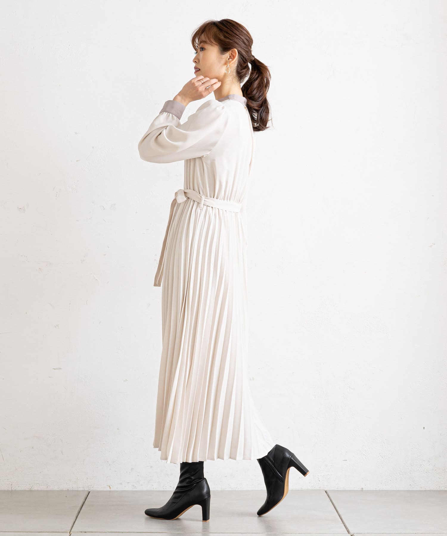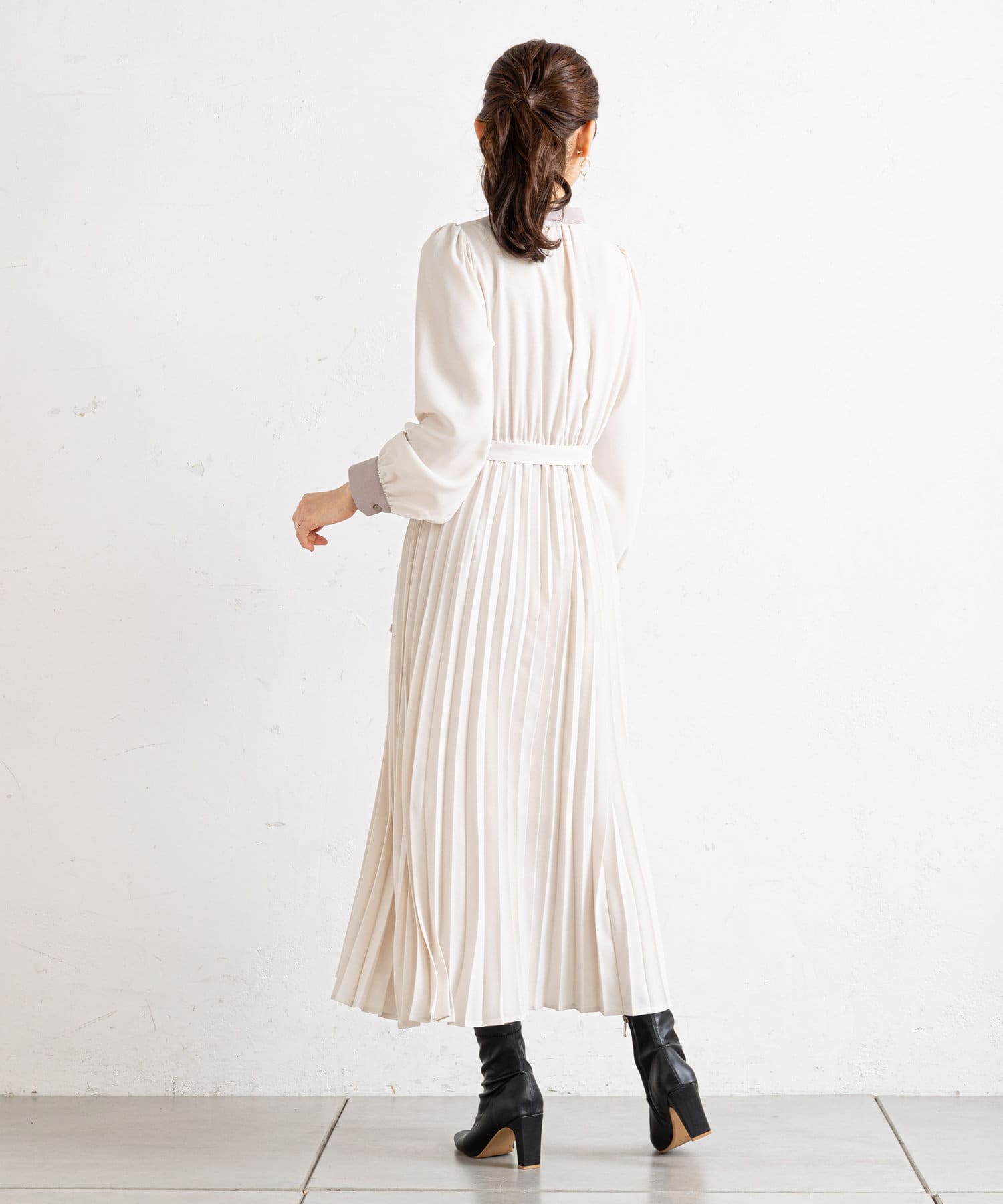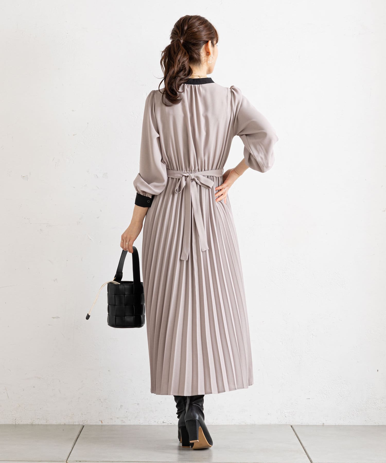 • prose verse(プロズヴェール) 【ウエストゴム仕様】バイカラー裾プリーツワンピース