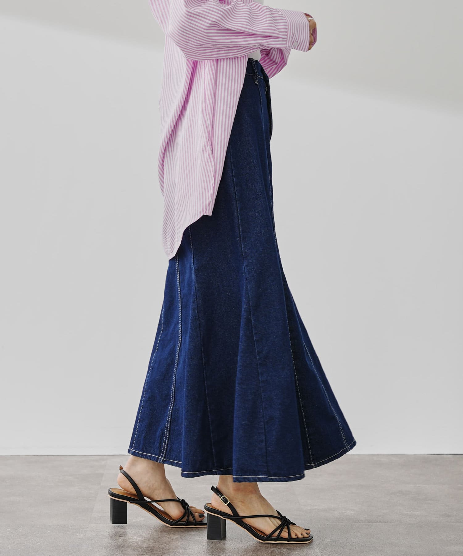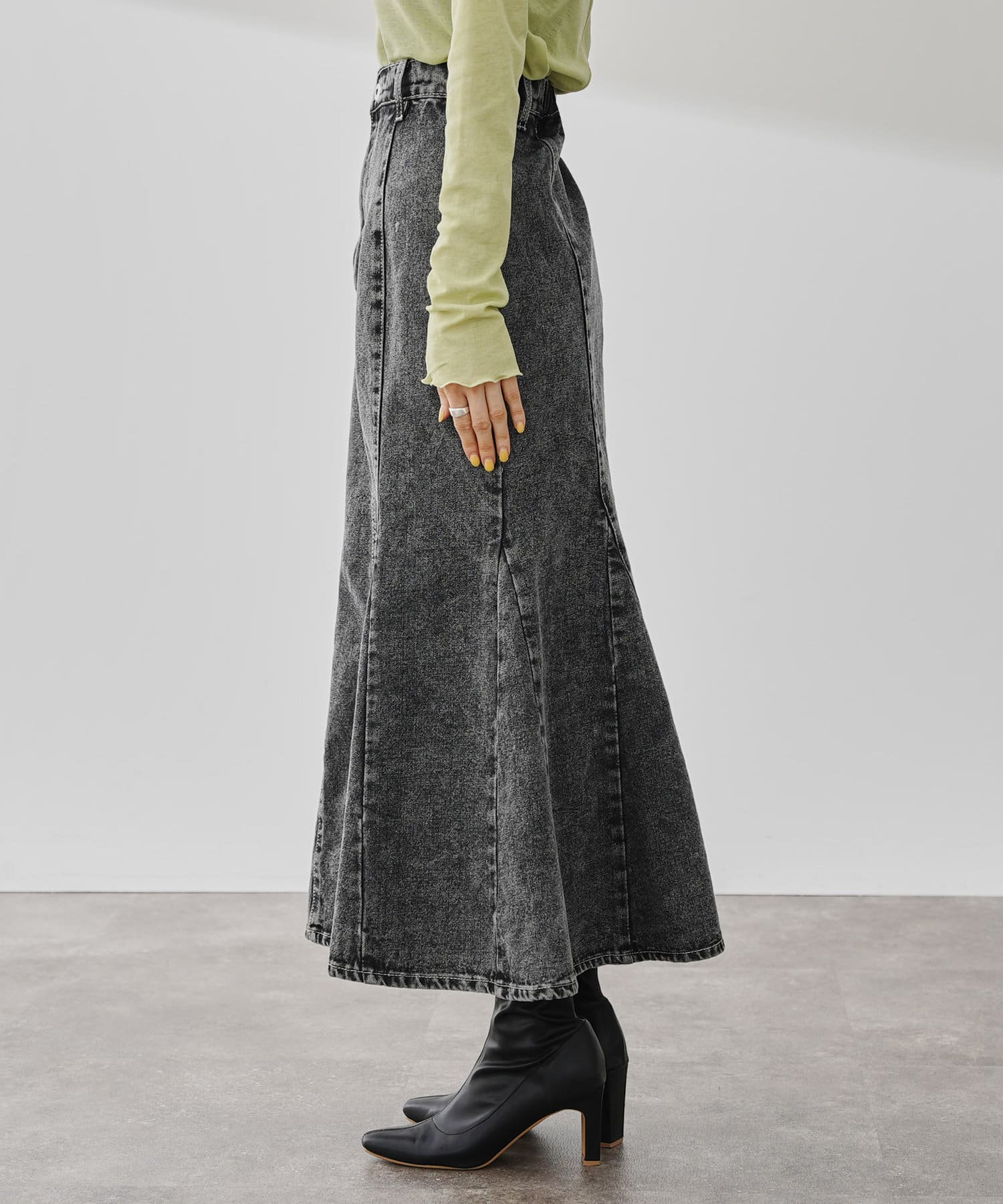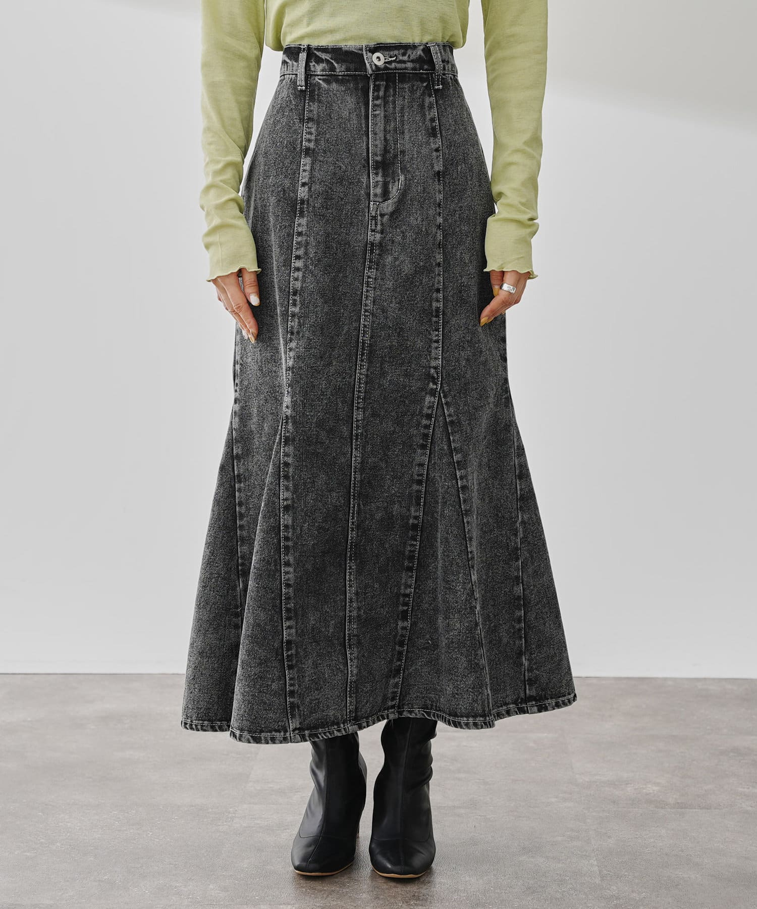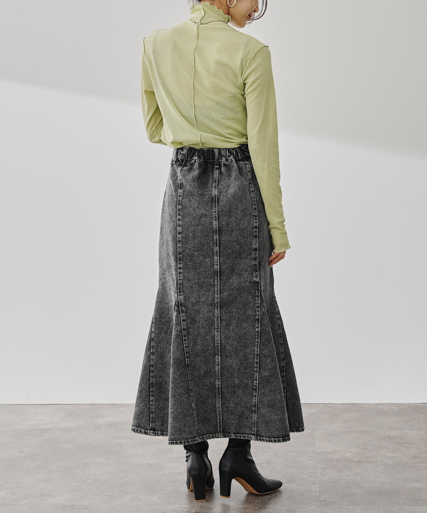 【バックウエストゴム仕様】裾切替デニムマーメイドスカート