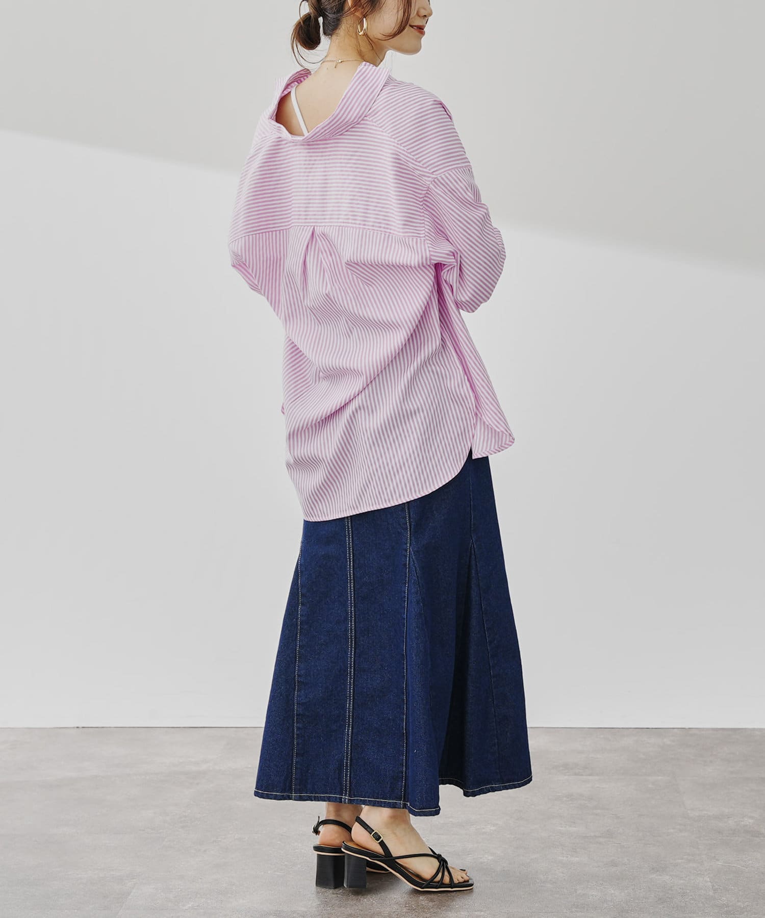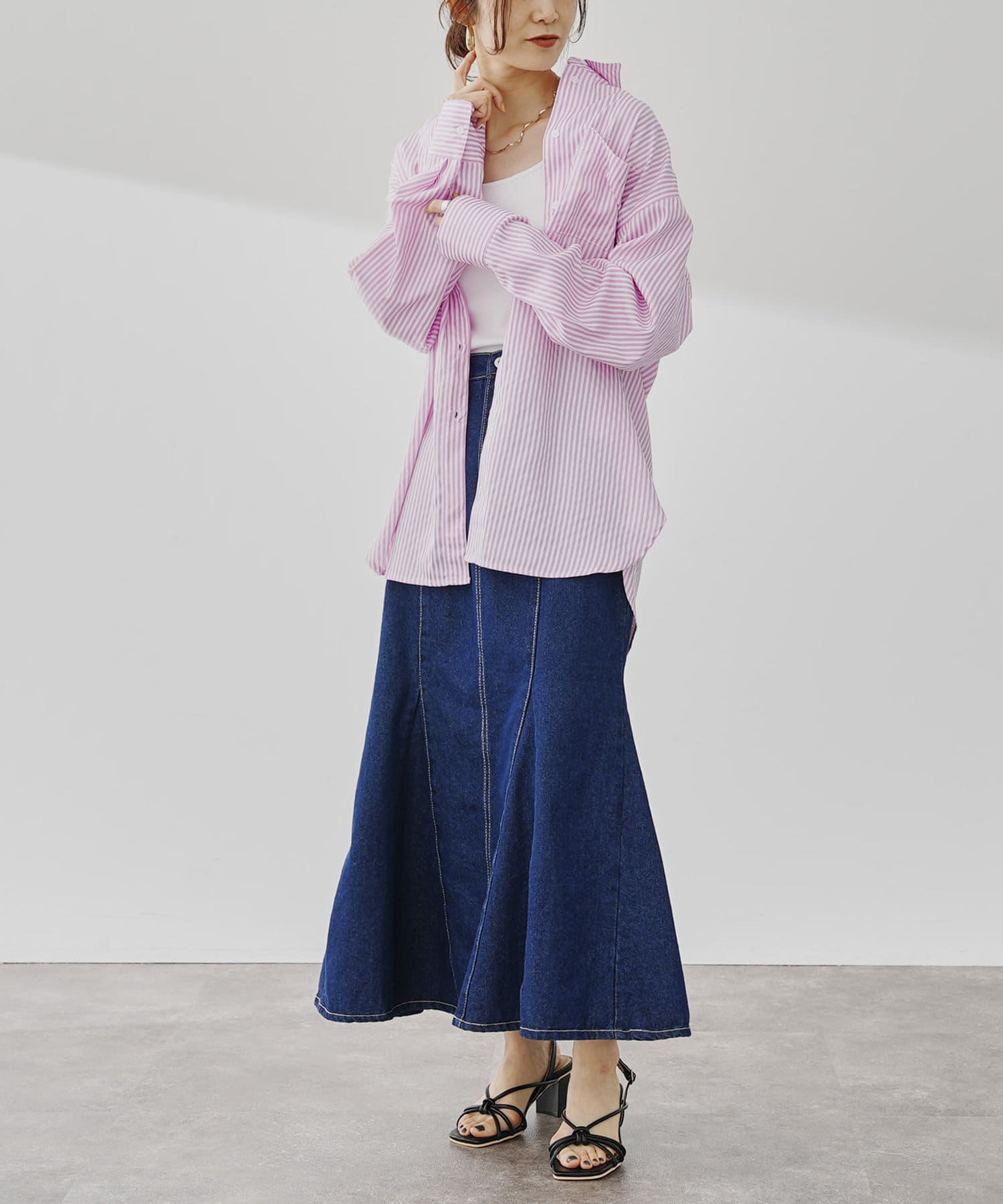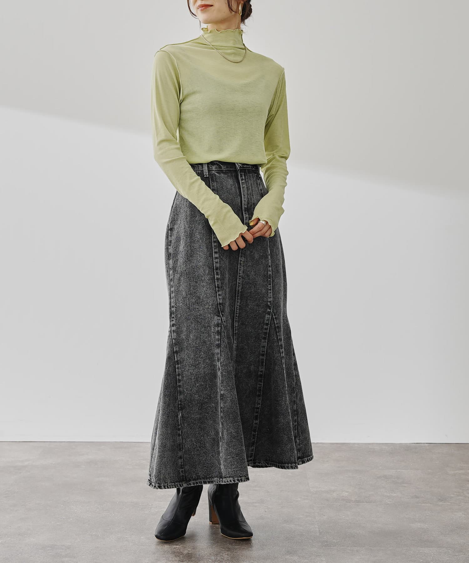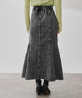 【バックウエストゴム仕様】裾切替デニムマーメイドスカート