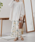●ニュアンスカラーのぼかし柄がこなれ感のあるスタイリングに