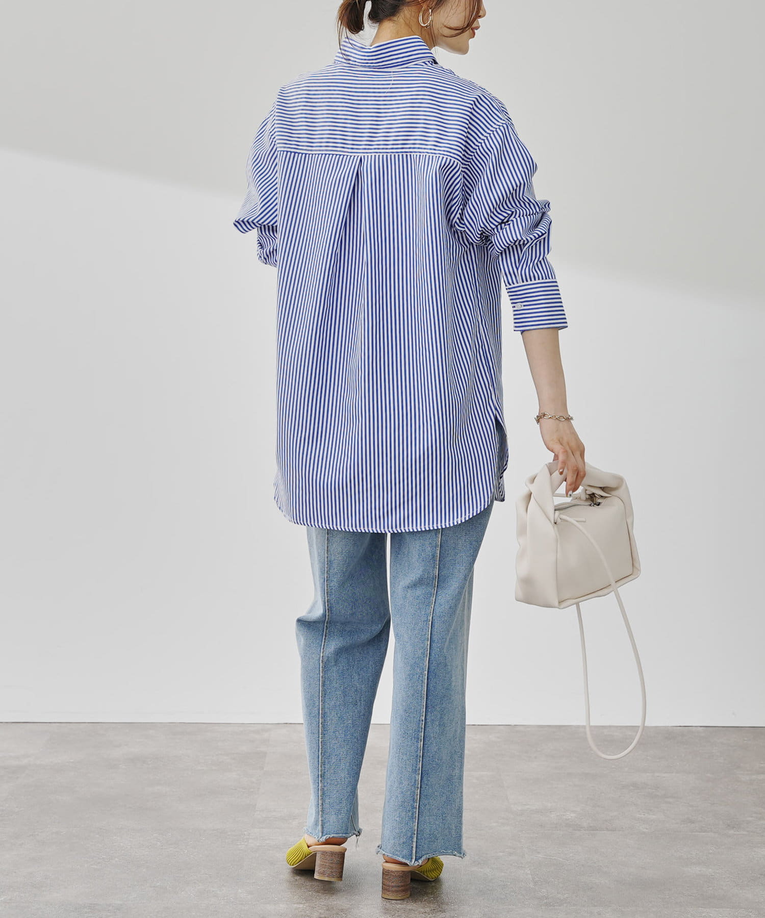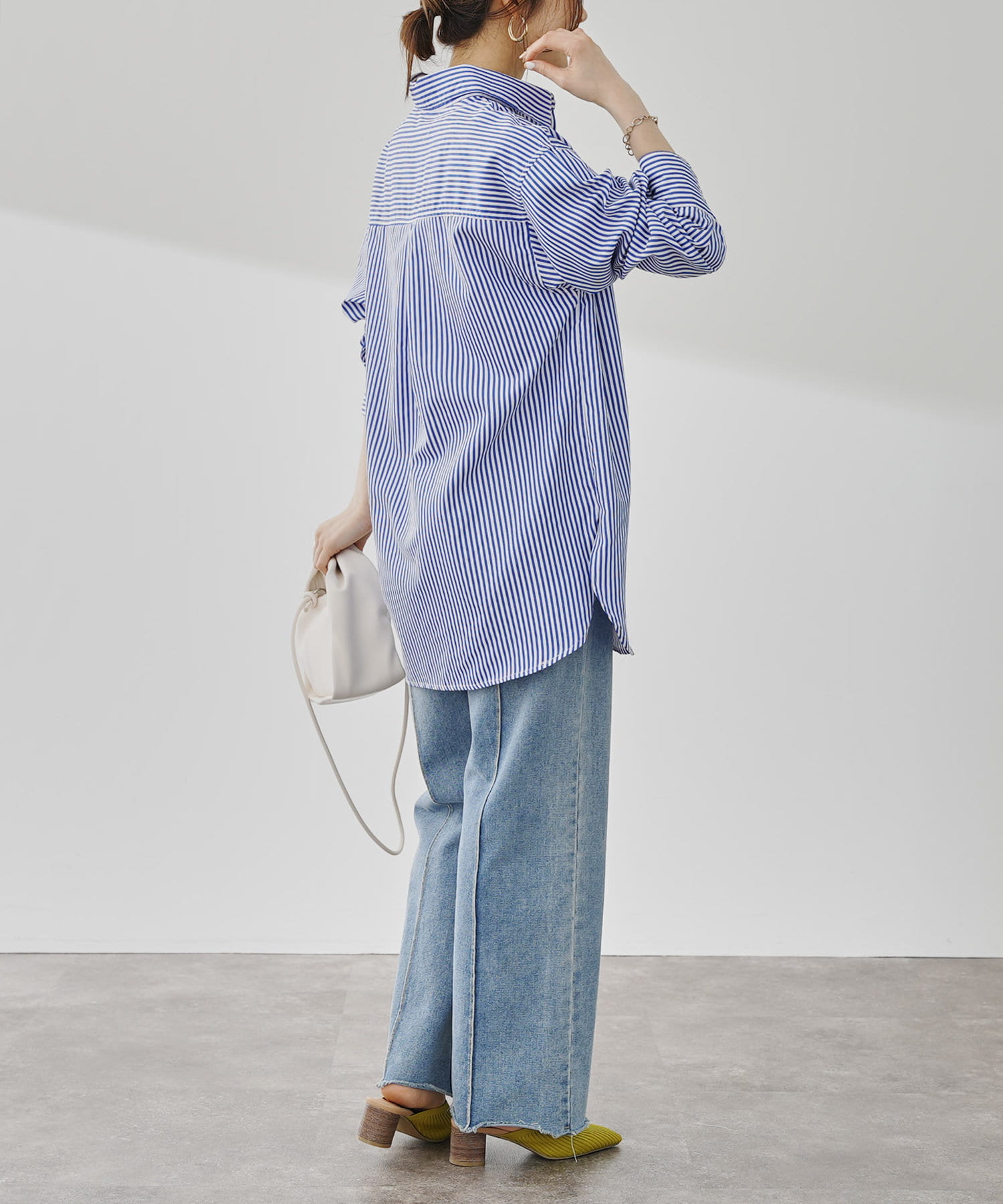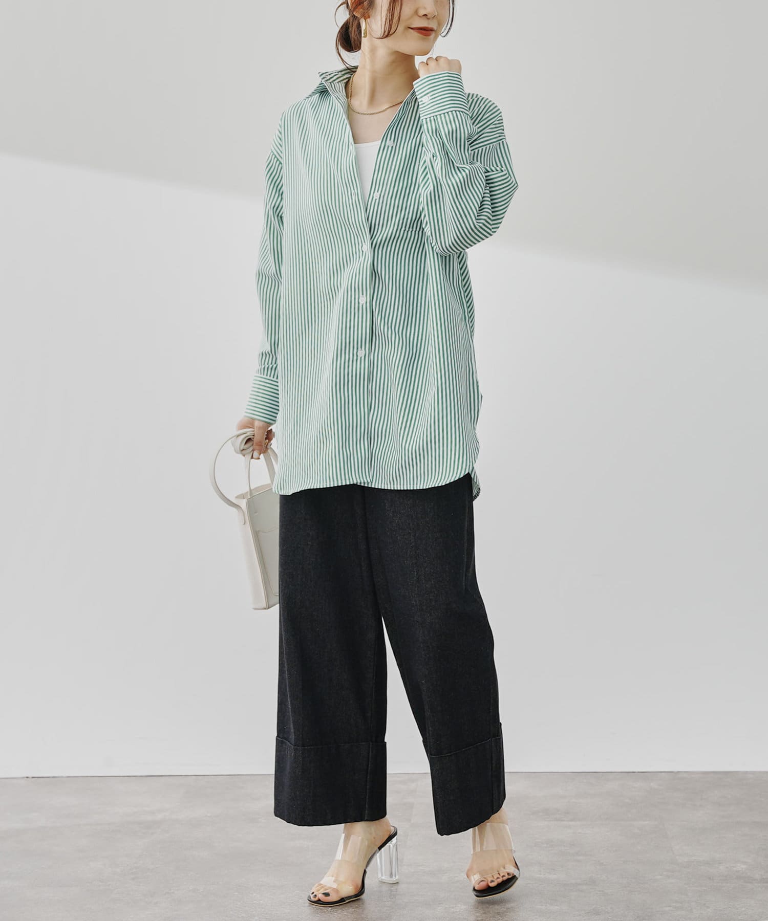 ・ボタンを開けてキャミやTシャツの上から羽織るのも◎
