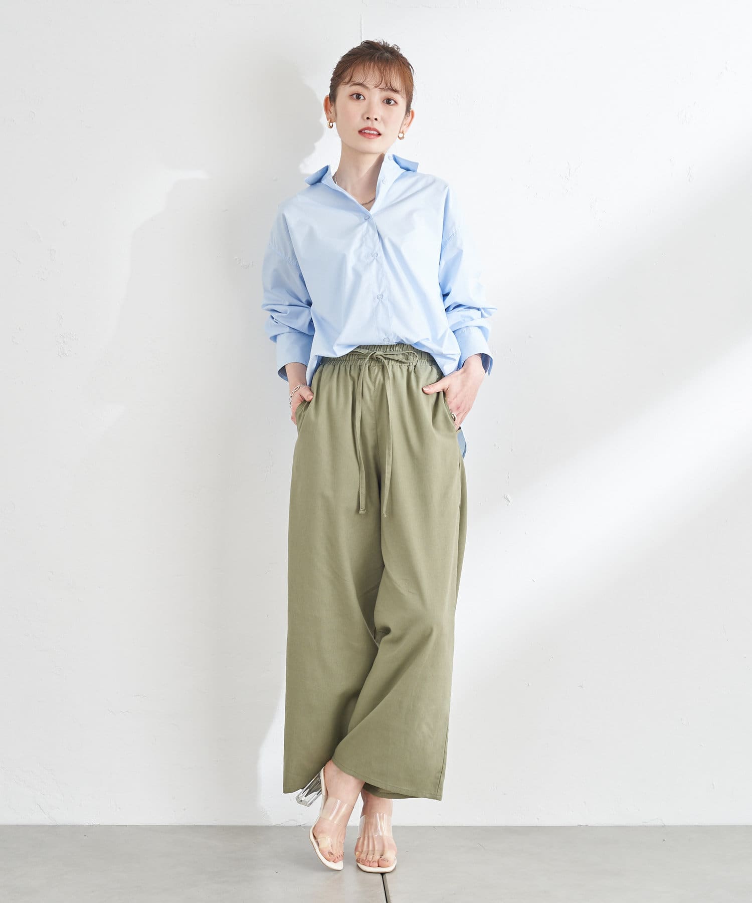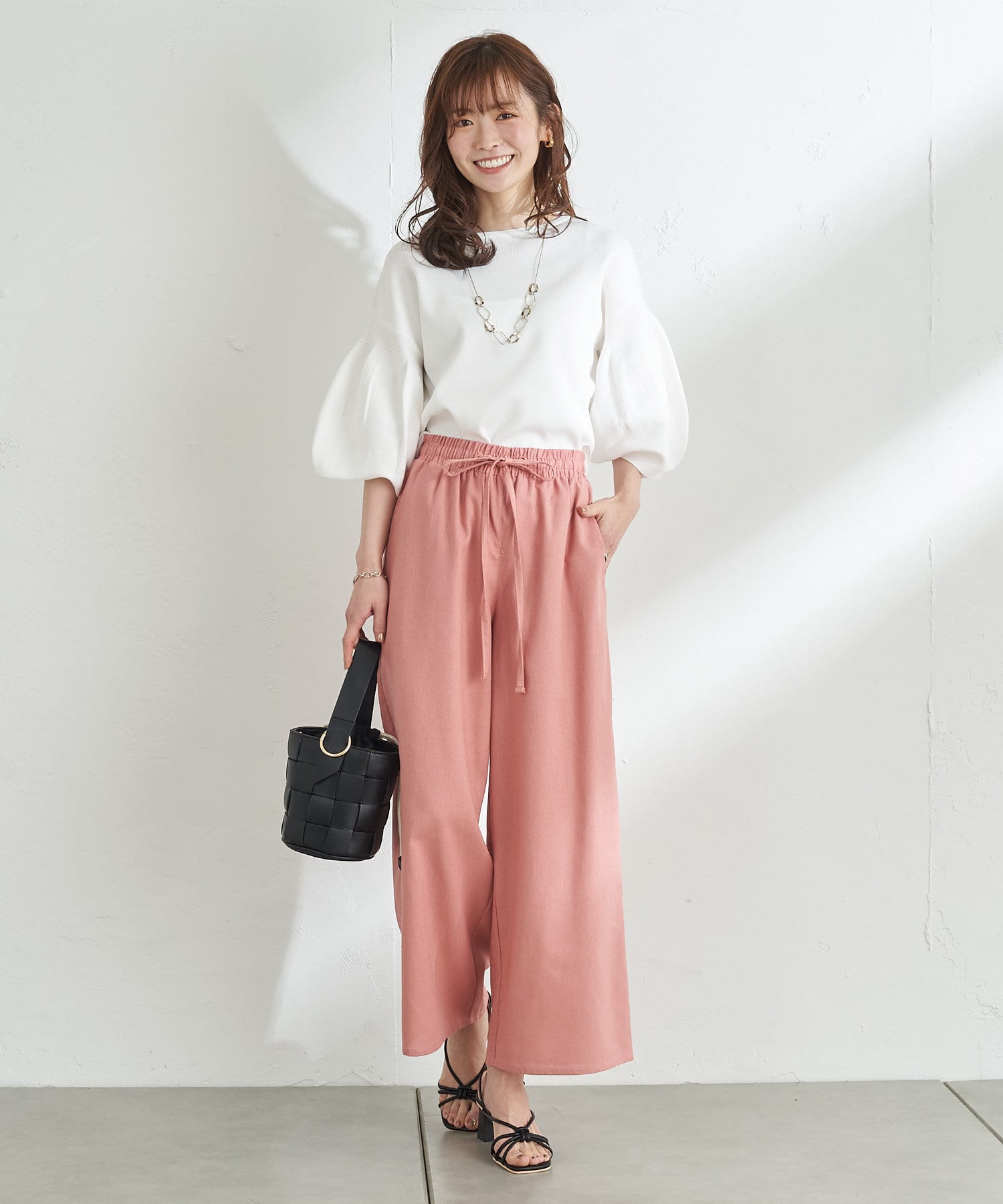 ●さらっと柔らかな肌触りのコットンリネンを使用したイージーパンツ