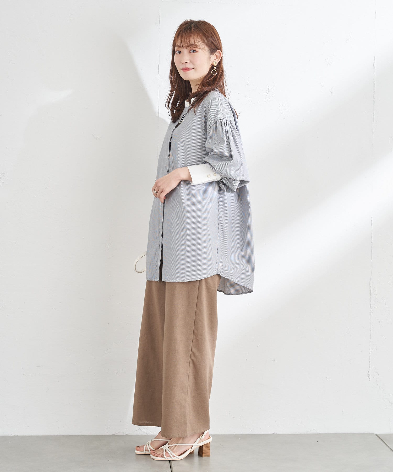 ・袖ボリュームブラウスなどデザイントップスを合わせても◎