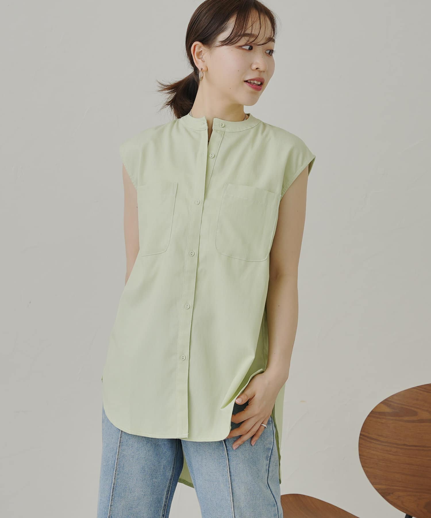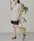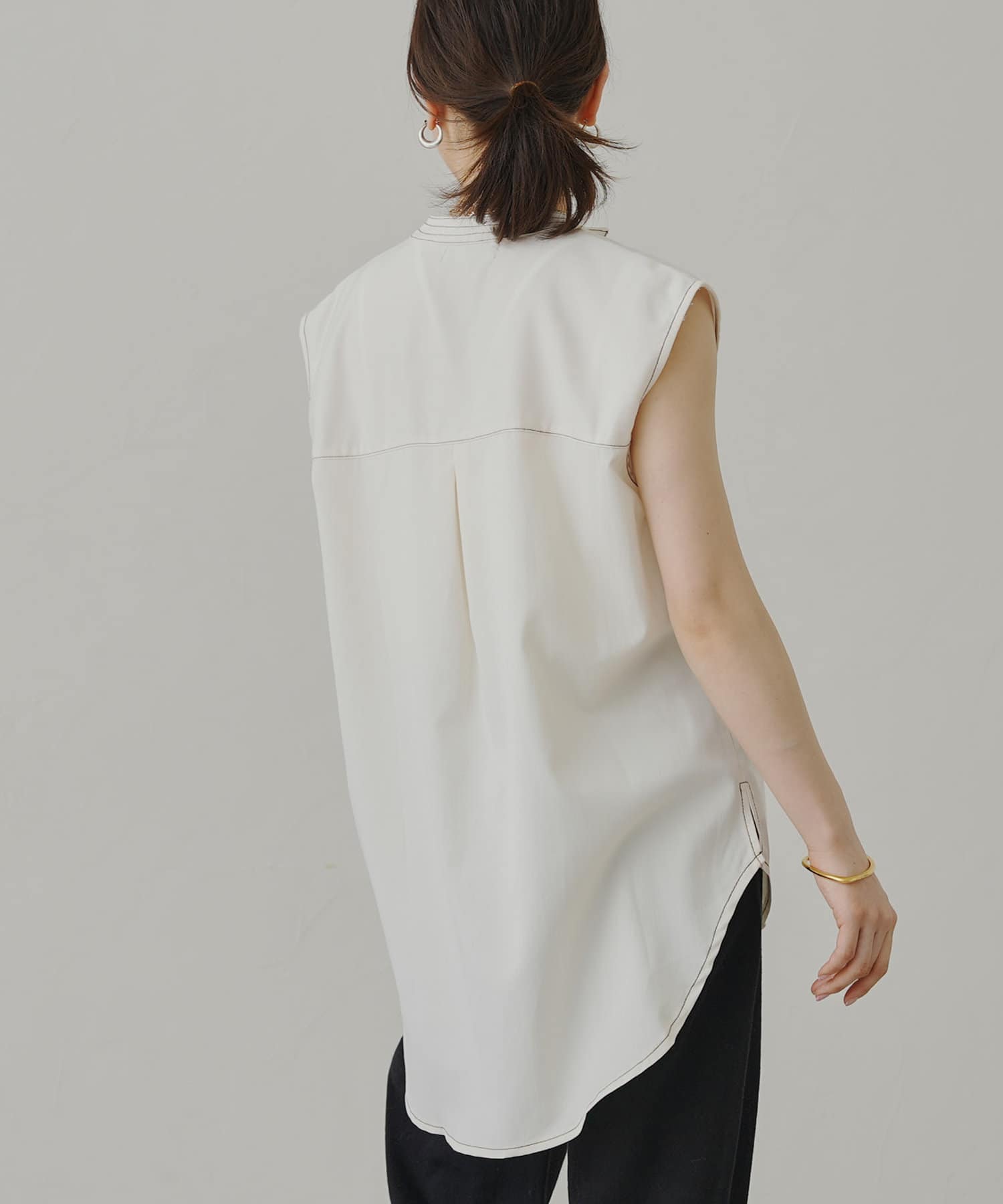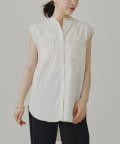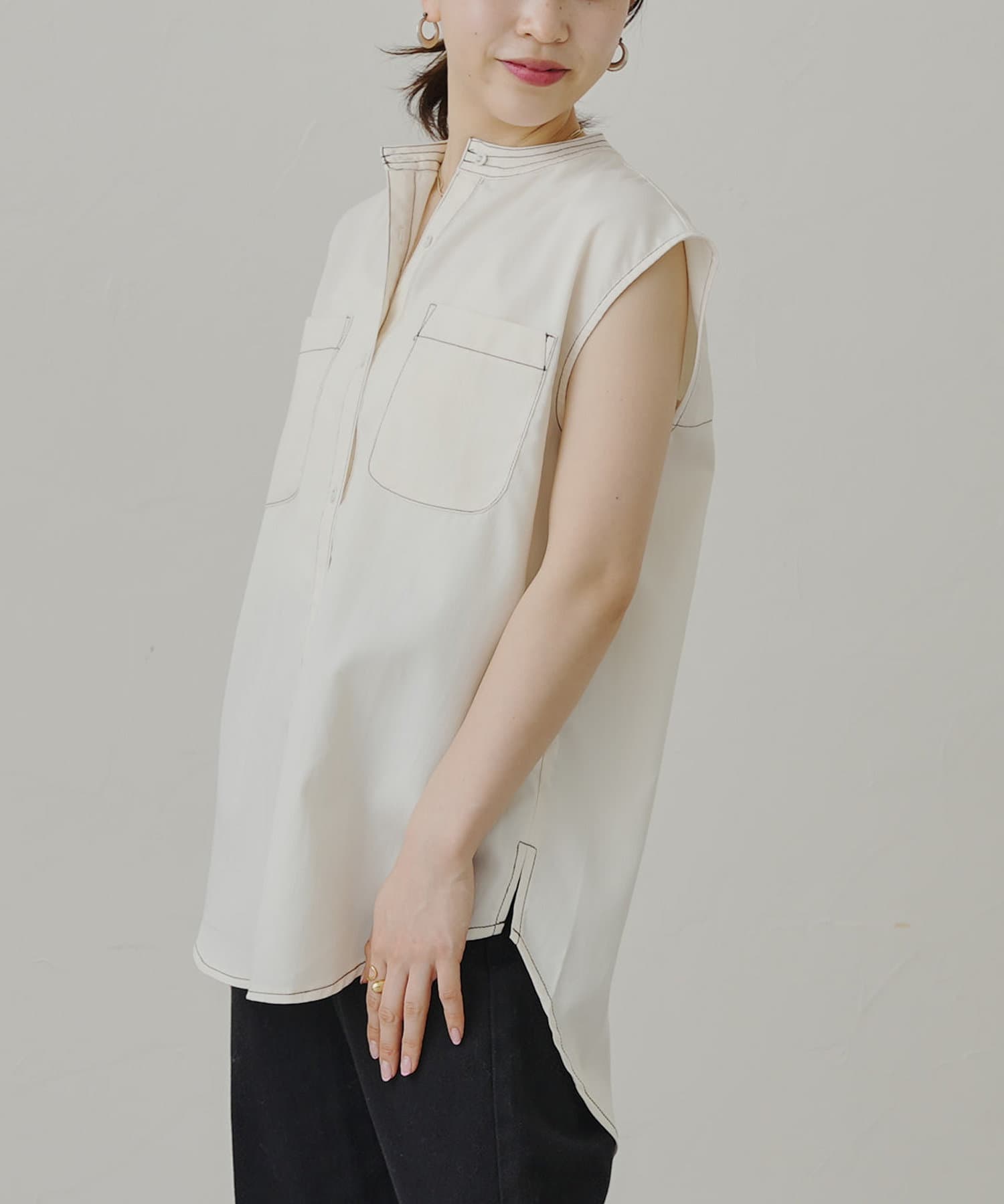 配色ステッチWポケットノースリーブシャツ