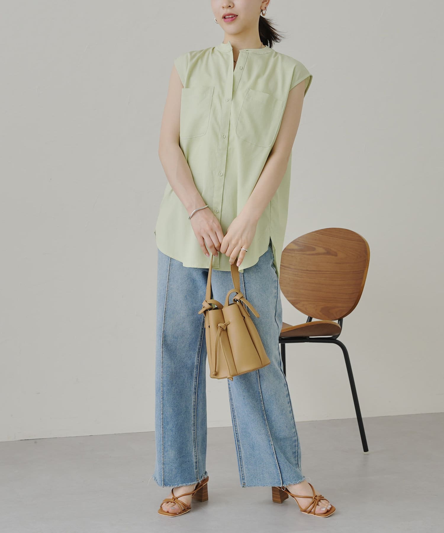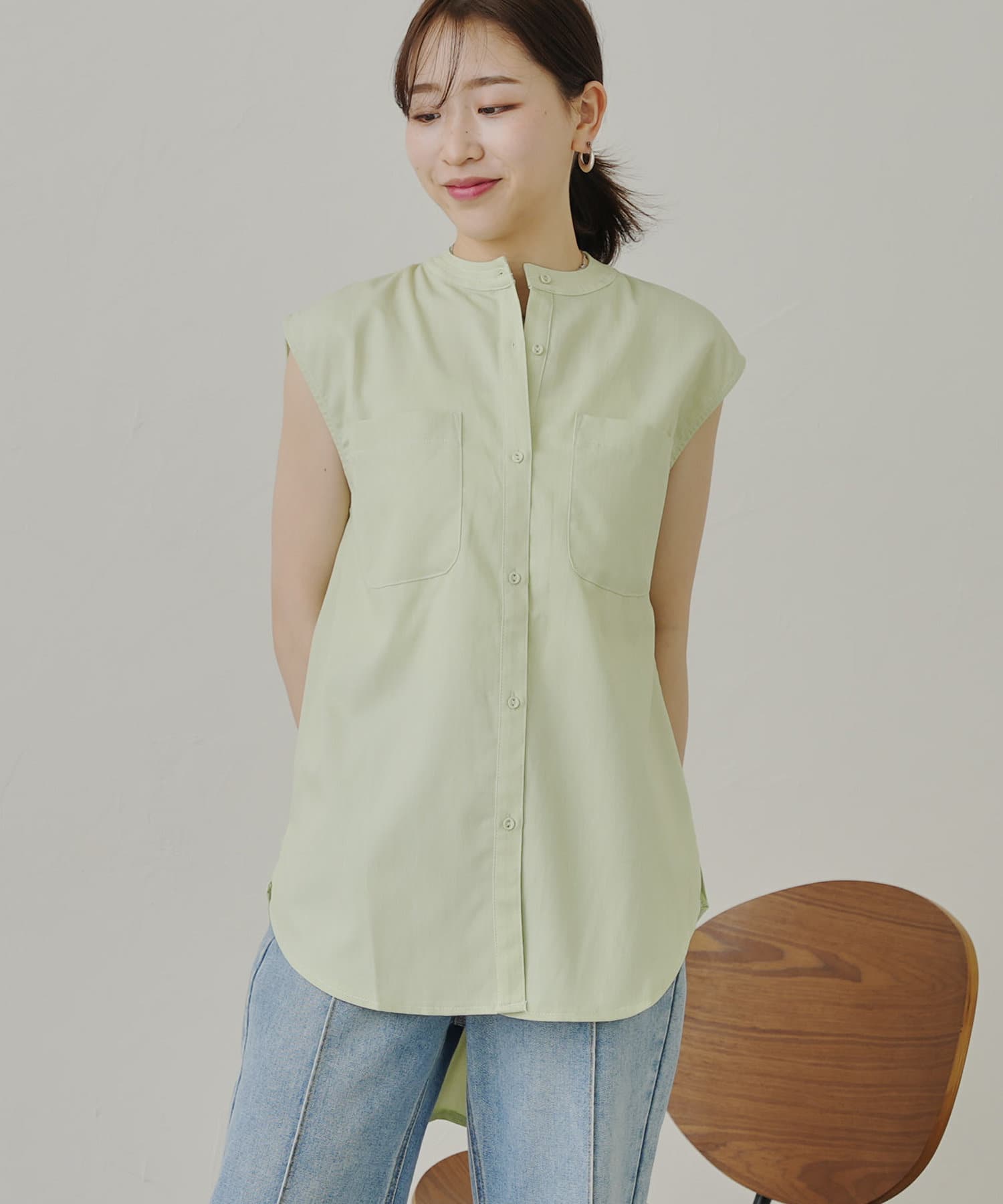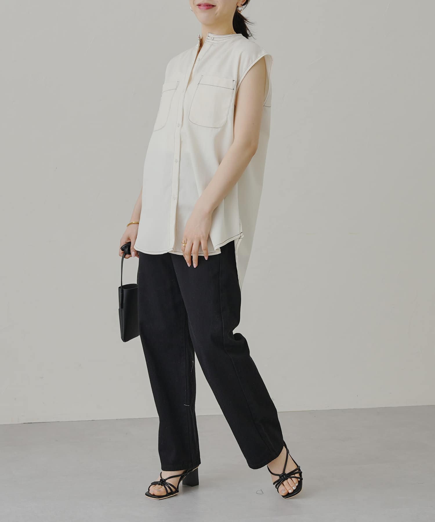 配色ステッチWポケットノースリーブシャツ
