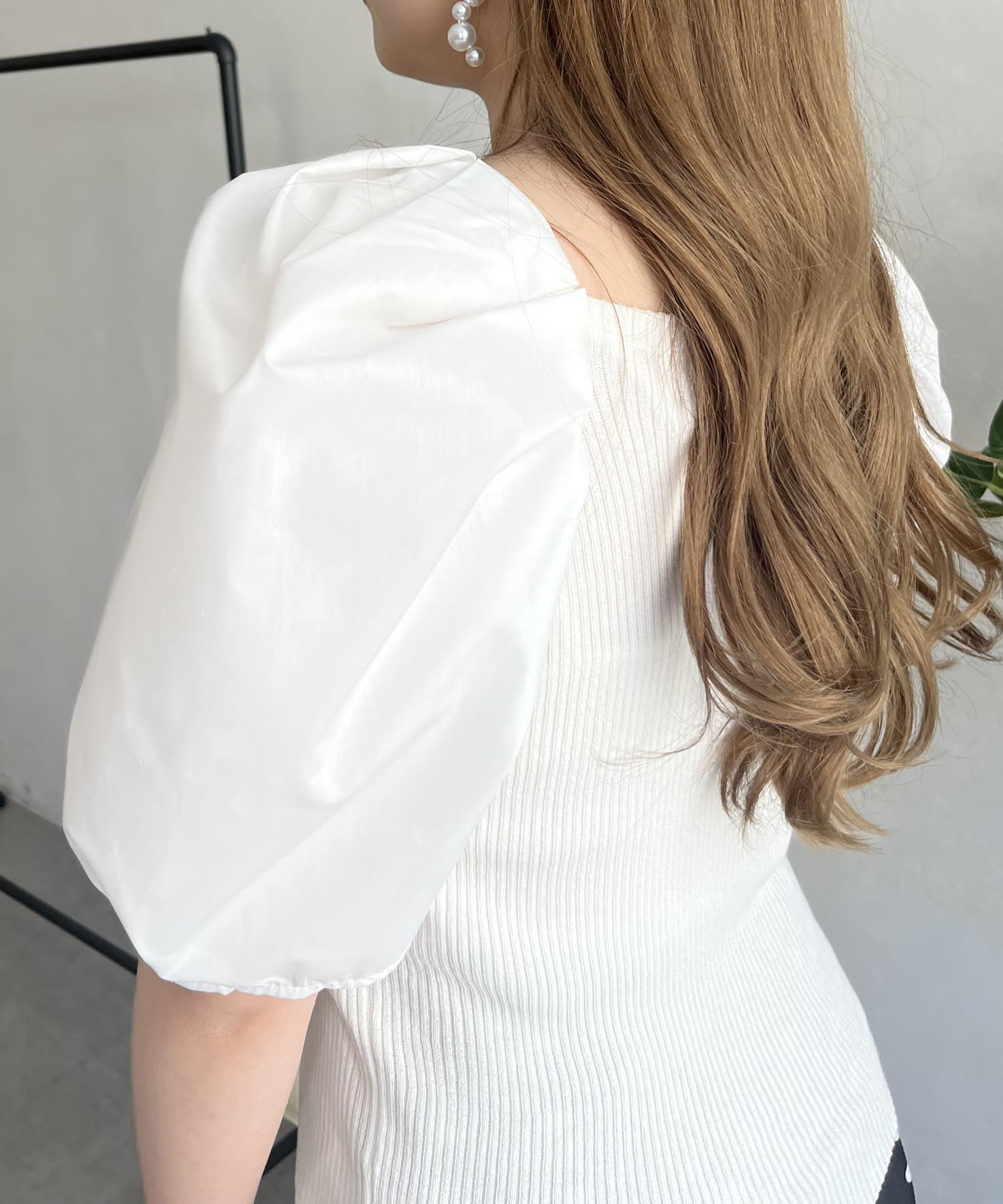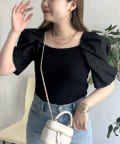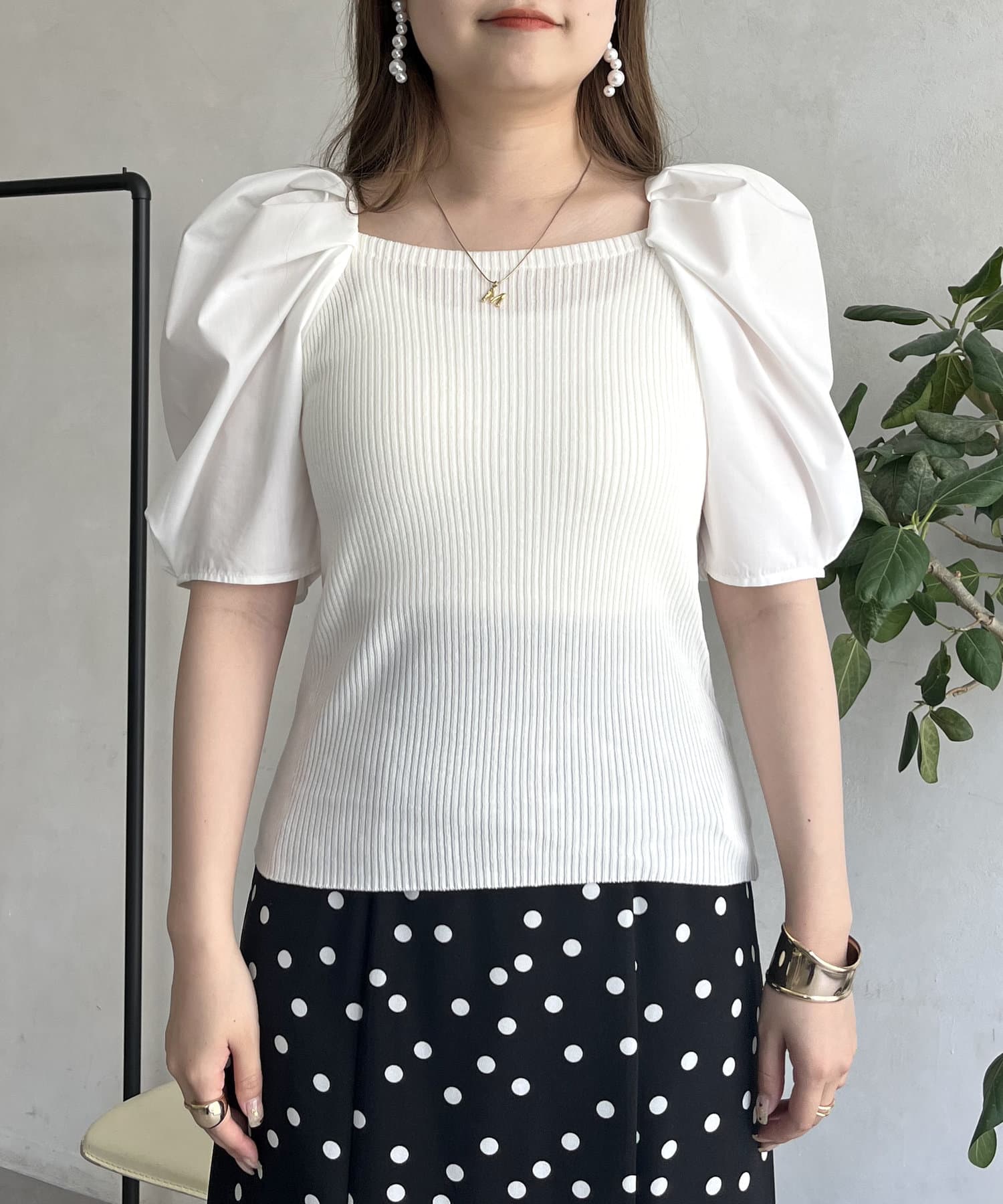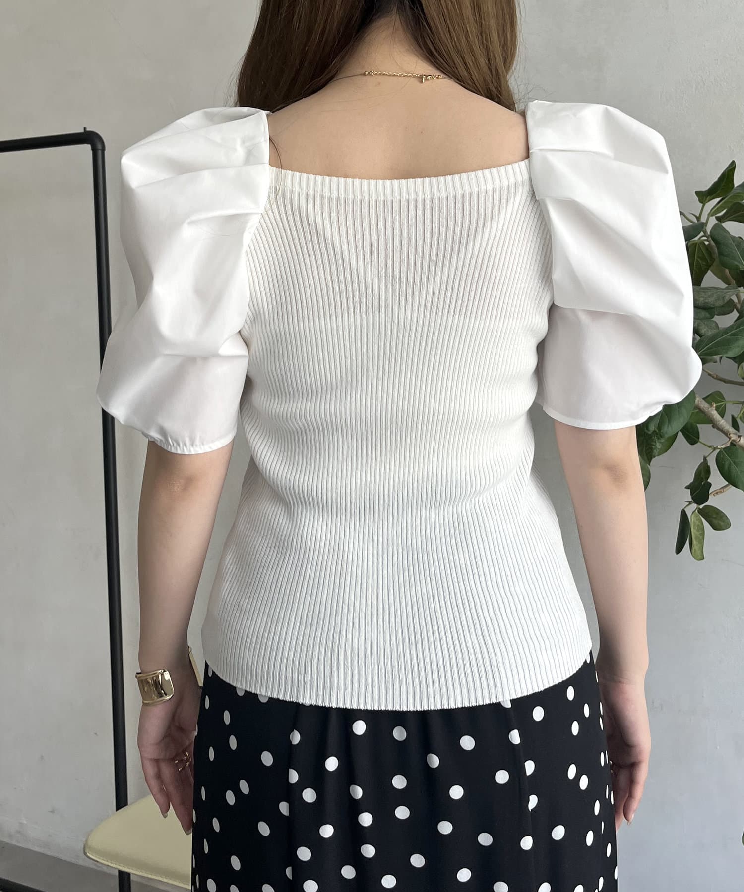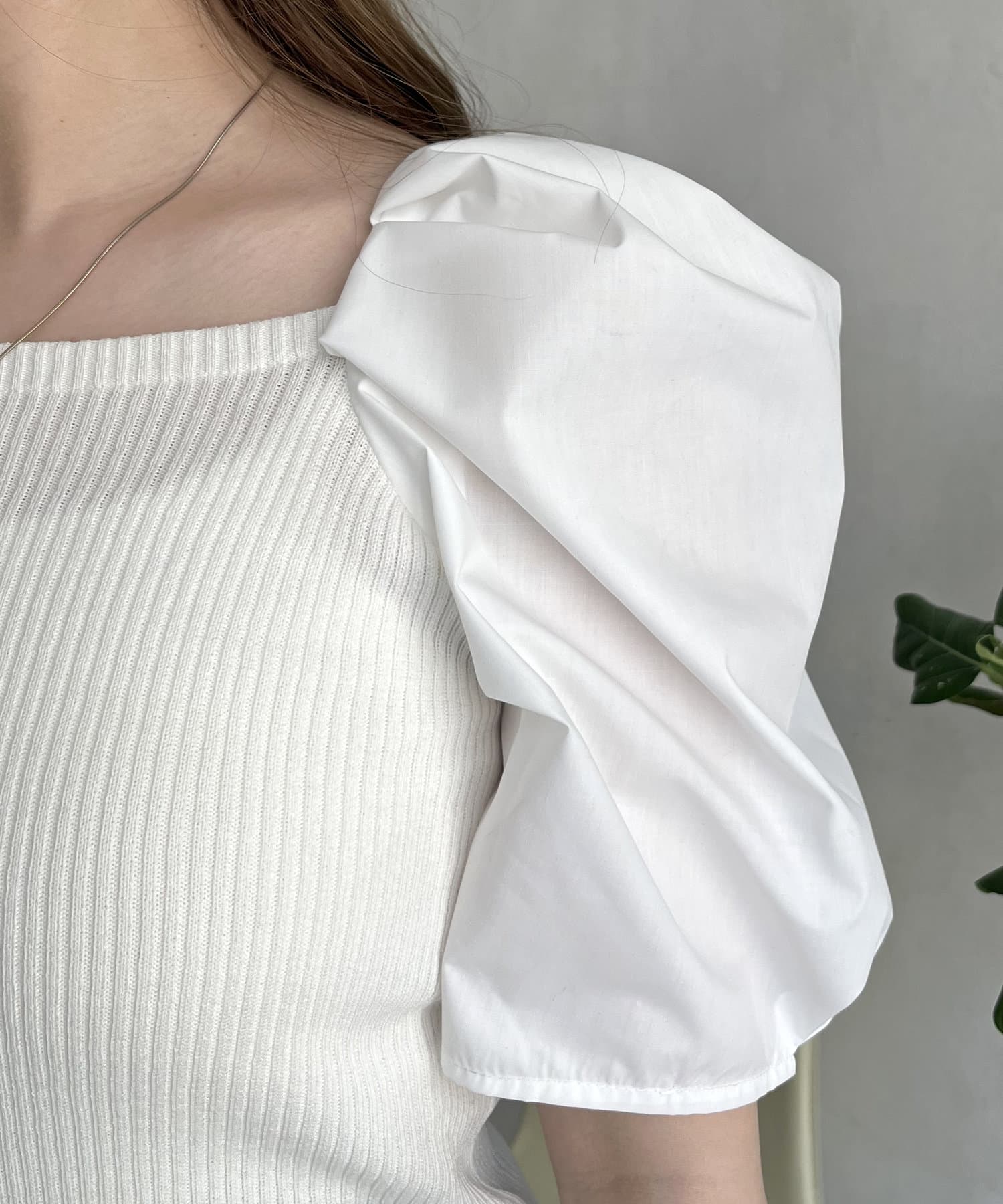 ボリューム袖ニット切替トップス