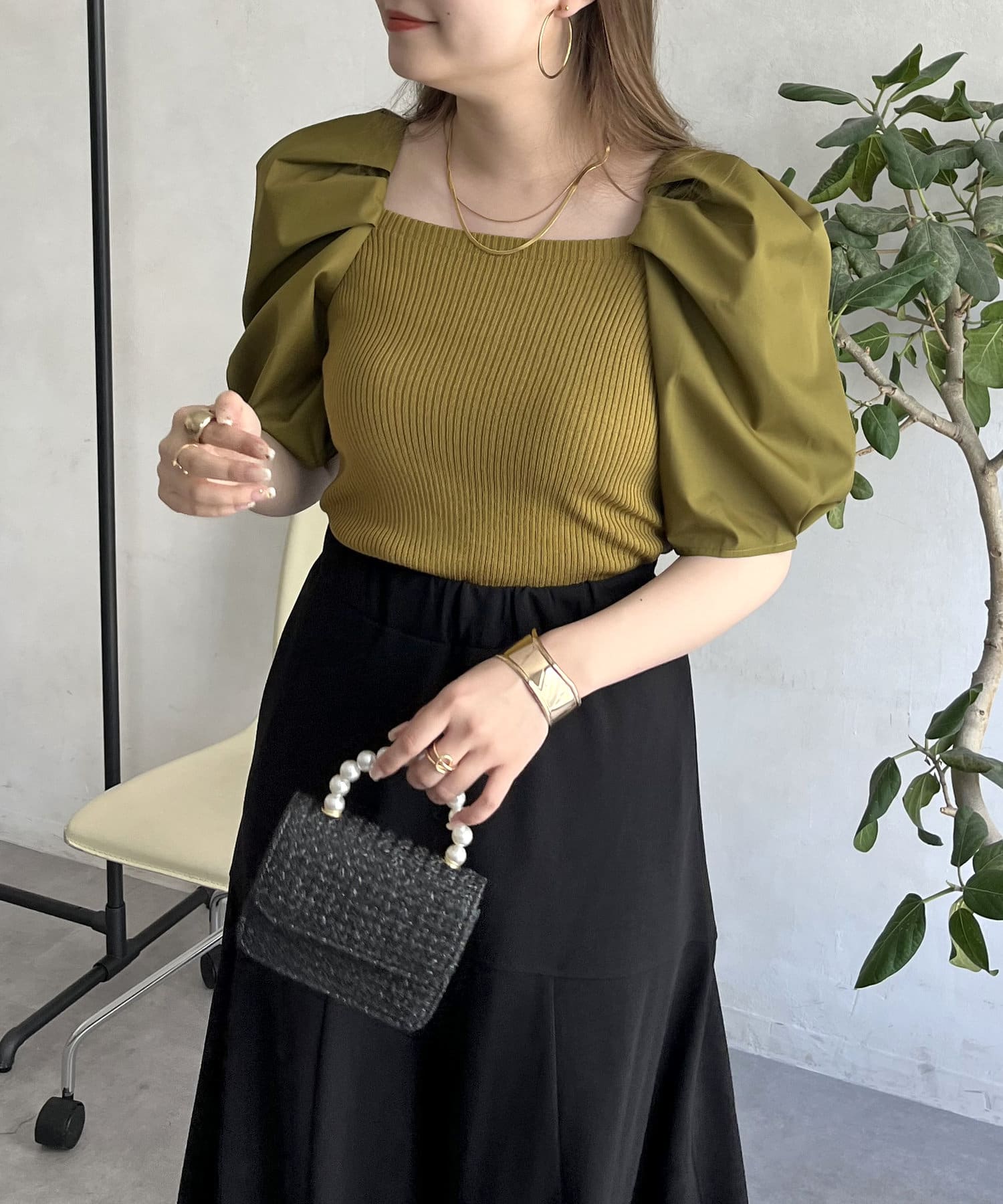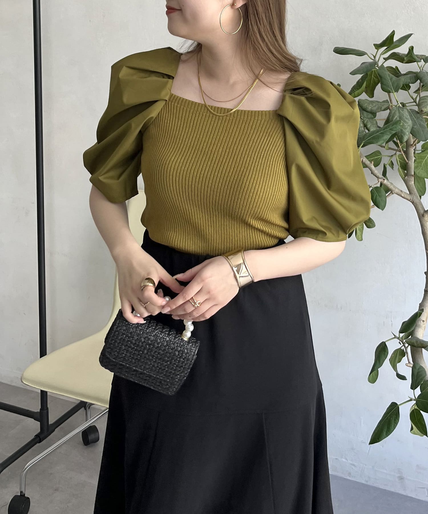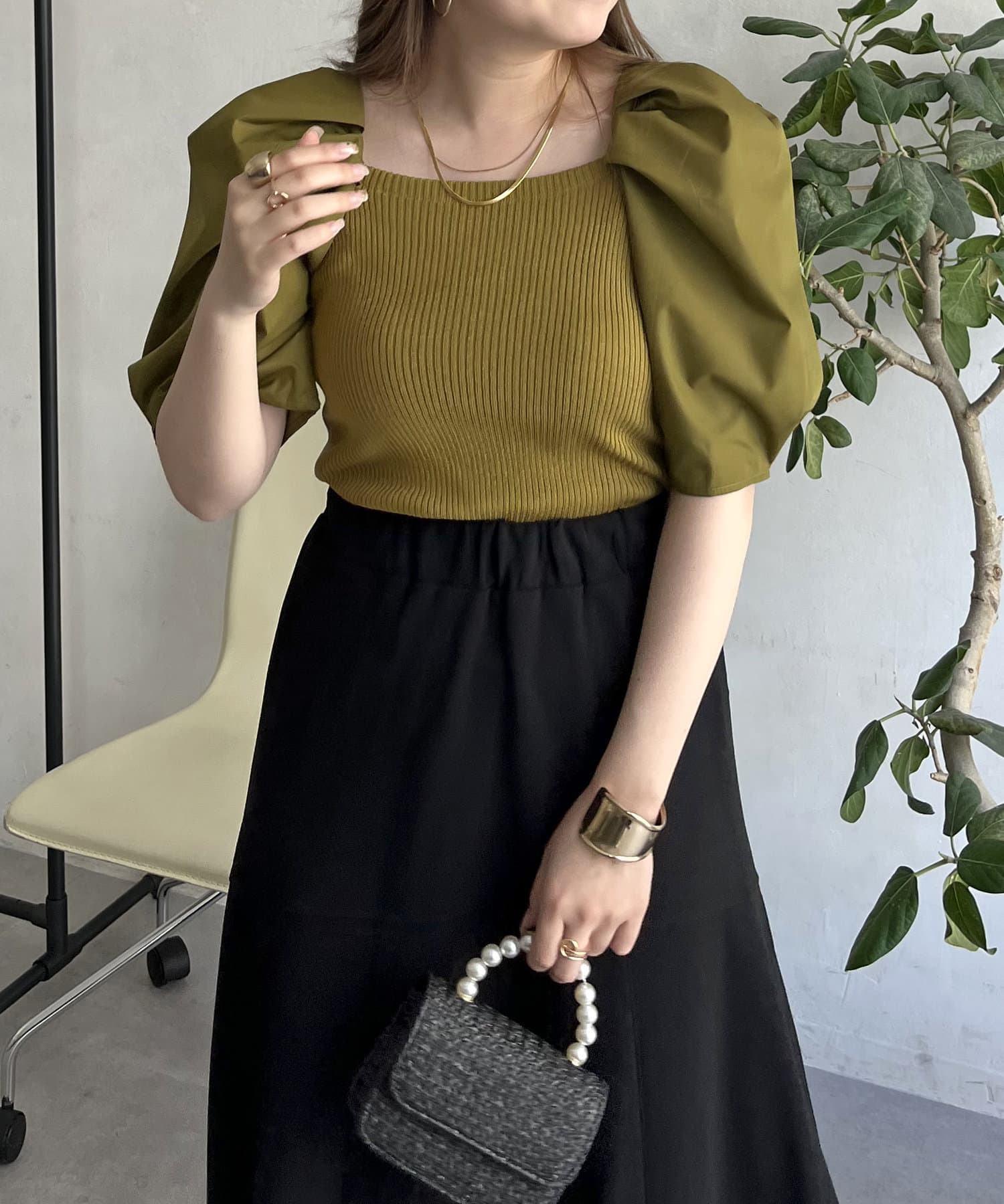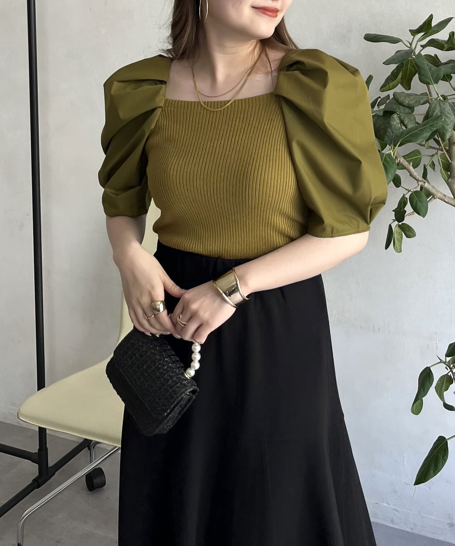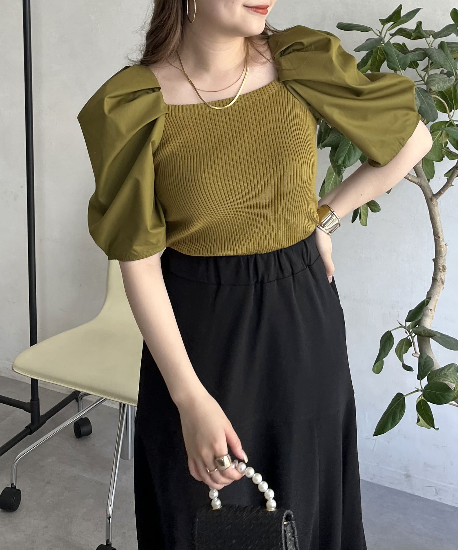 ボリューム袖ニット切替トップス