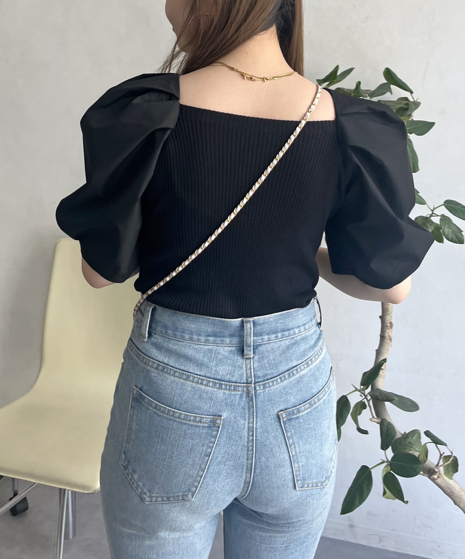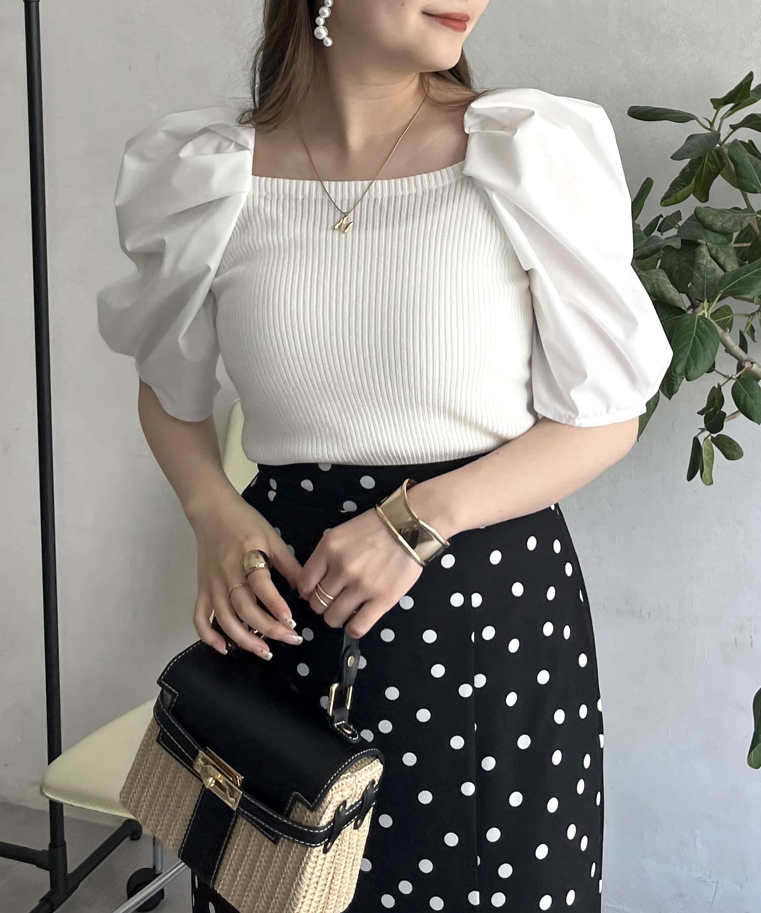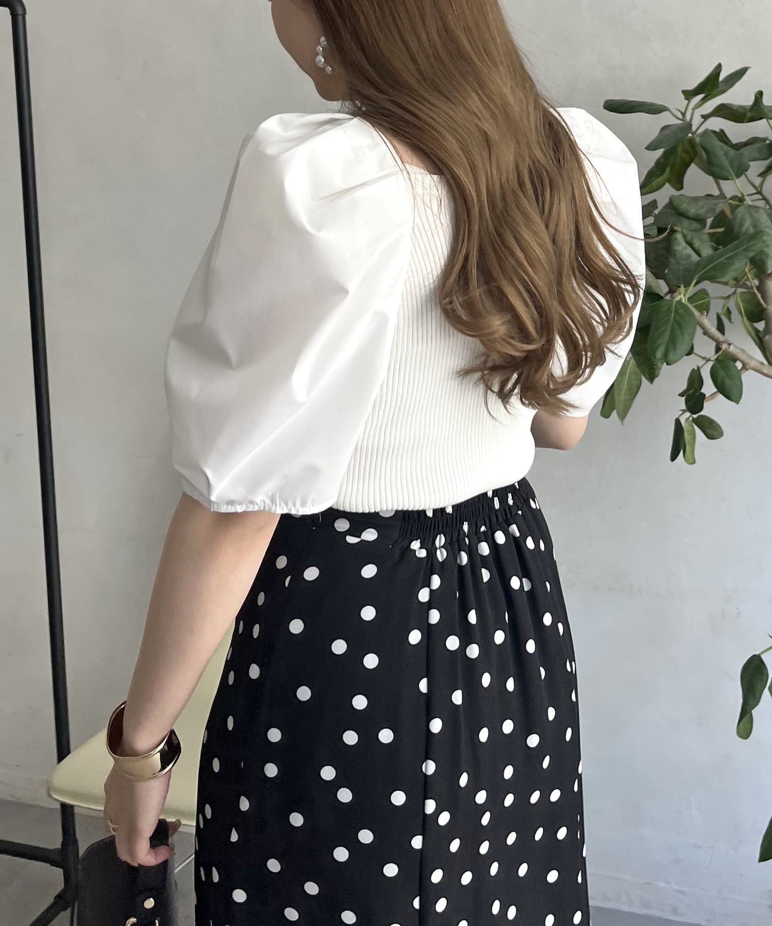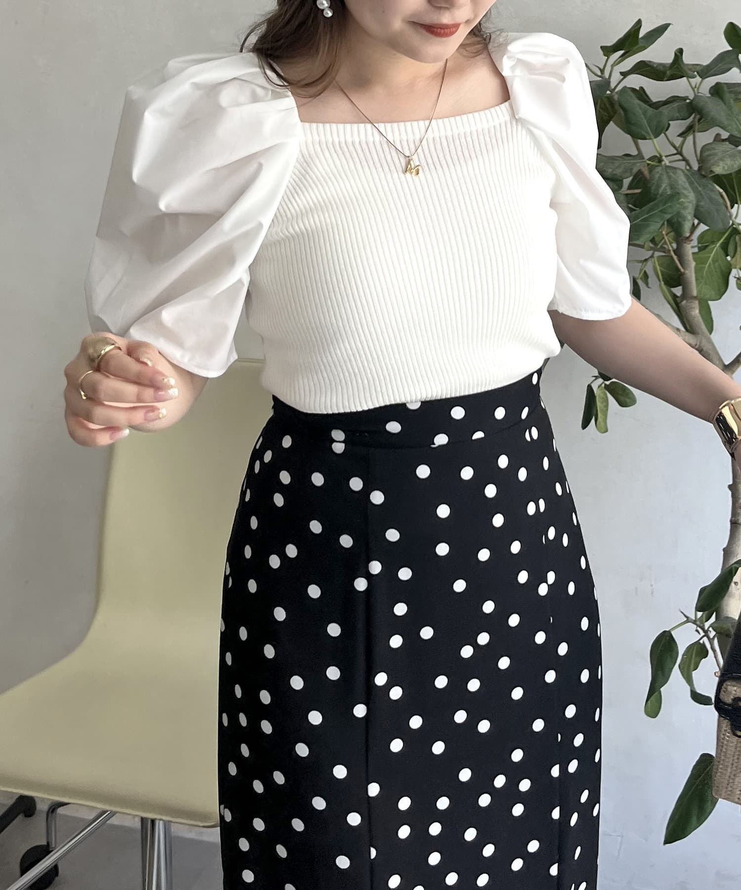 ボリューム袖ニット切替トップス