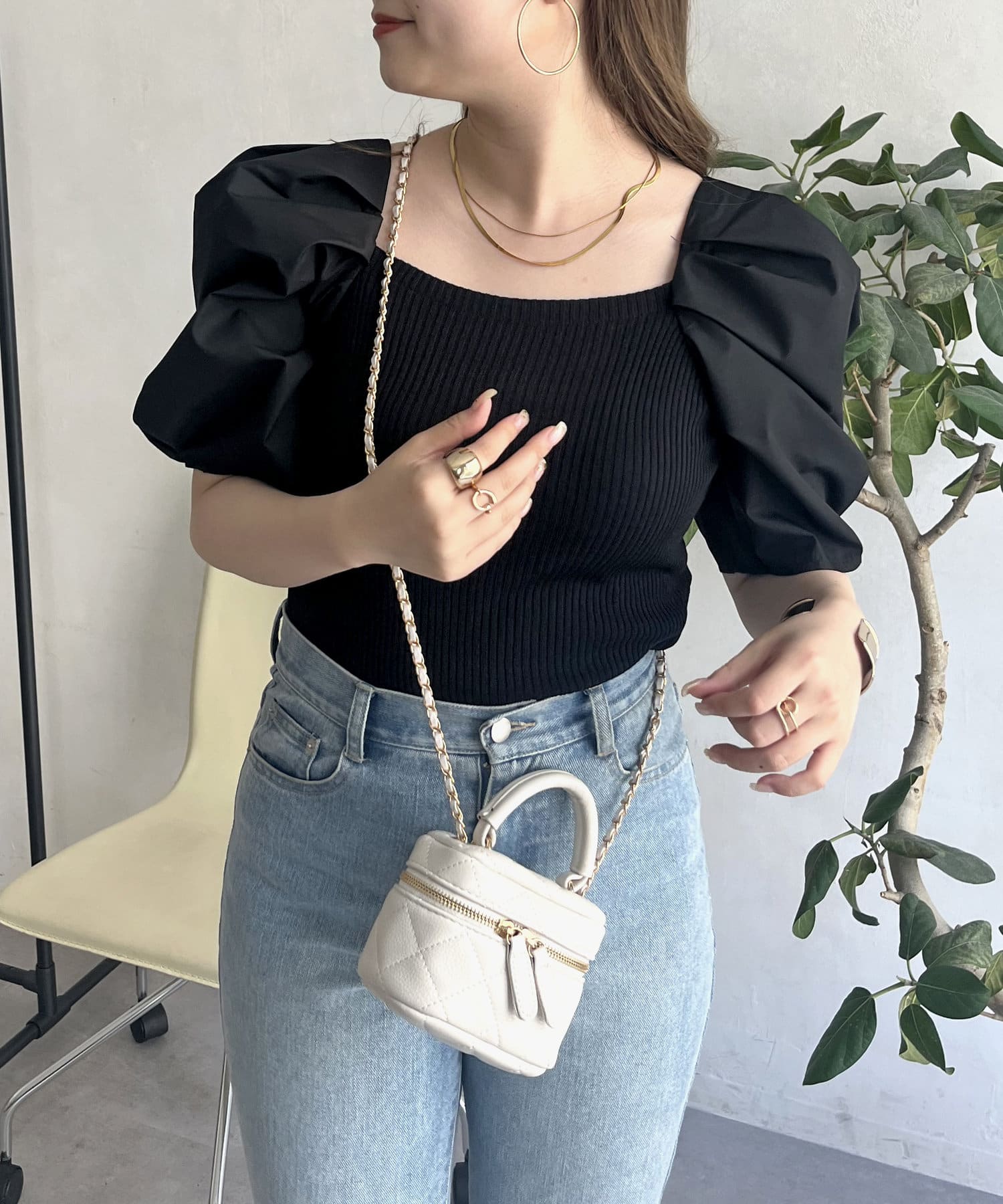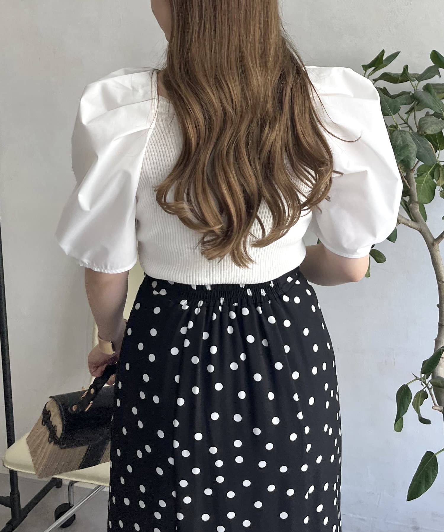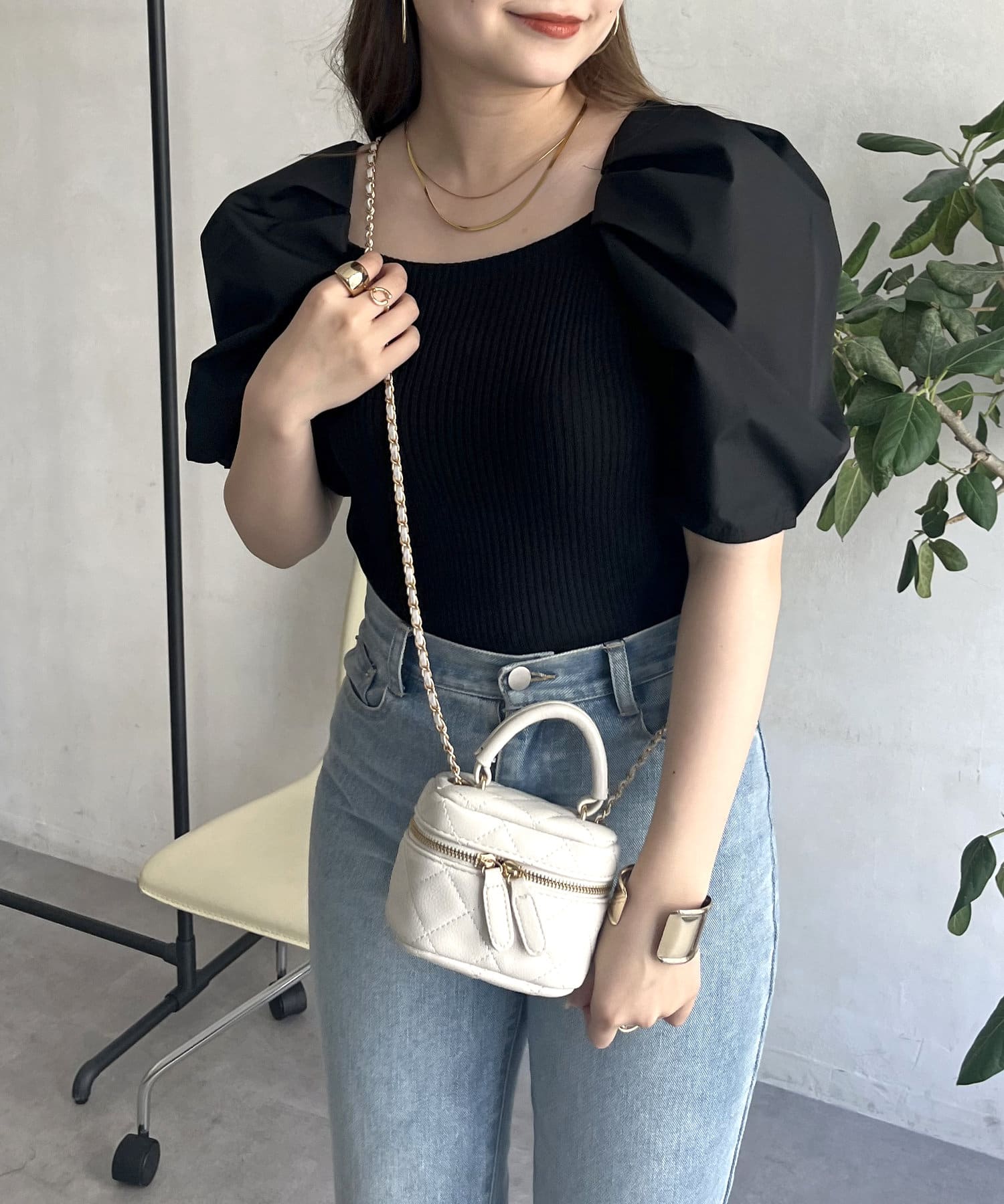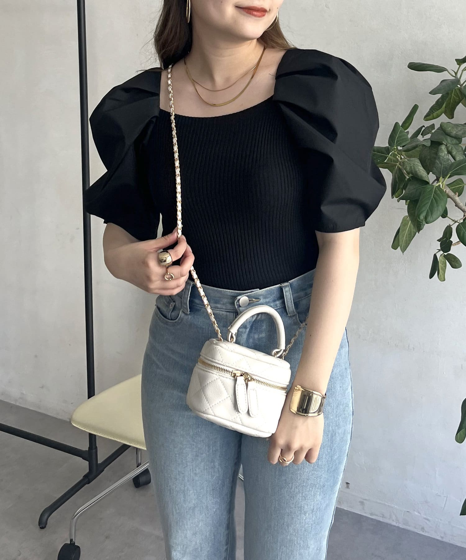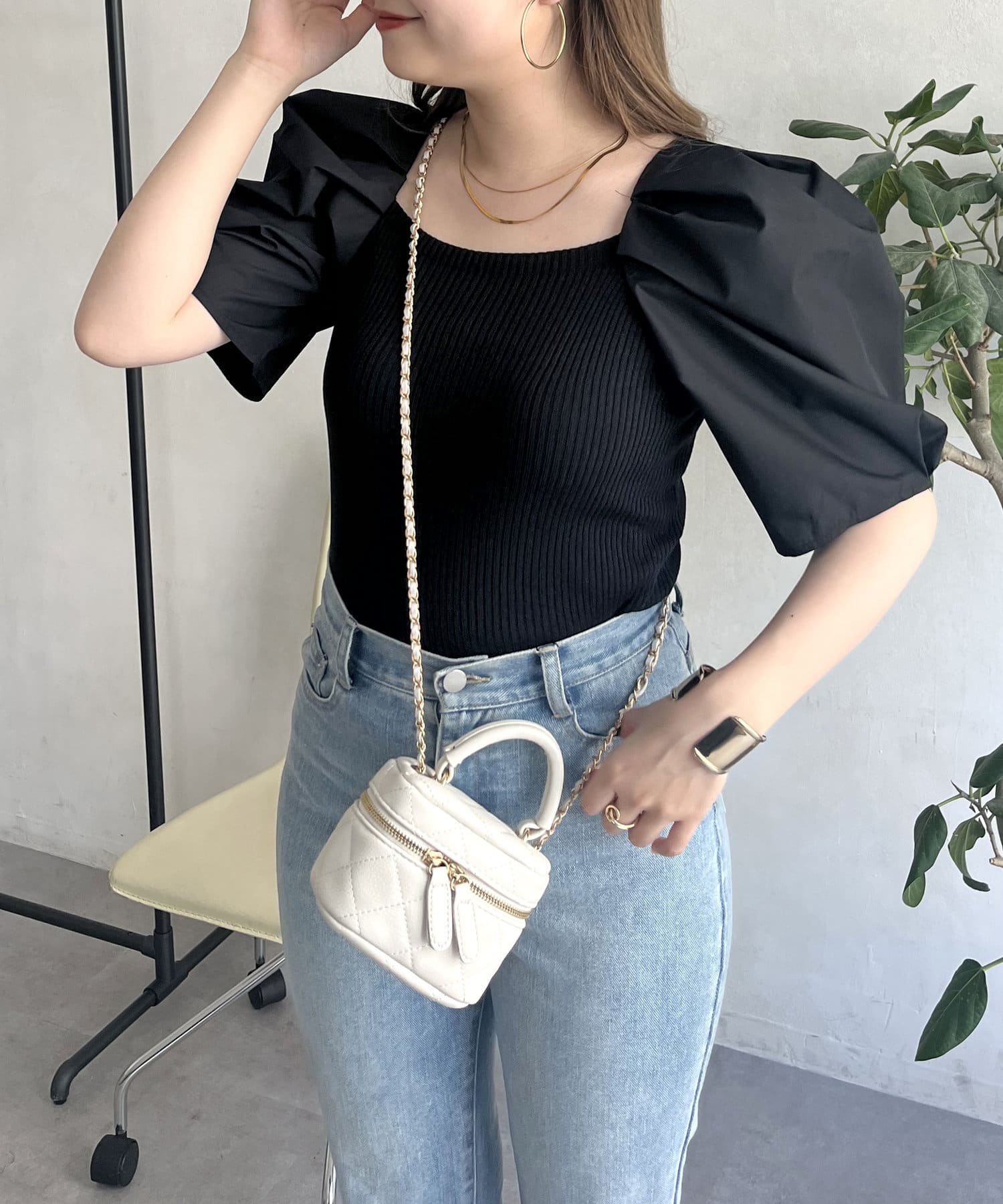 ボリューム袖ニット切替トップス