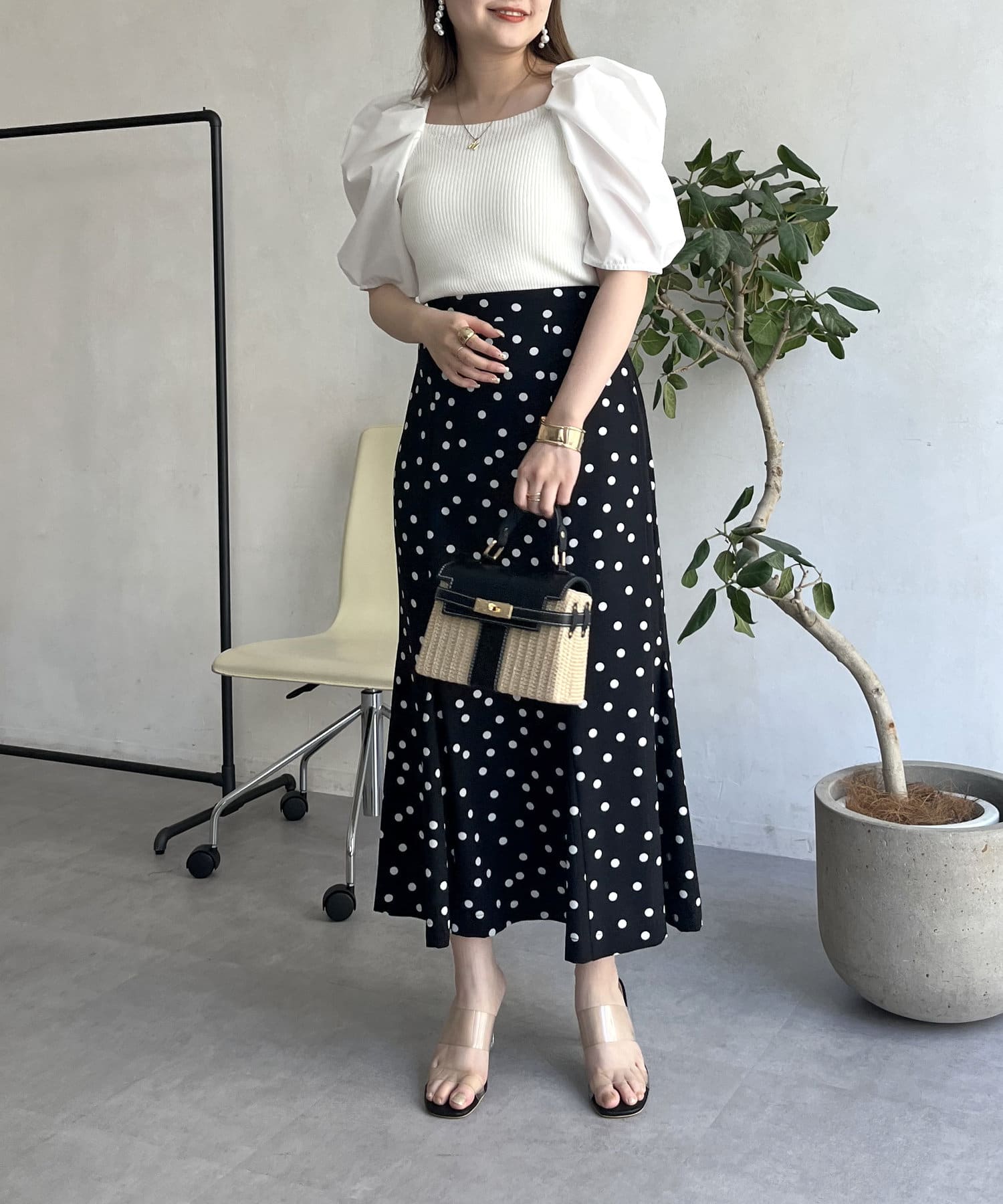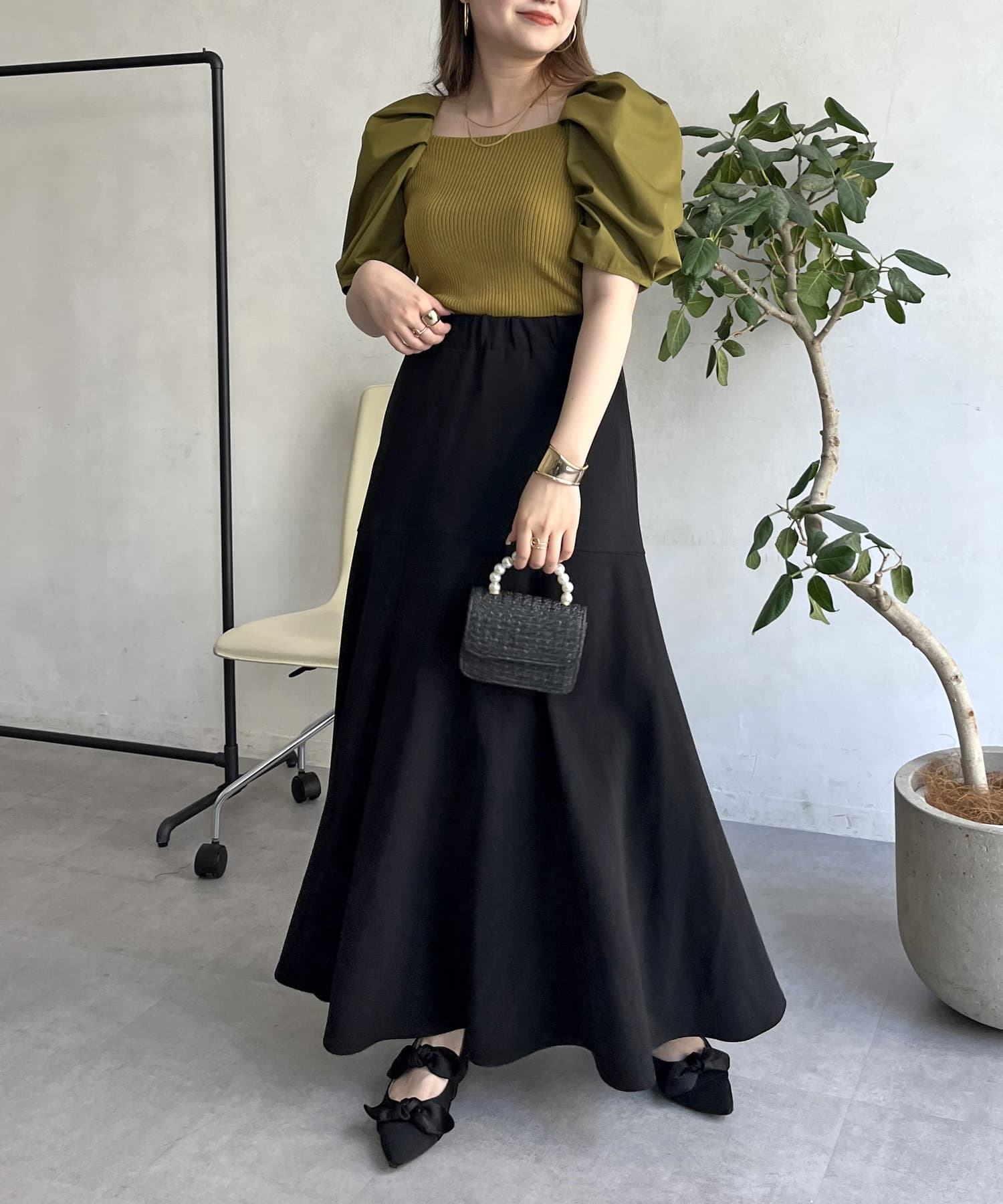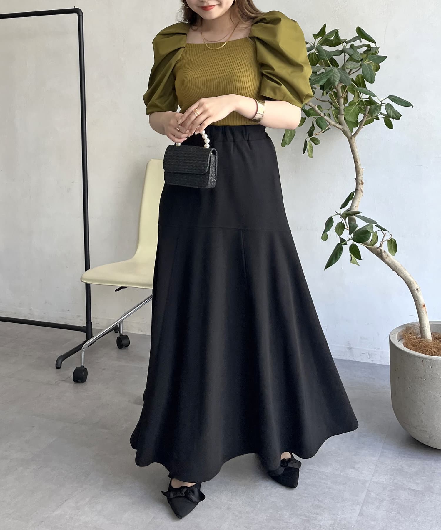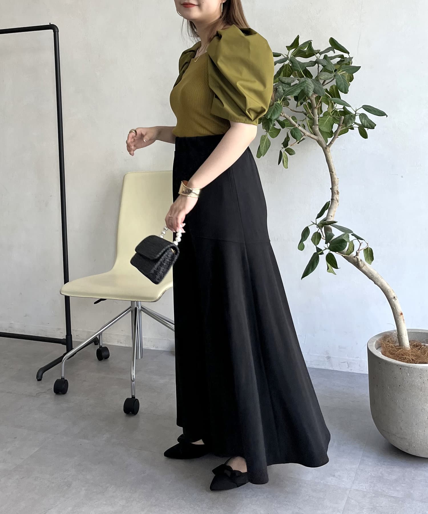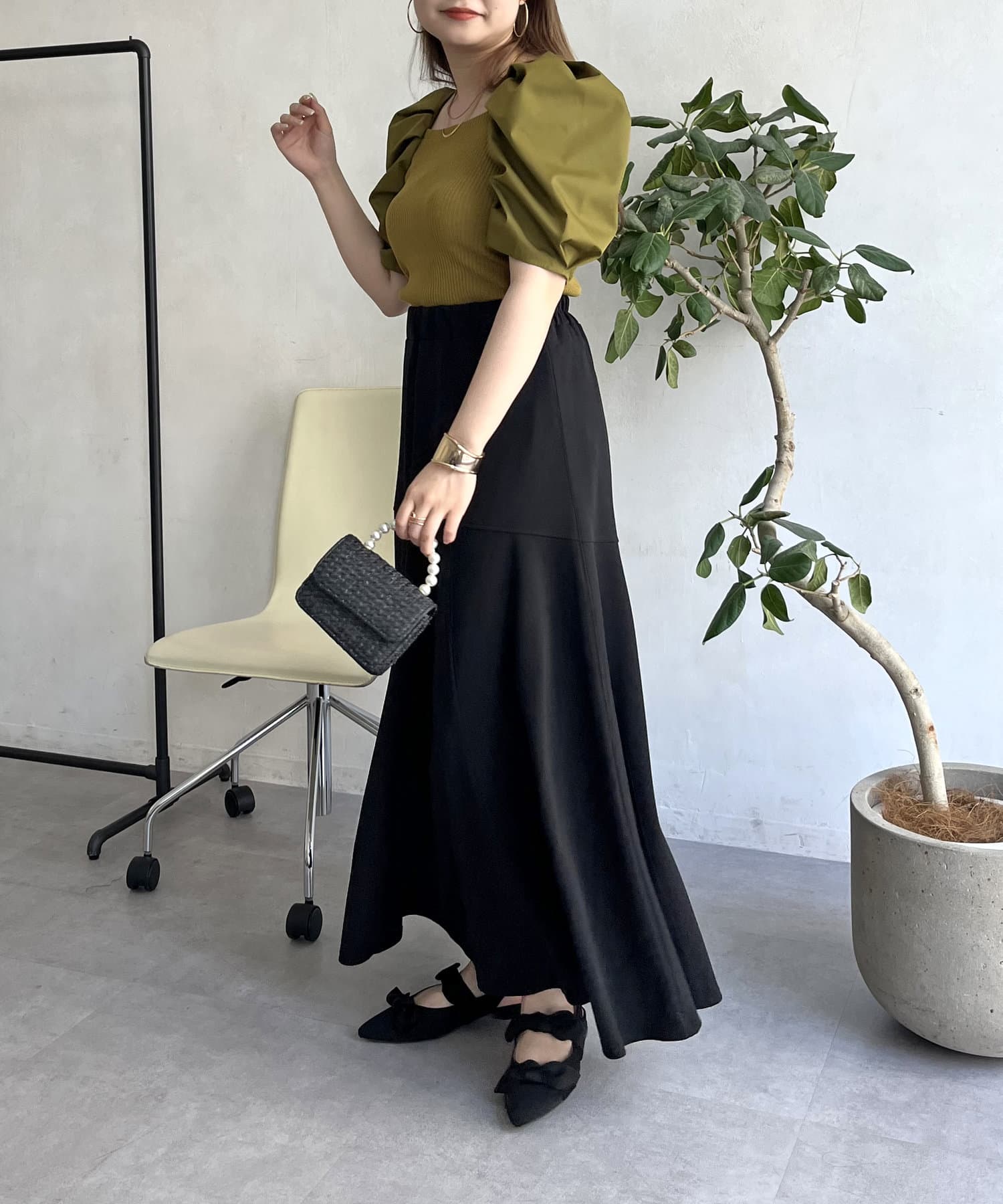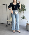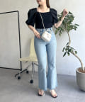 ●トップスにボリュームがあるのでボトムスは細みがバランスよく着こなせれます