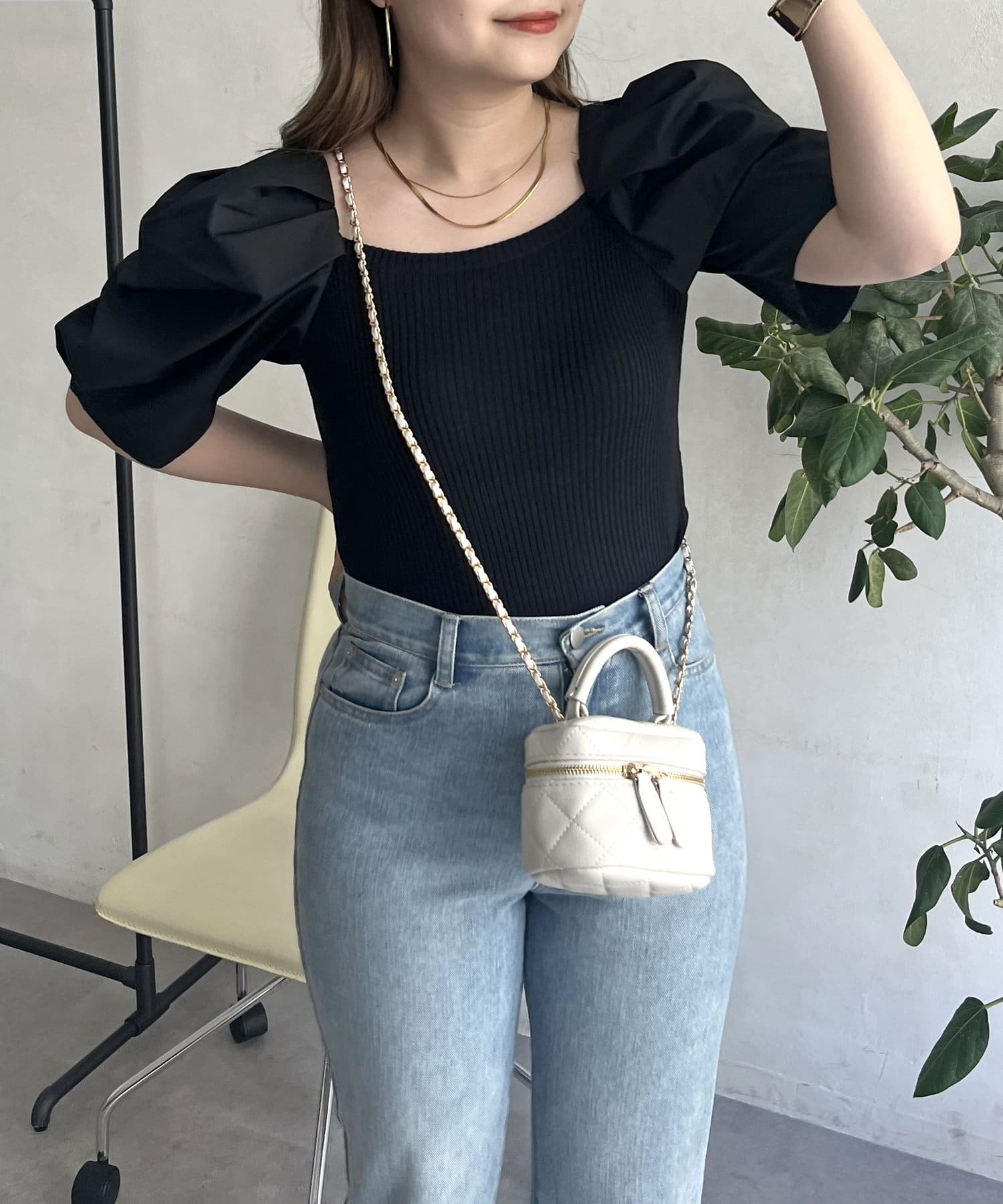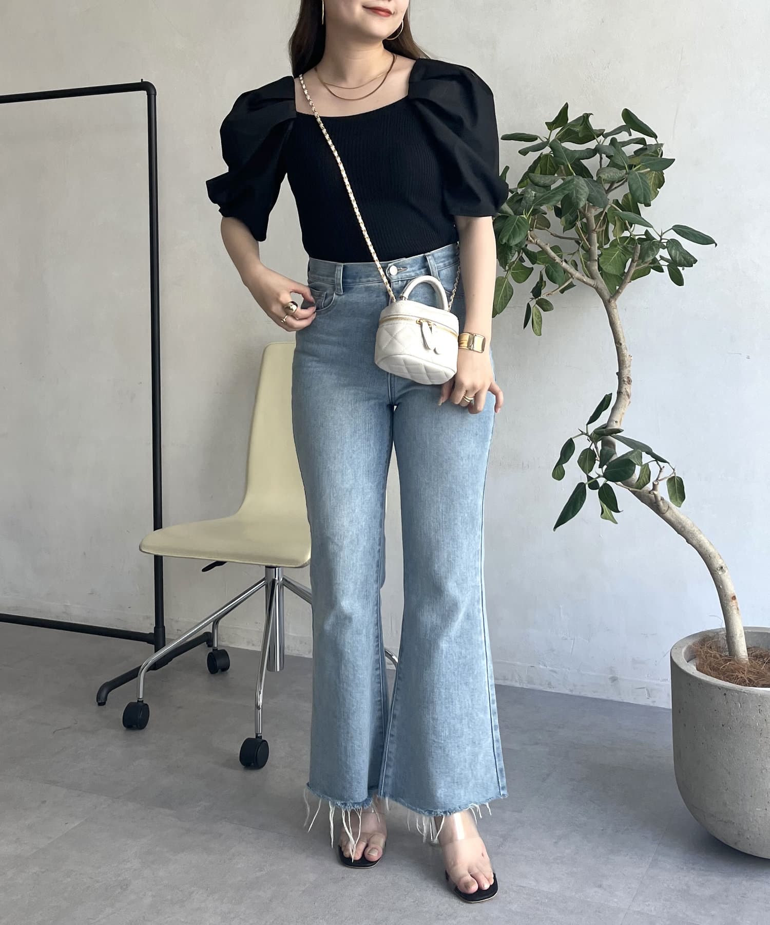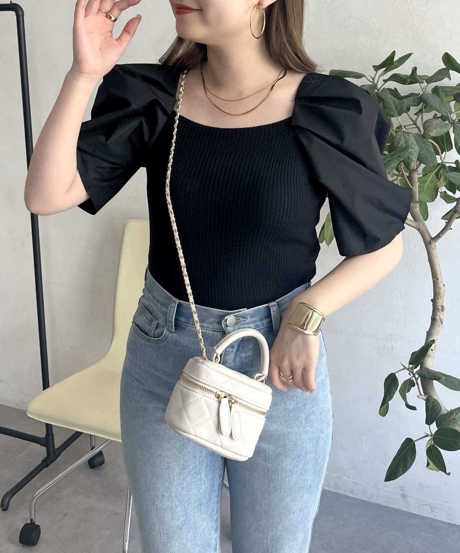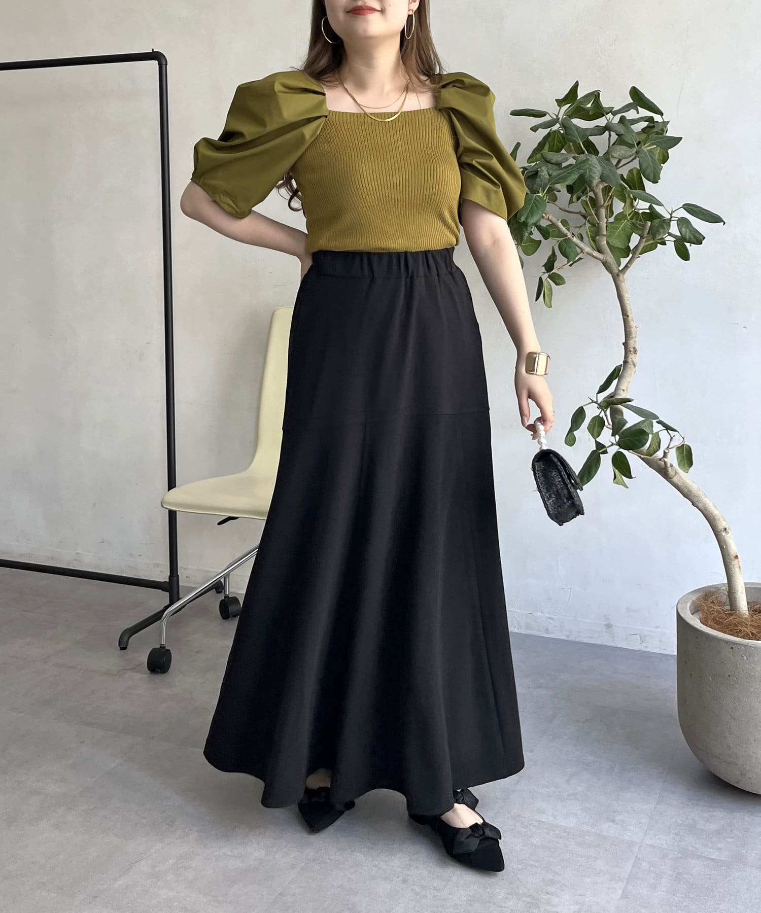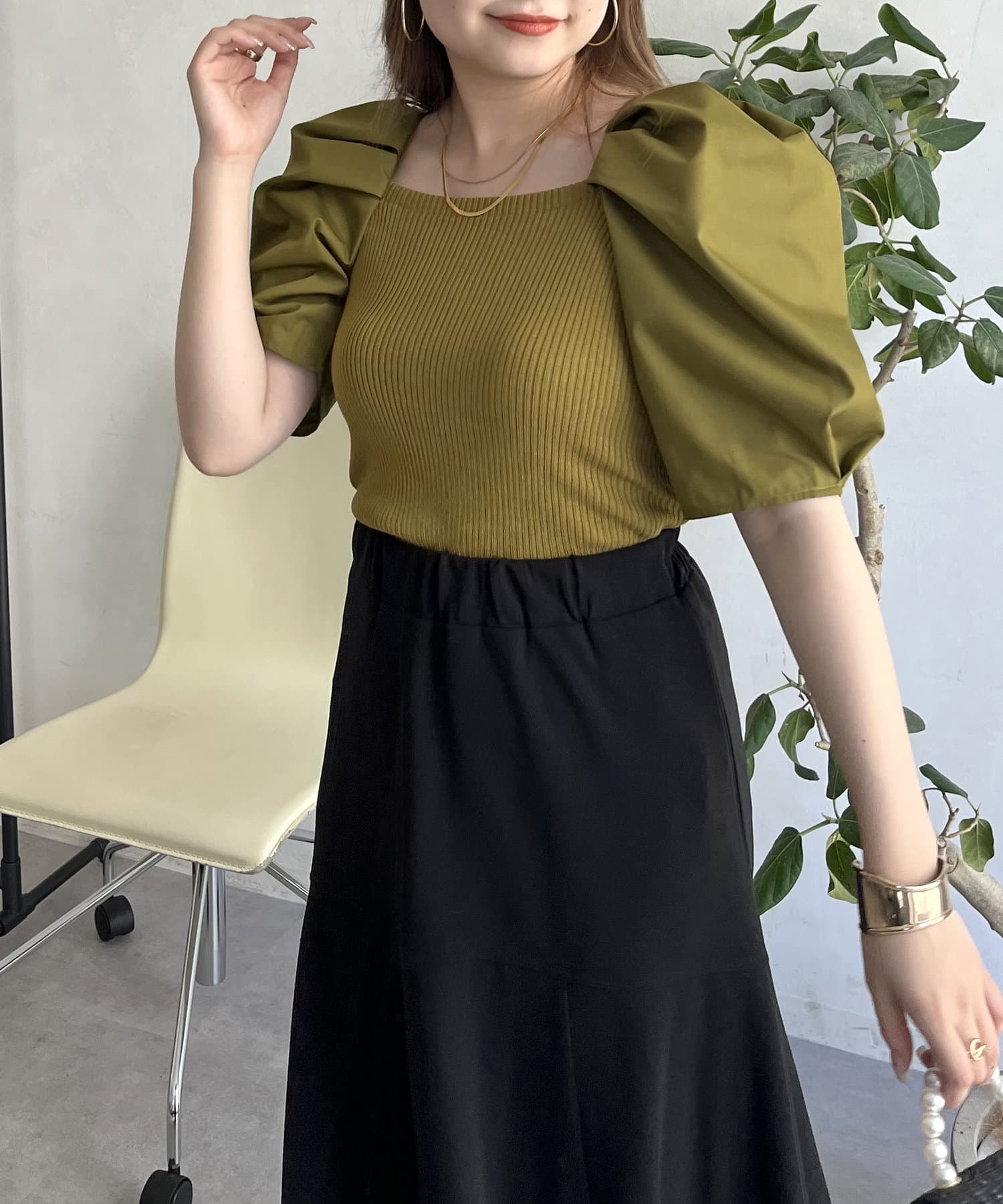 ●スクエアネックが鎖骨を見せてくれて顔周りをスッキリと魅せてくれます