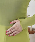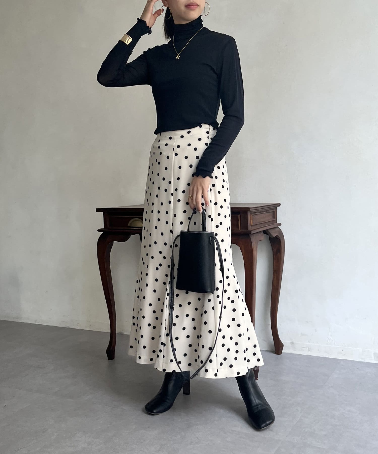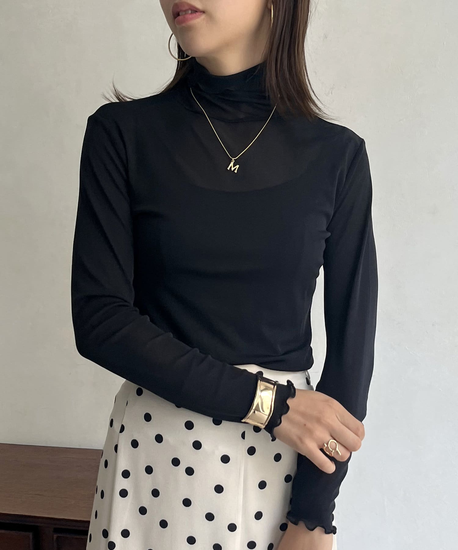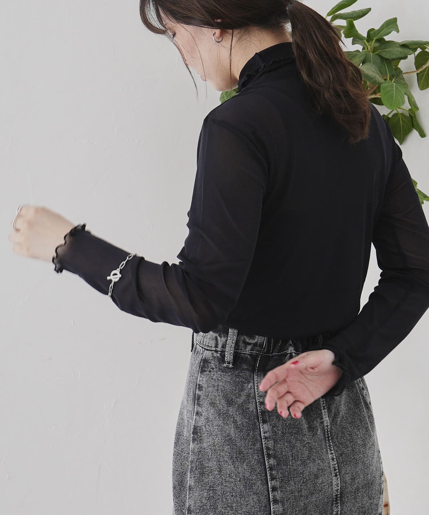 ●首元、袖口のメロウフリルが女性らしい柔らかな印象に