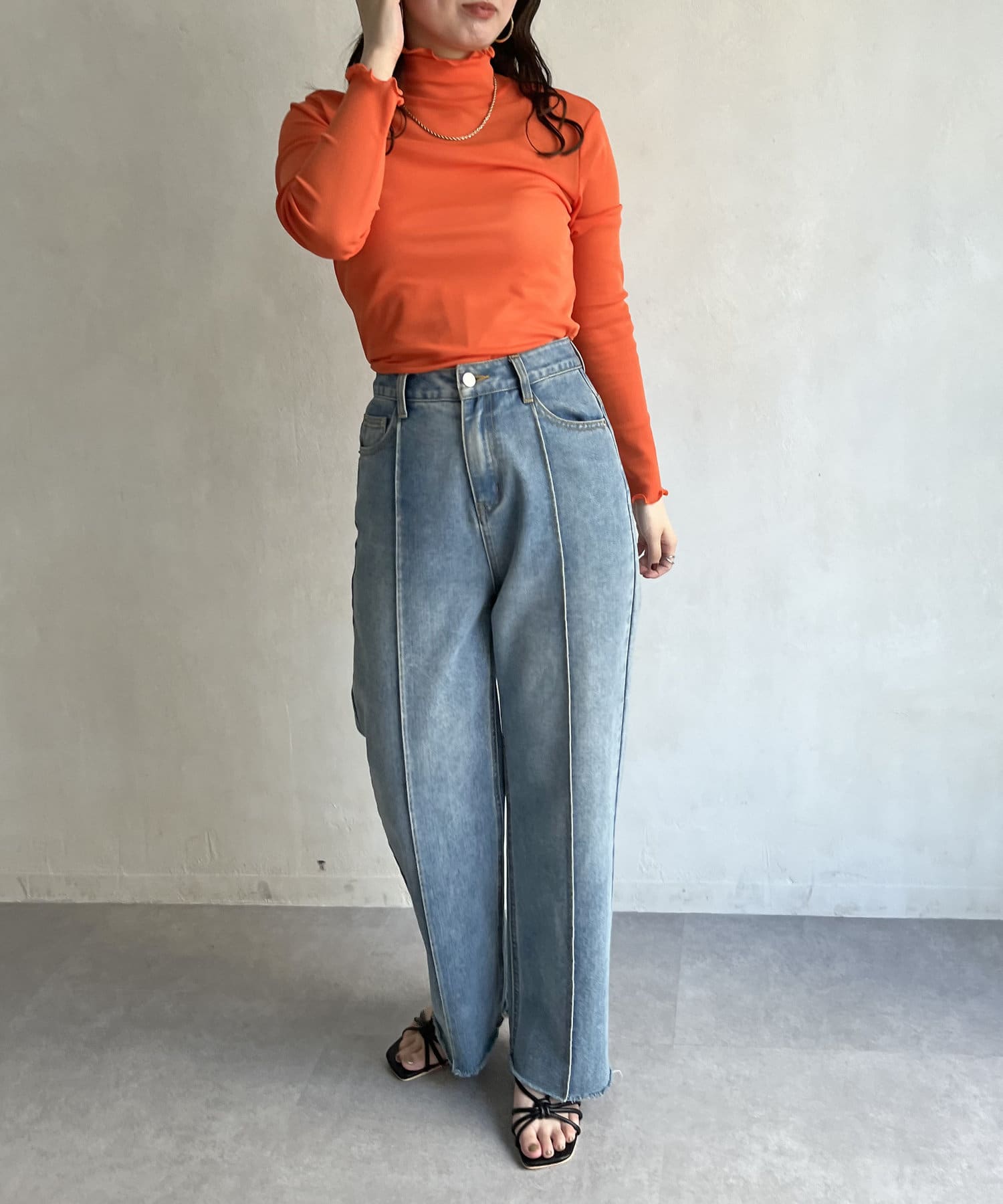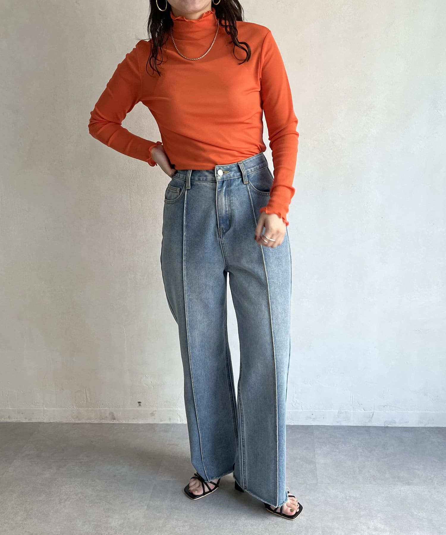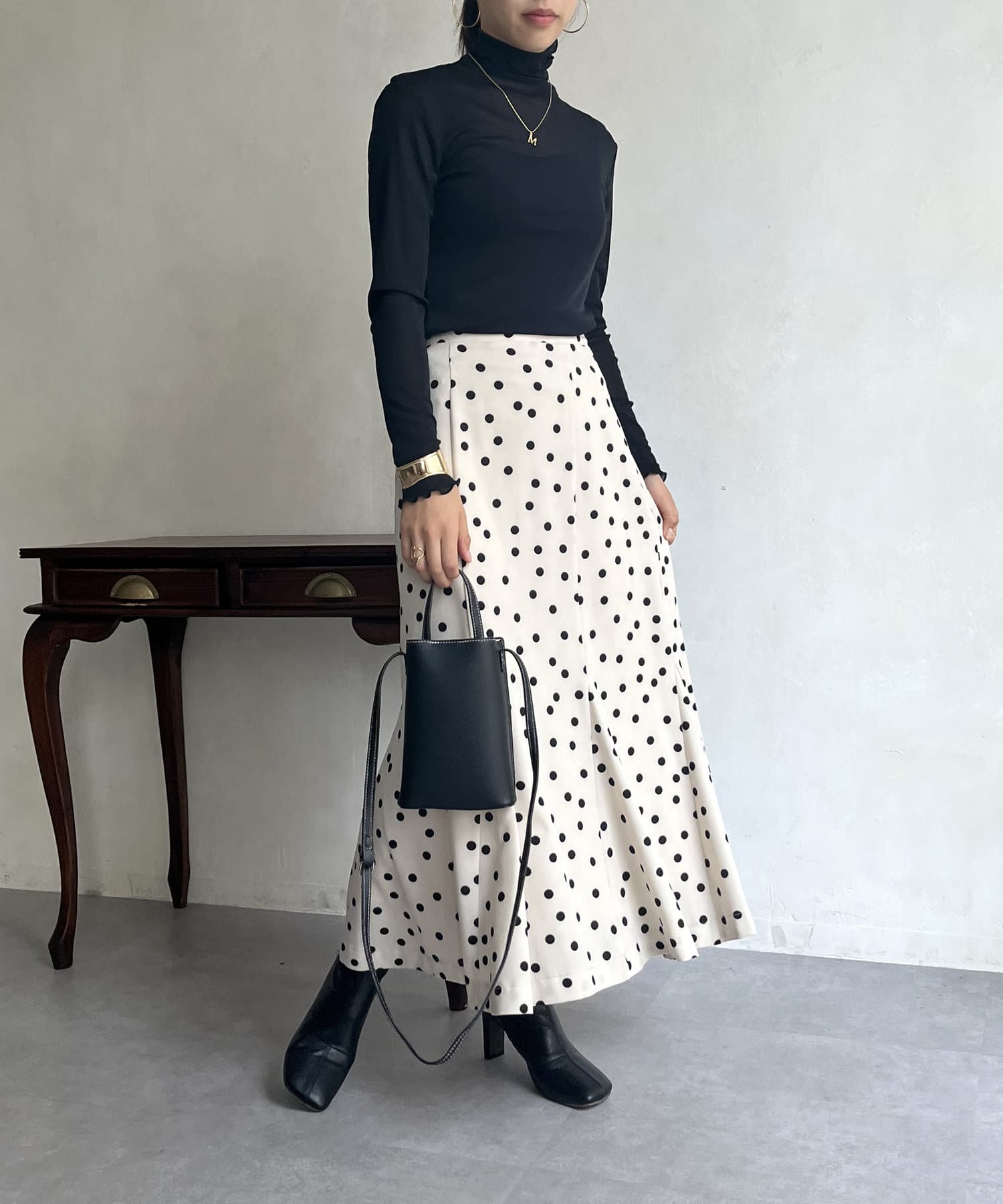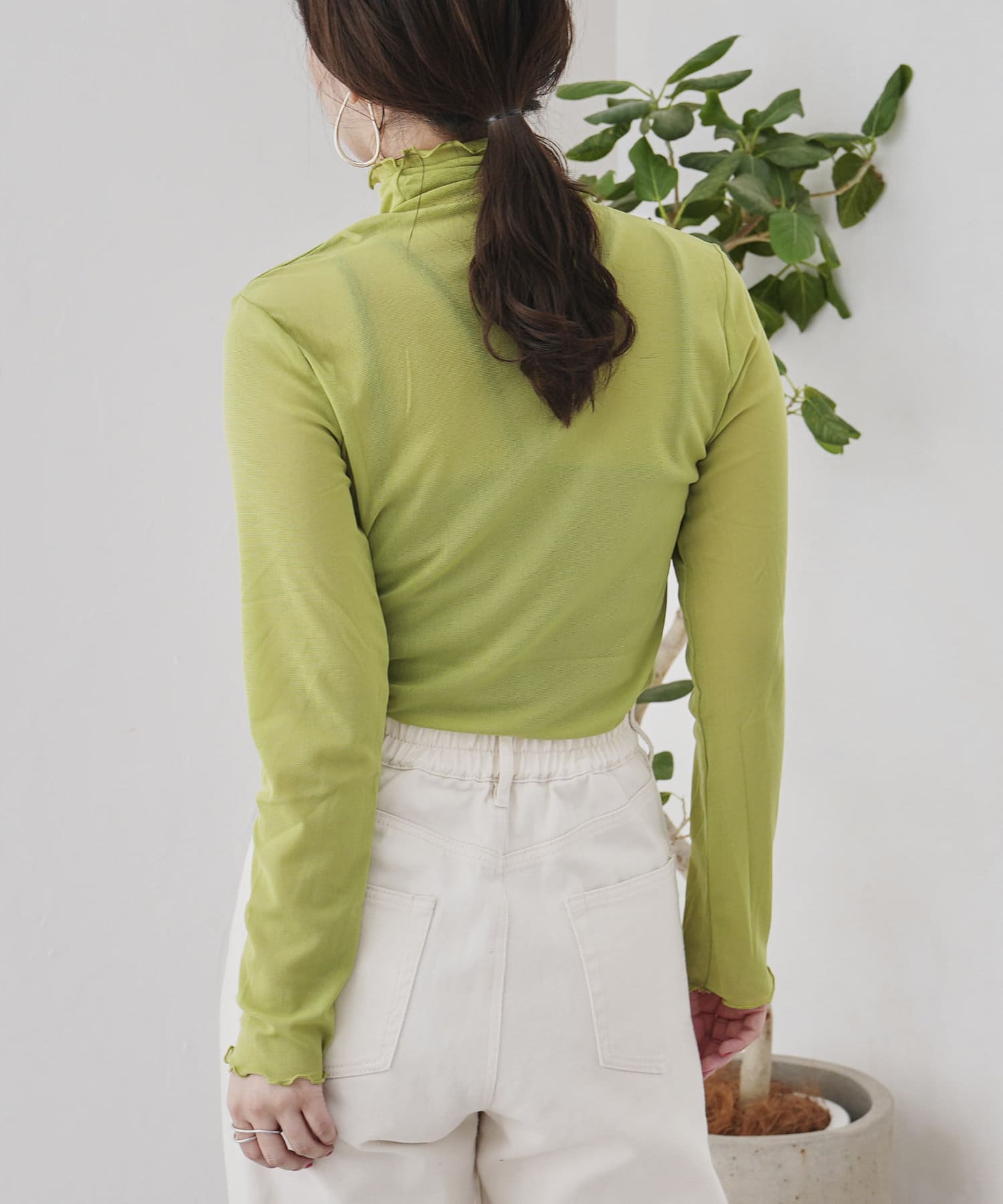 ●首元、袖口のメロウフリルが女性らしい柔らかな印象に