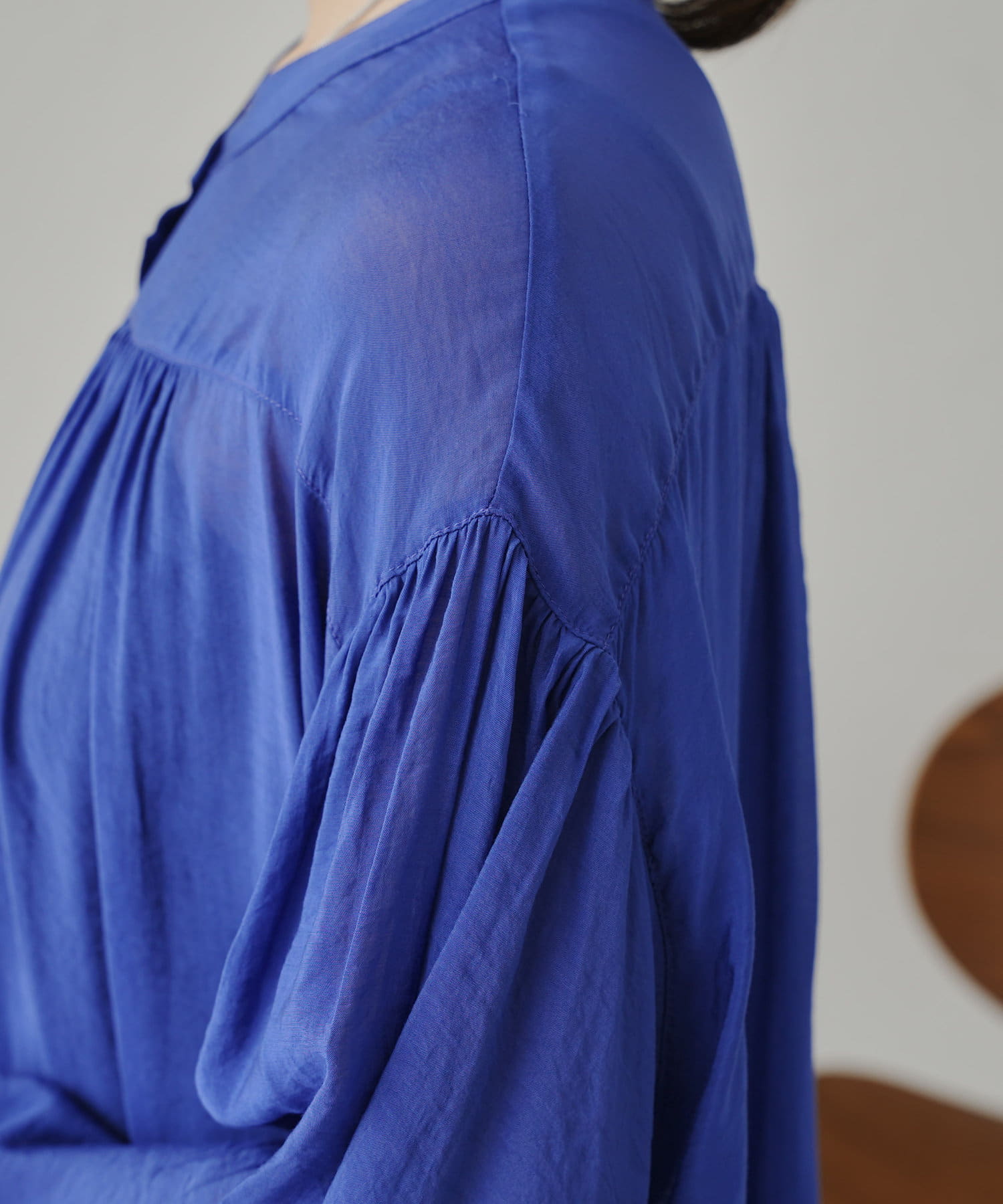 ●袖と胸元のギャザーがふんわり女性らしいシルエットに