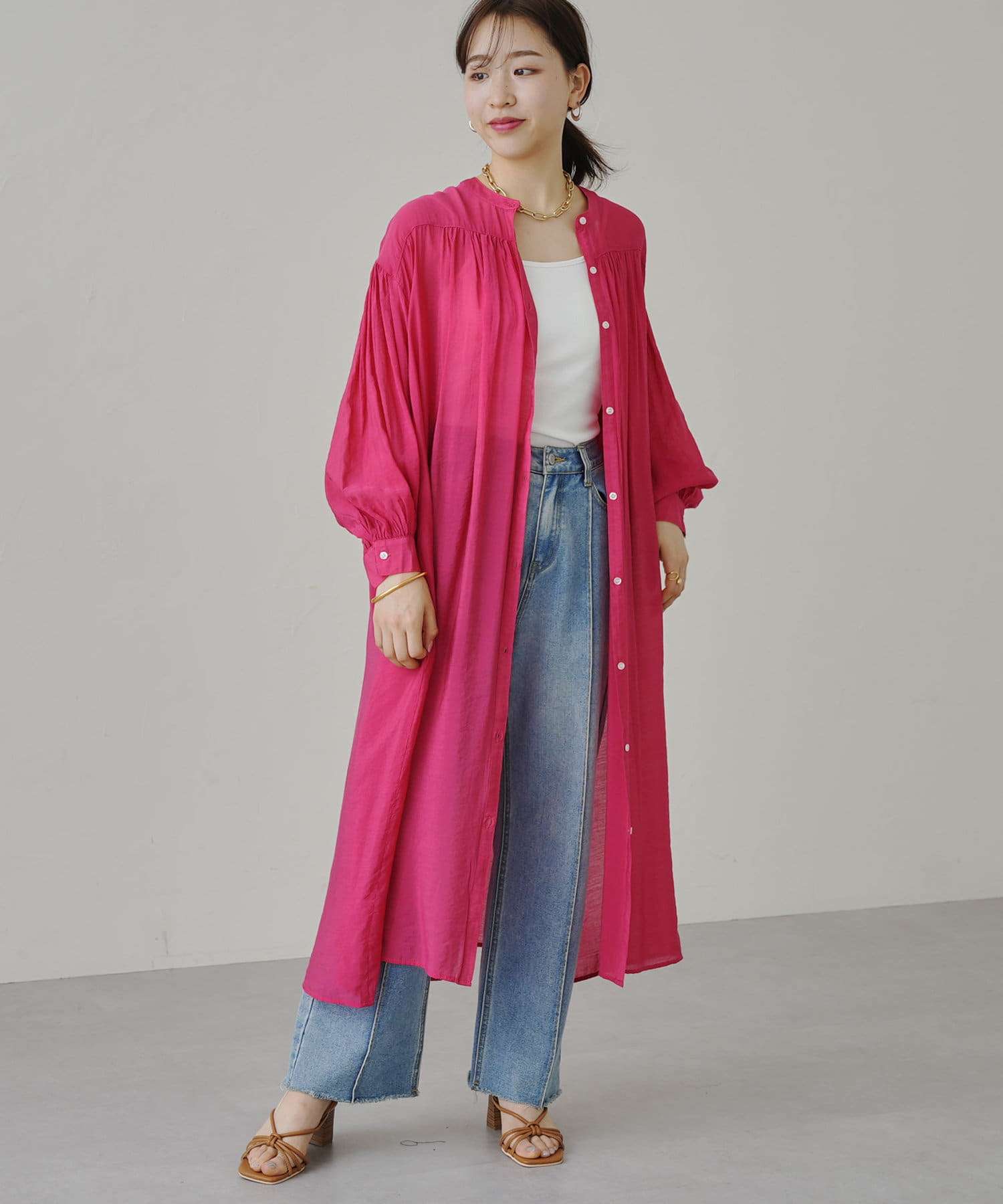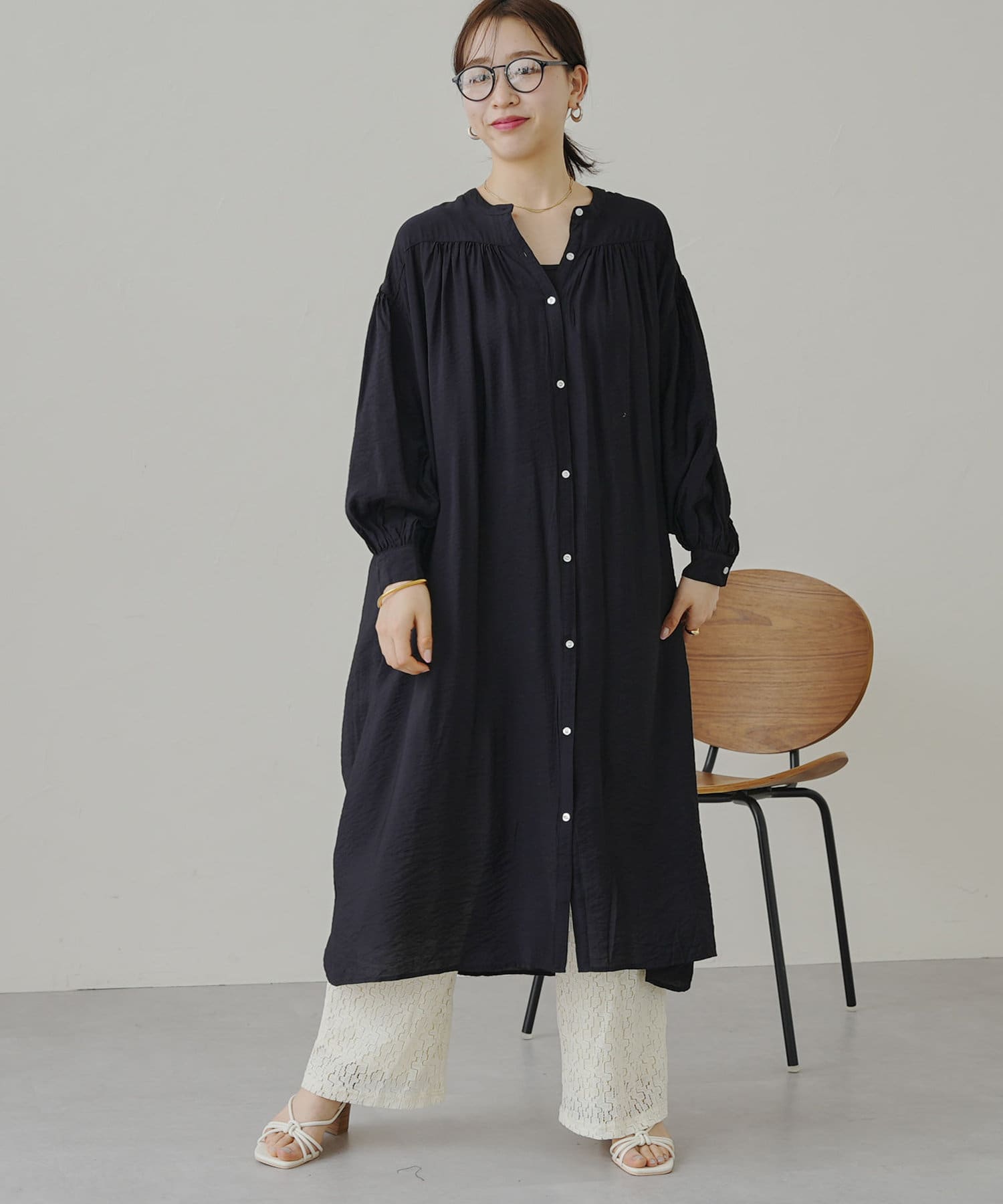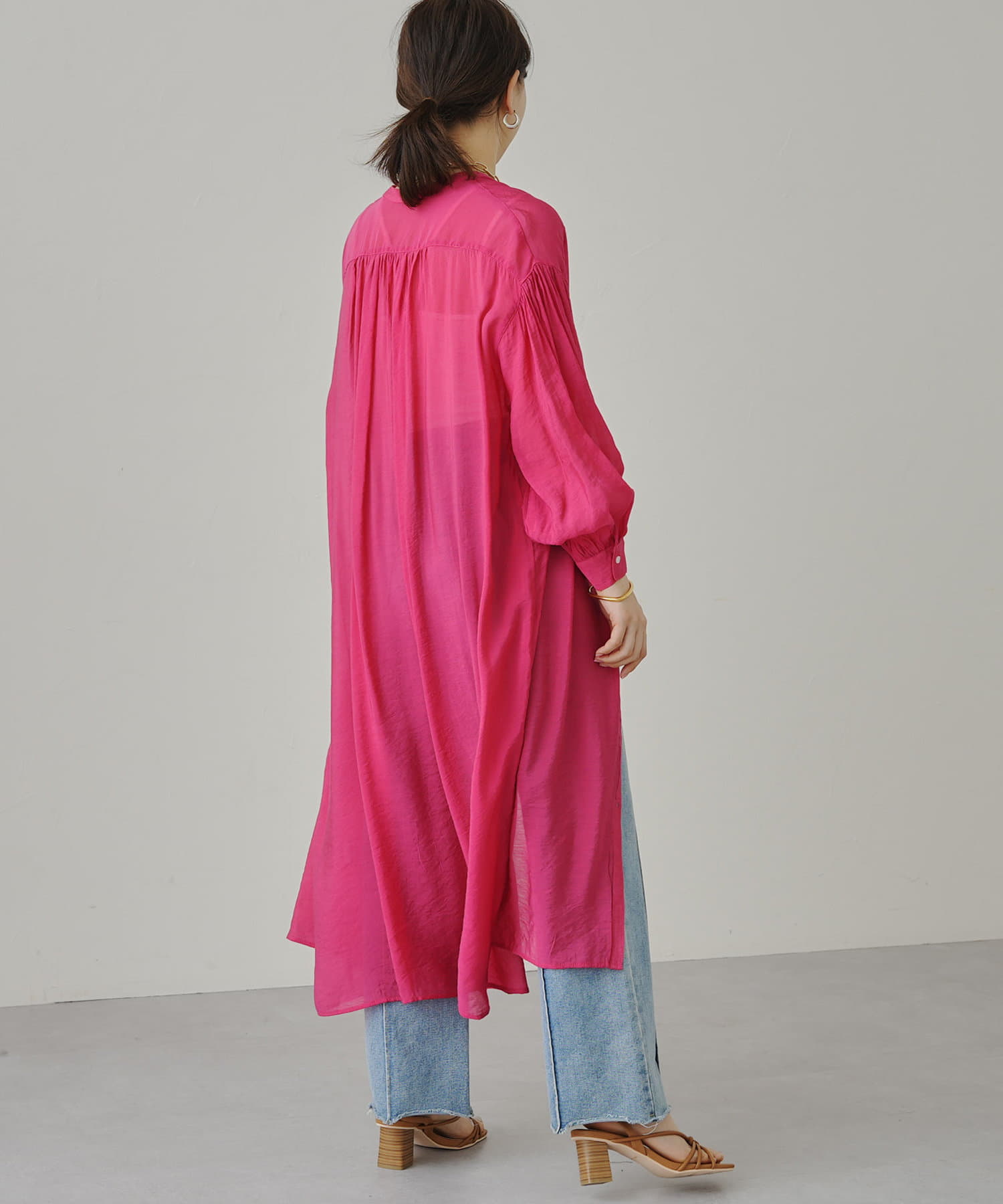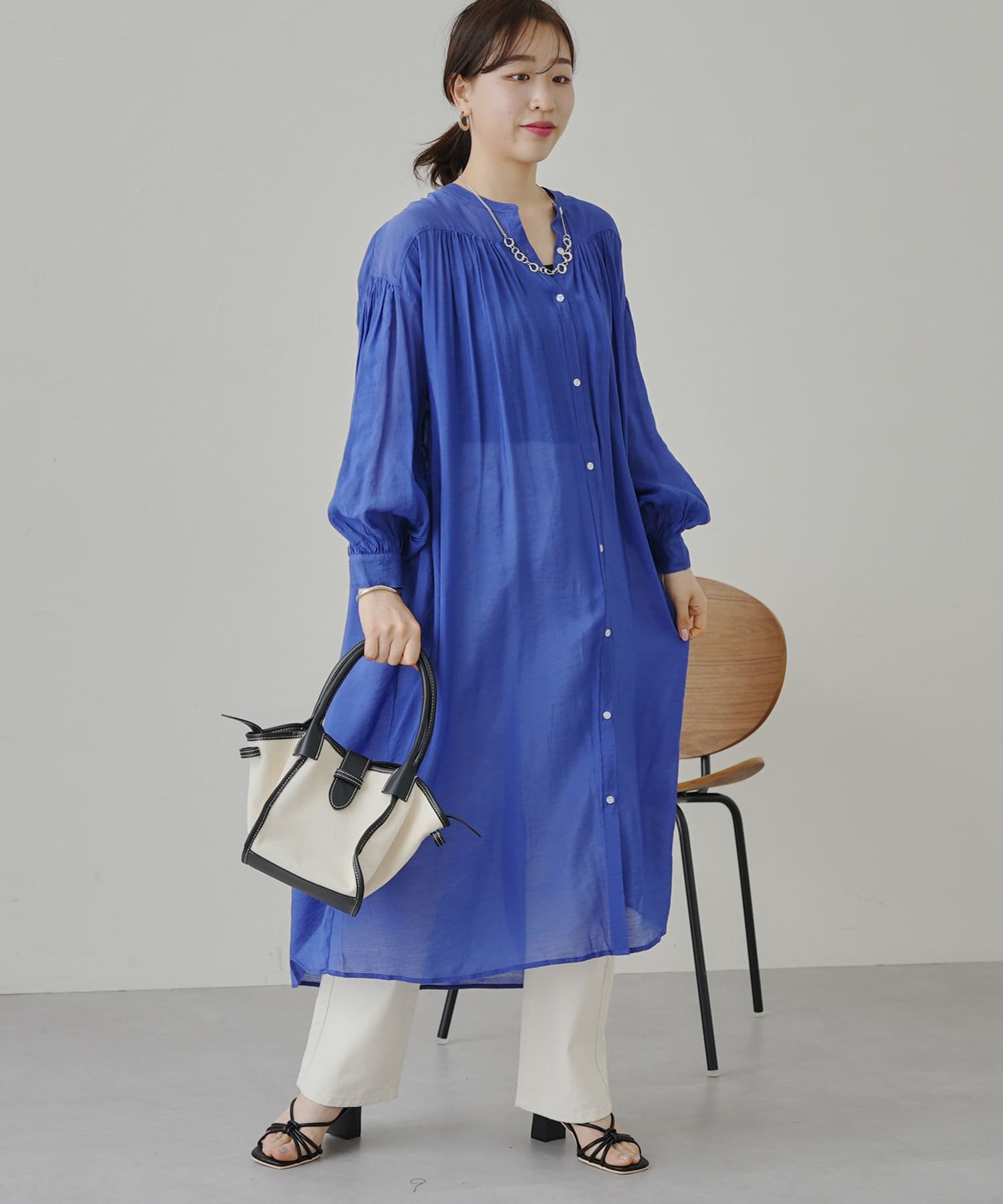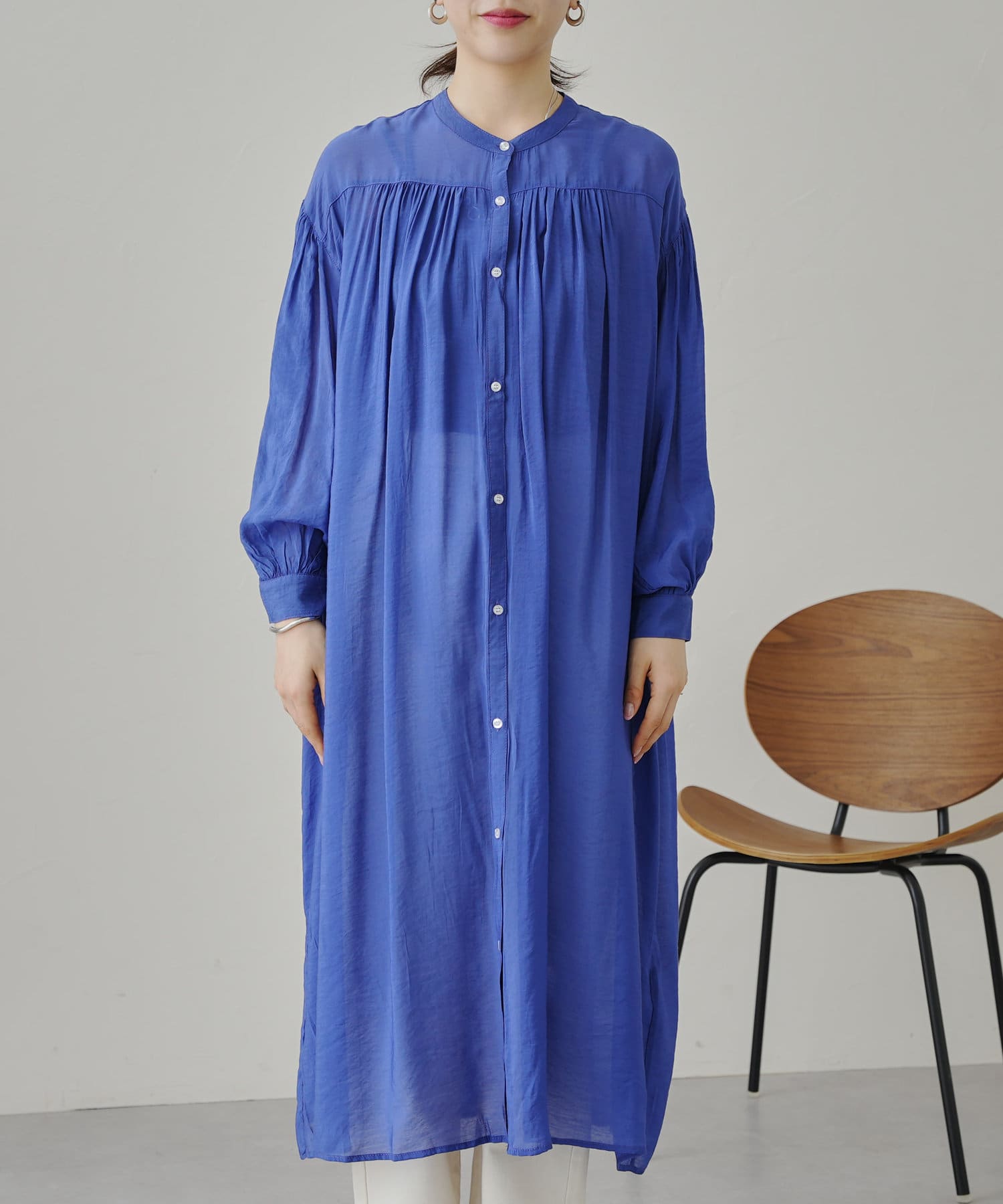 上品で軽いシアーローン素材で仕立てたシャツワンピ