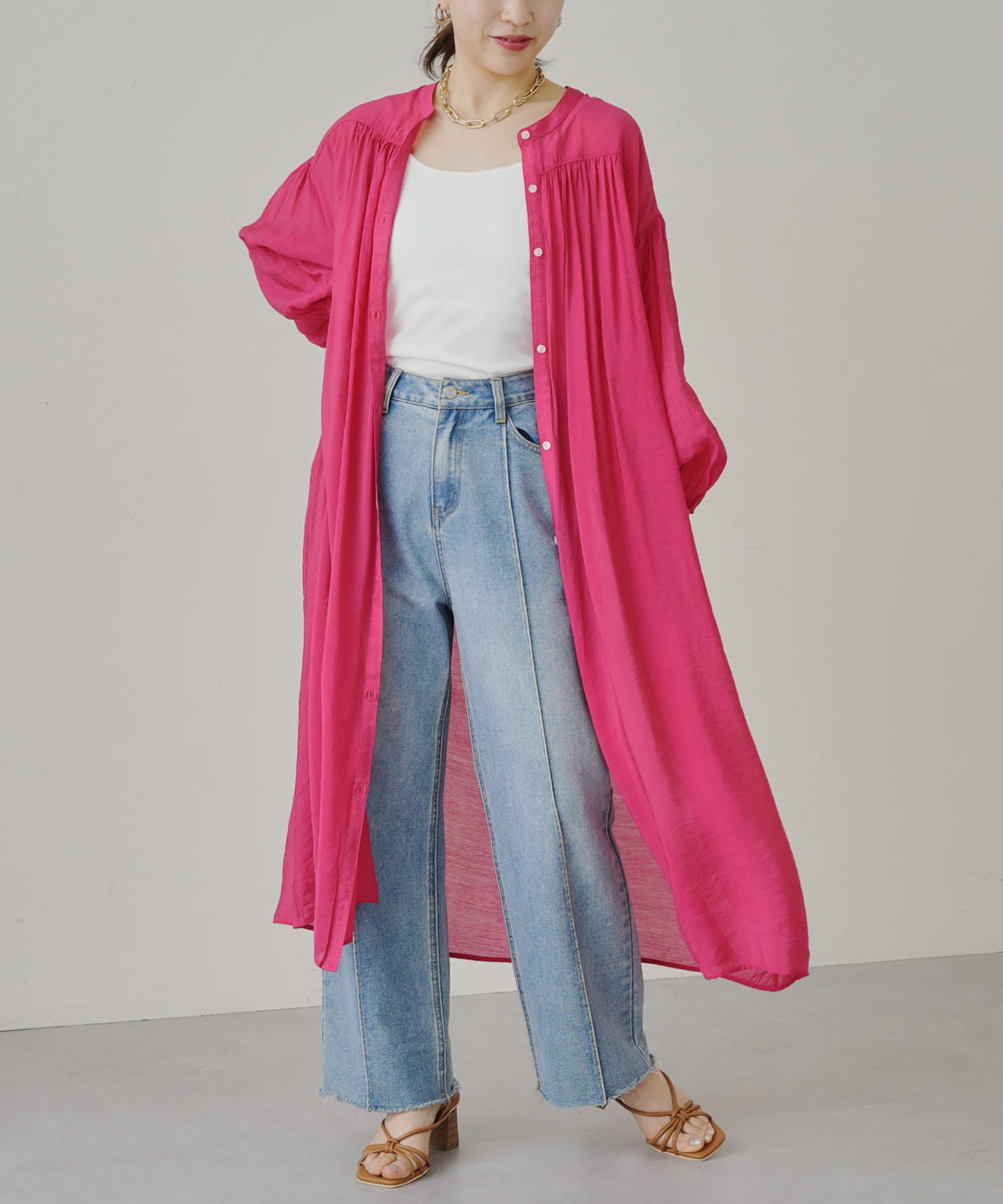 ・薄手のニットやTシャツに羽織っても◎