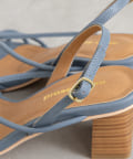 ●ウッド調のヒールで夏らしい涼し気な風合いをプラス