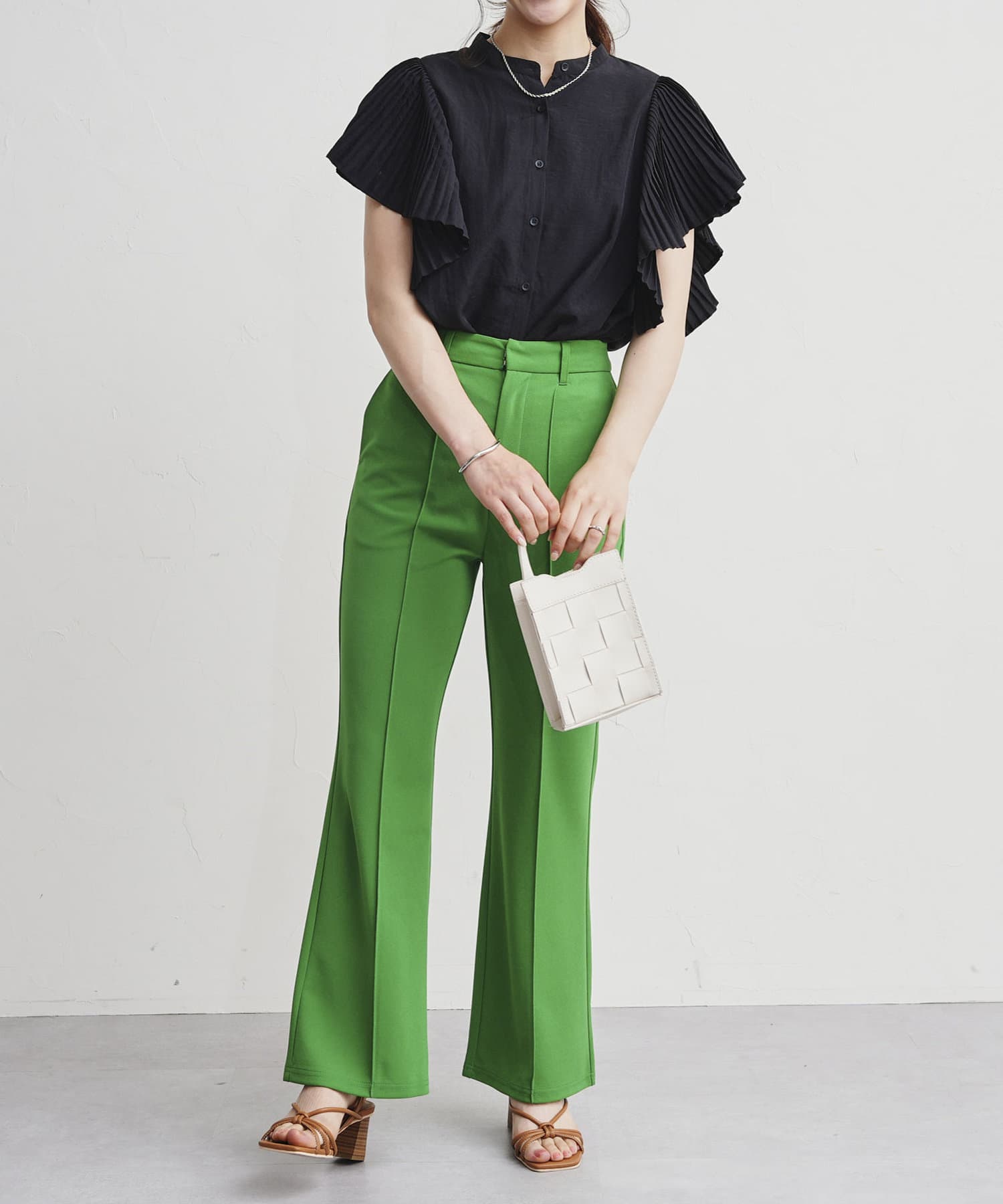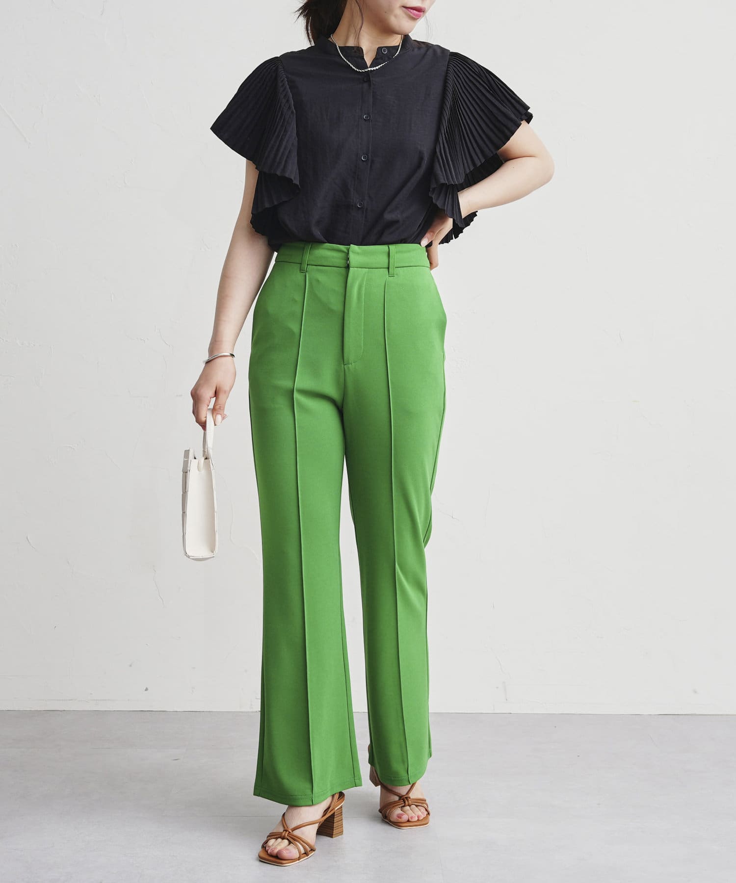 ・バンドカラーのシャツやボリューム袖のブラウスとも相性抜群◎