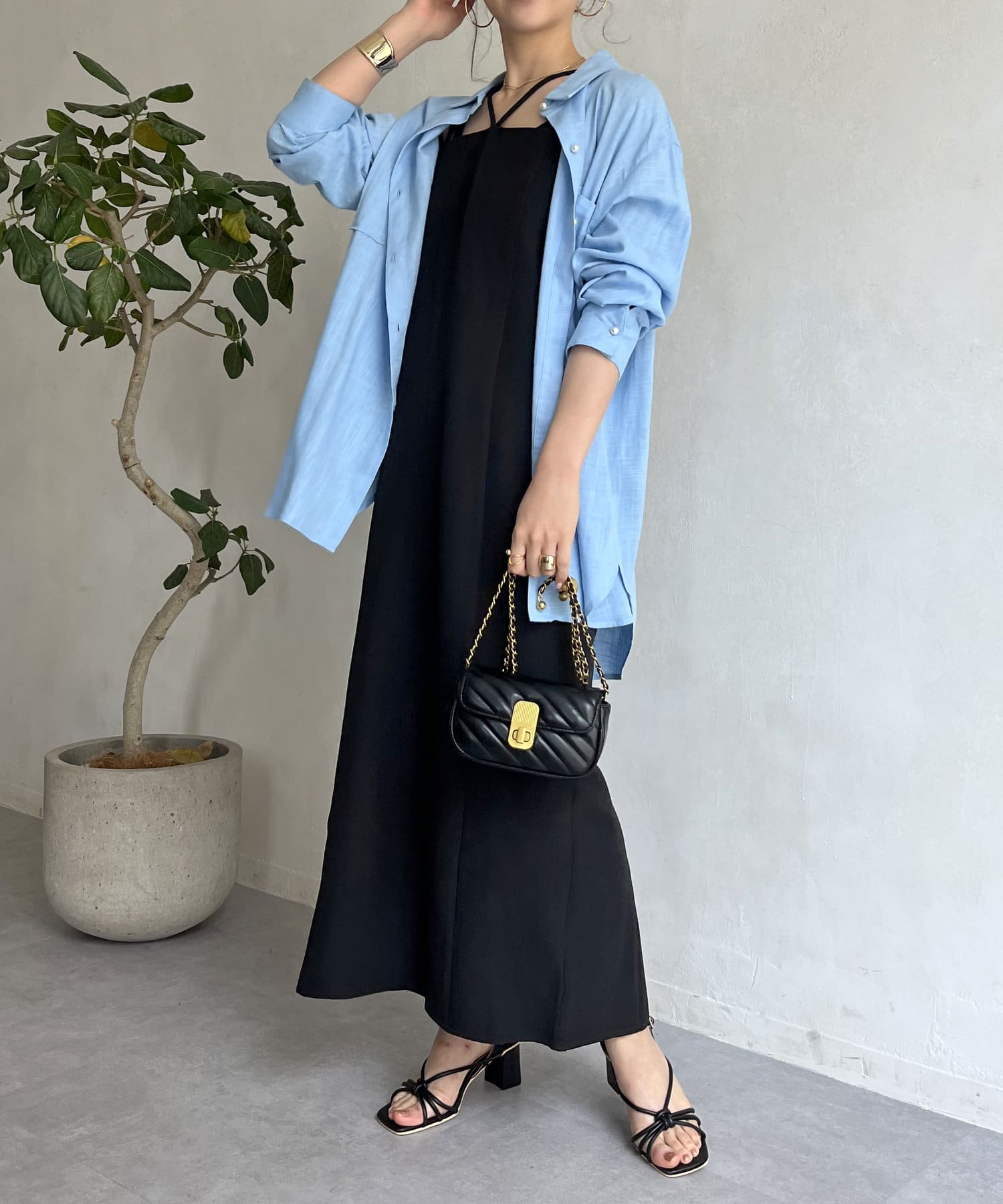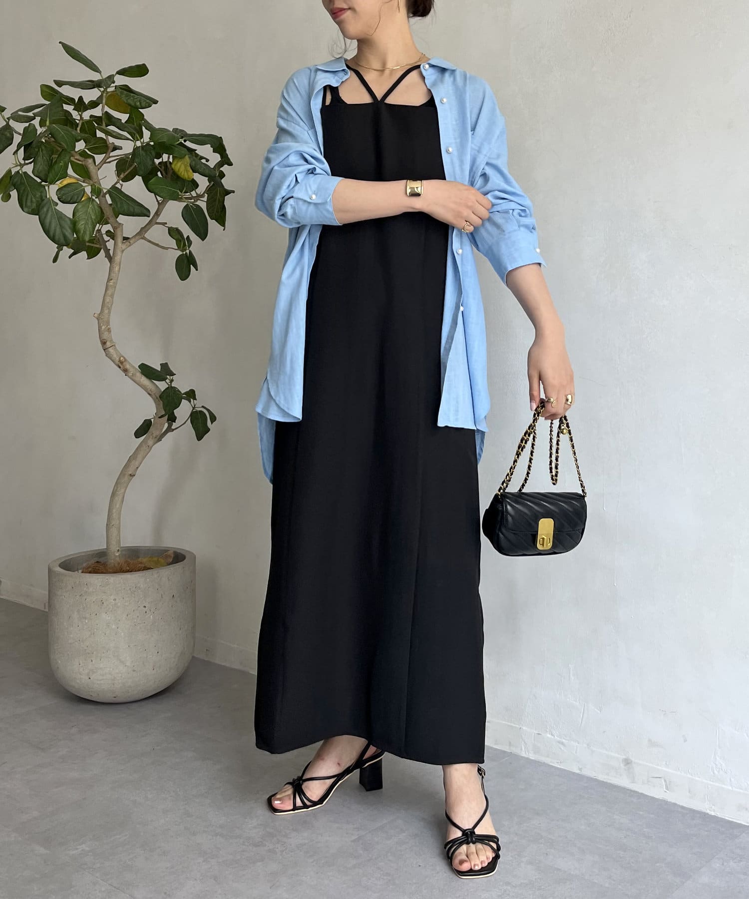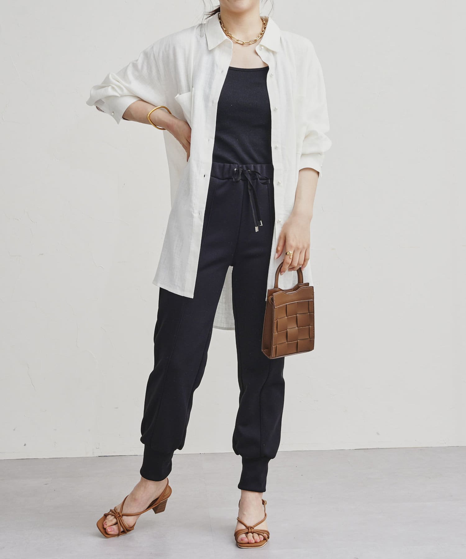 ・Tシャツやタンクトップ、キャミにさらりと羽織るスタイリング