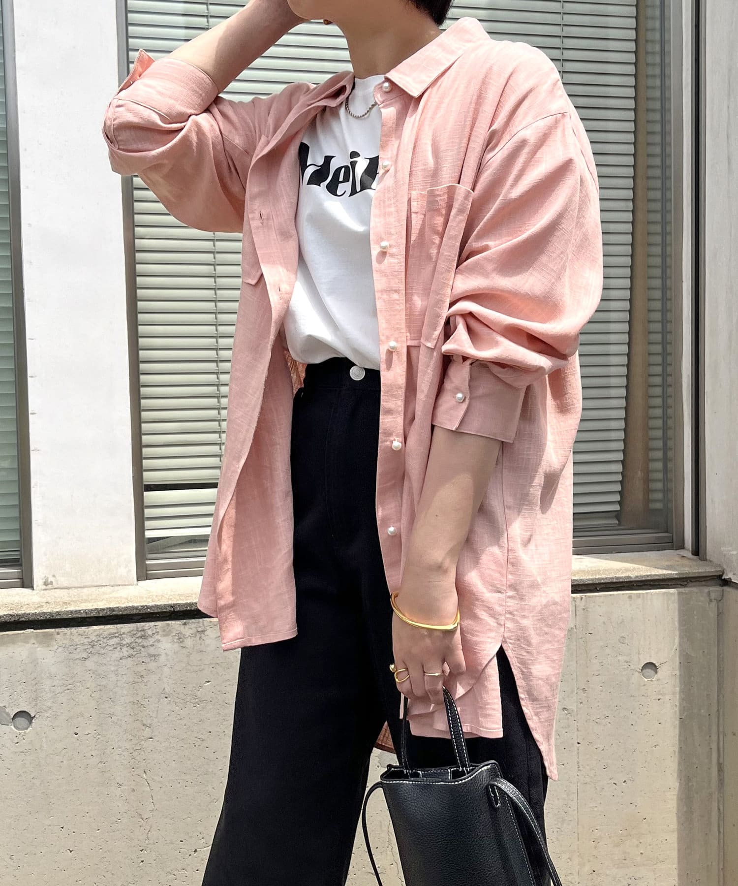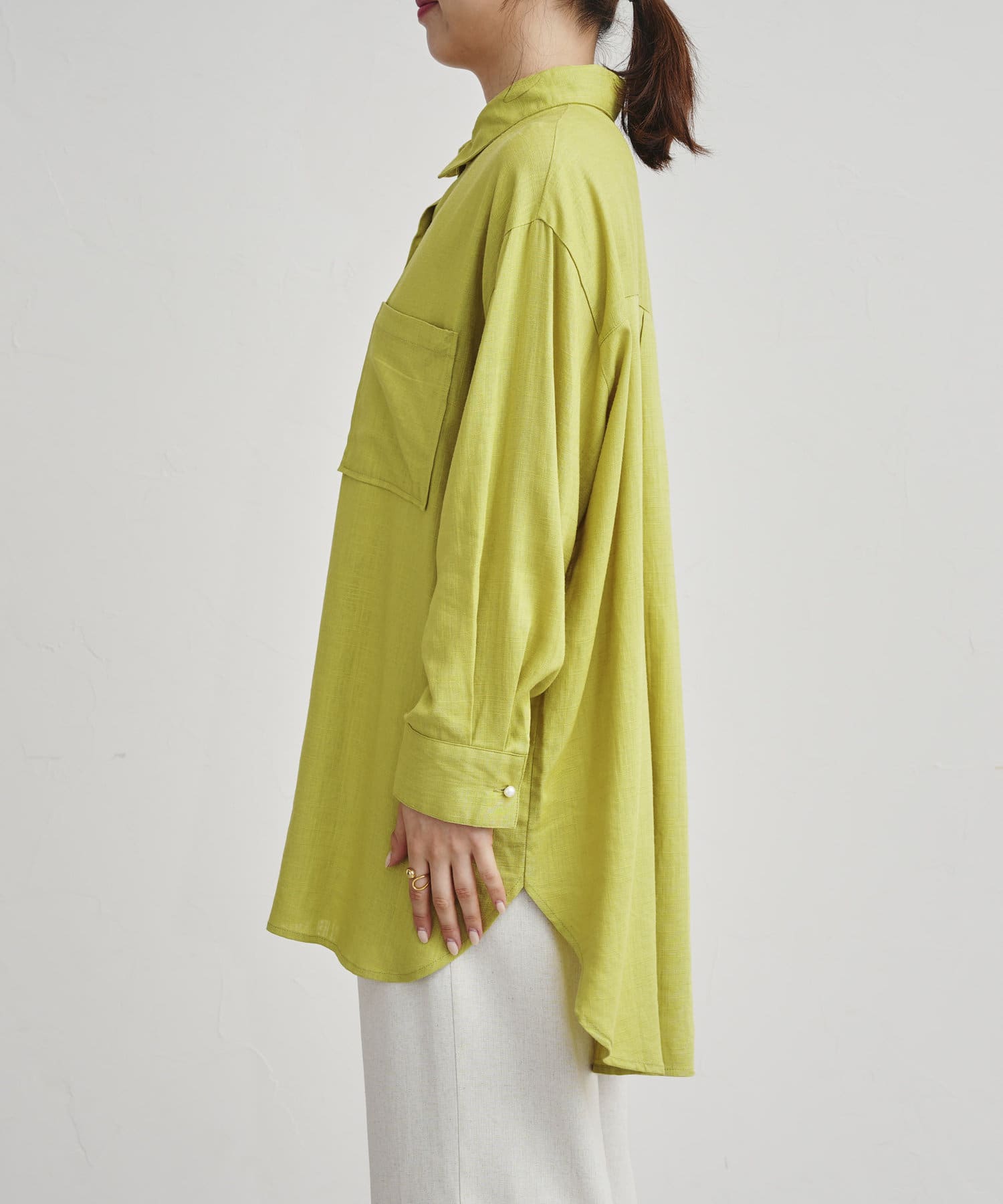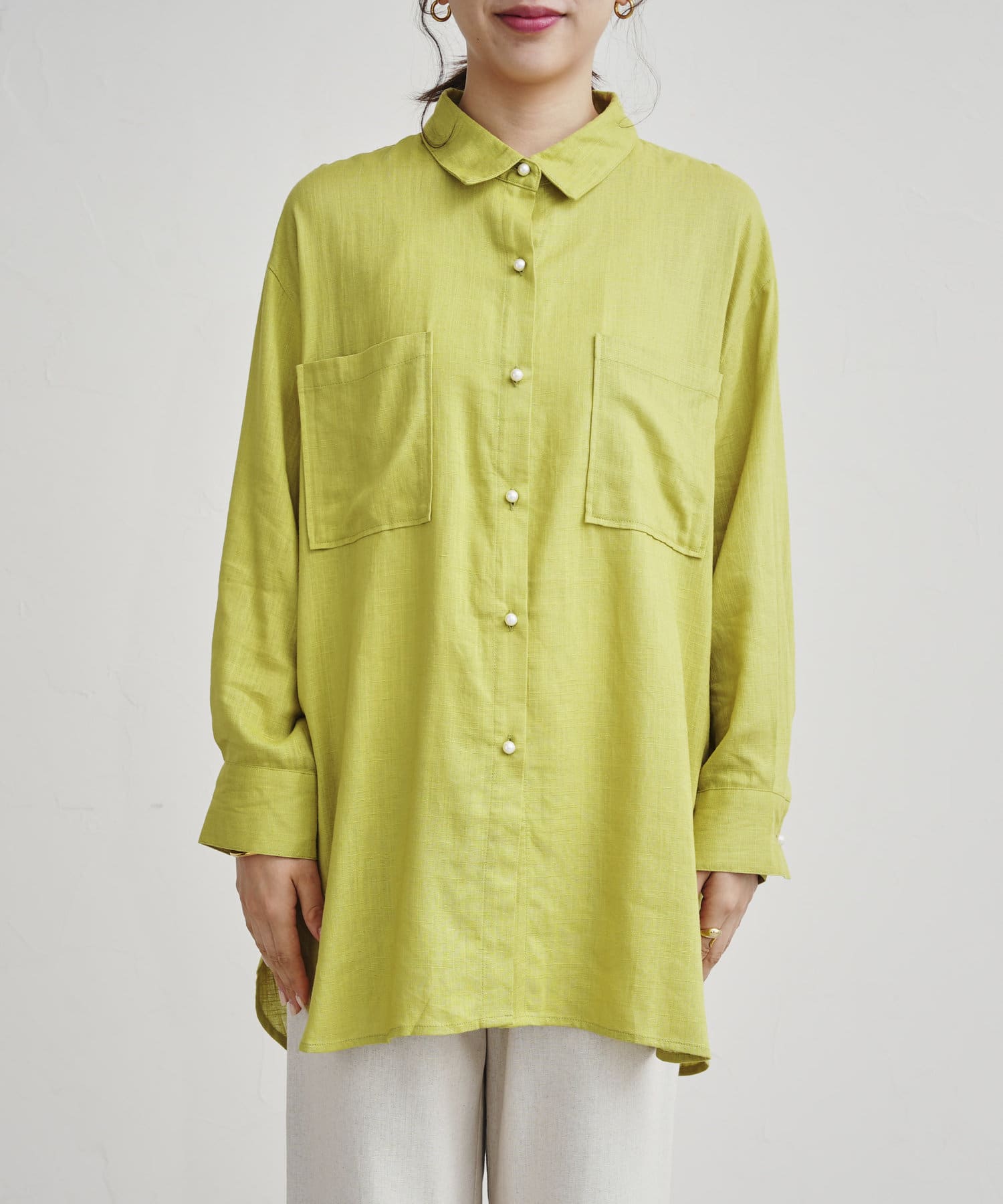 リネン混パール釦オーバーサイズシャツ