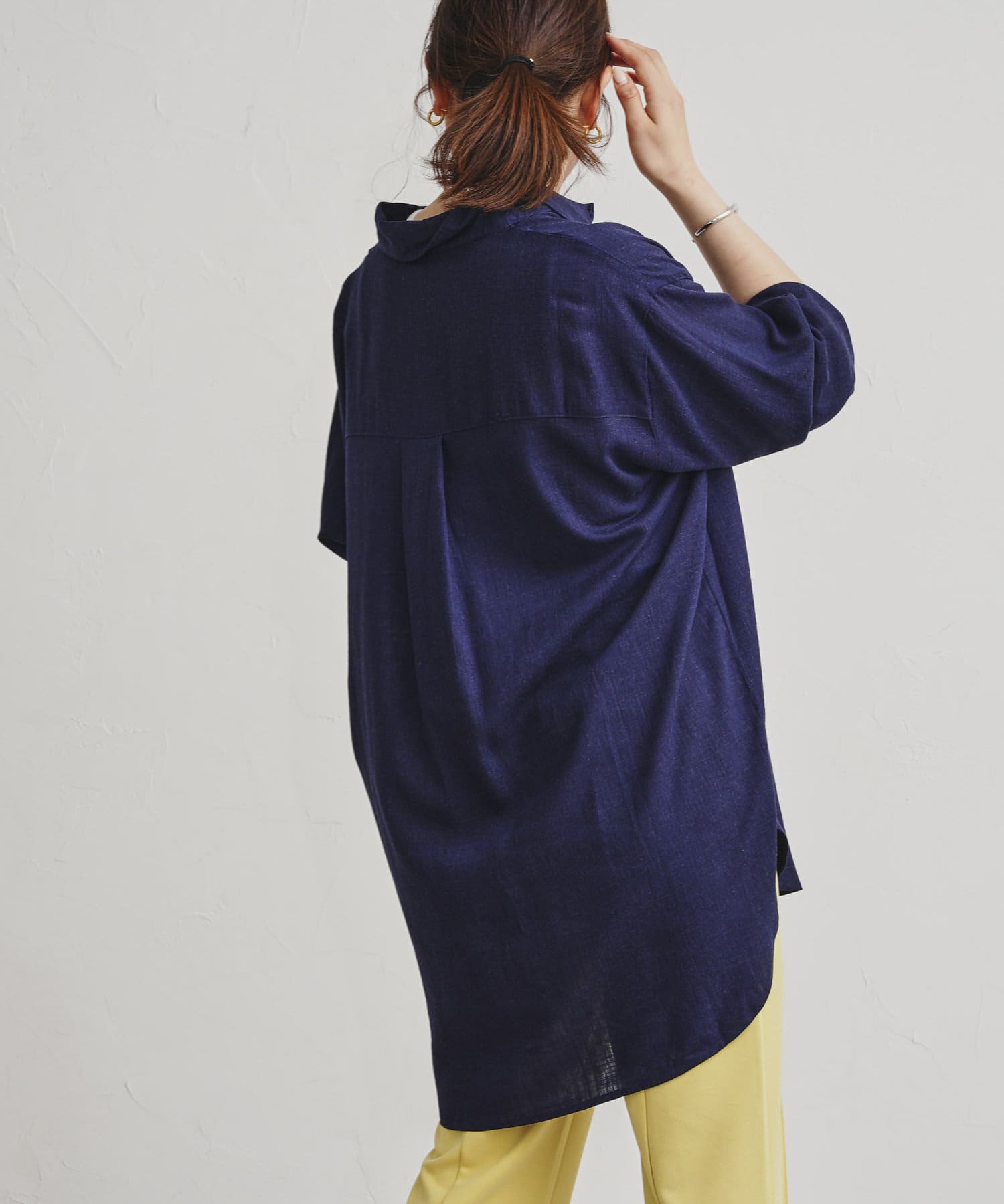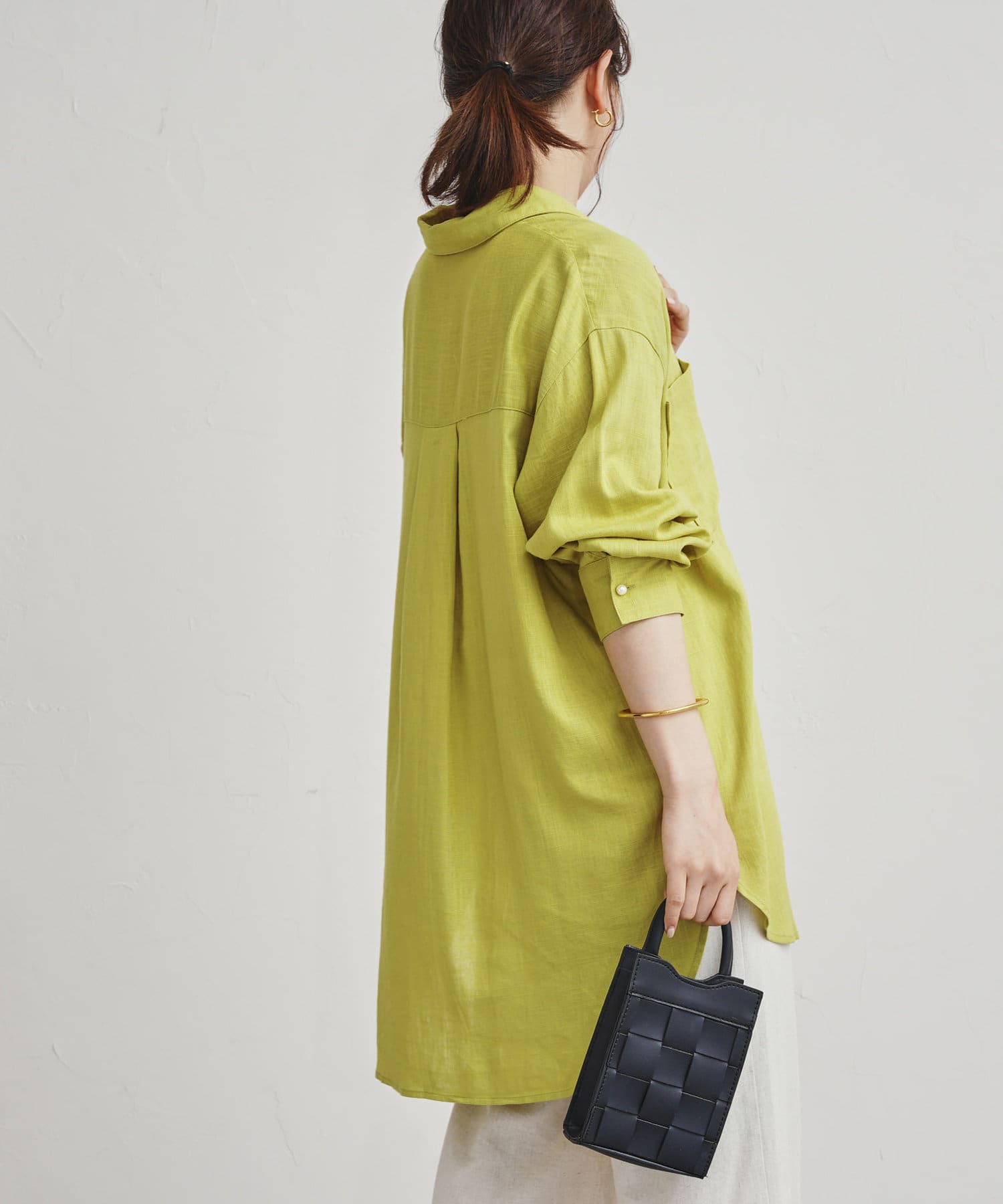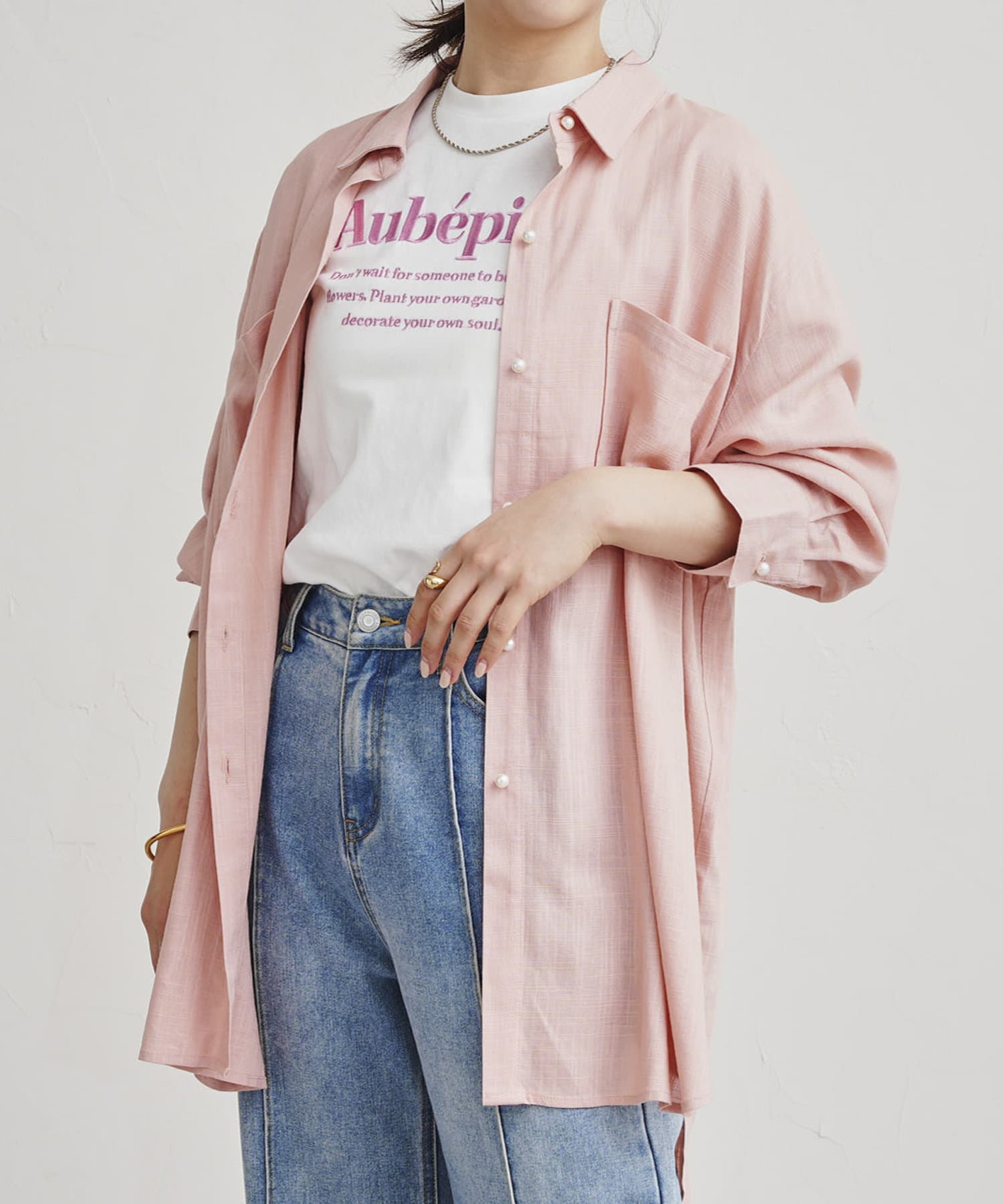 リネン混パール釦オーバーサイズシャツ