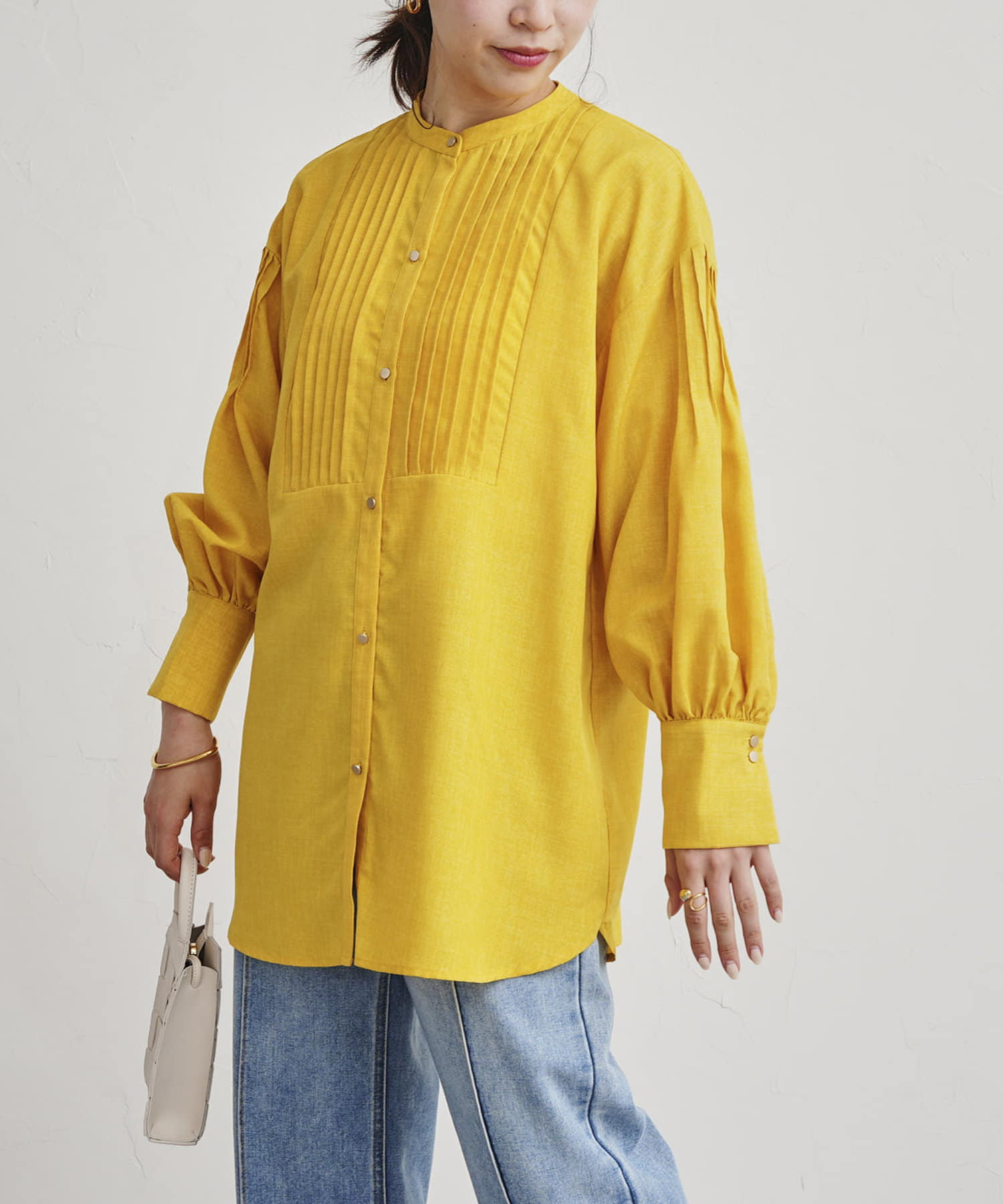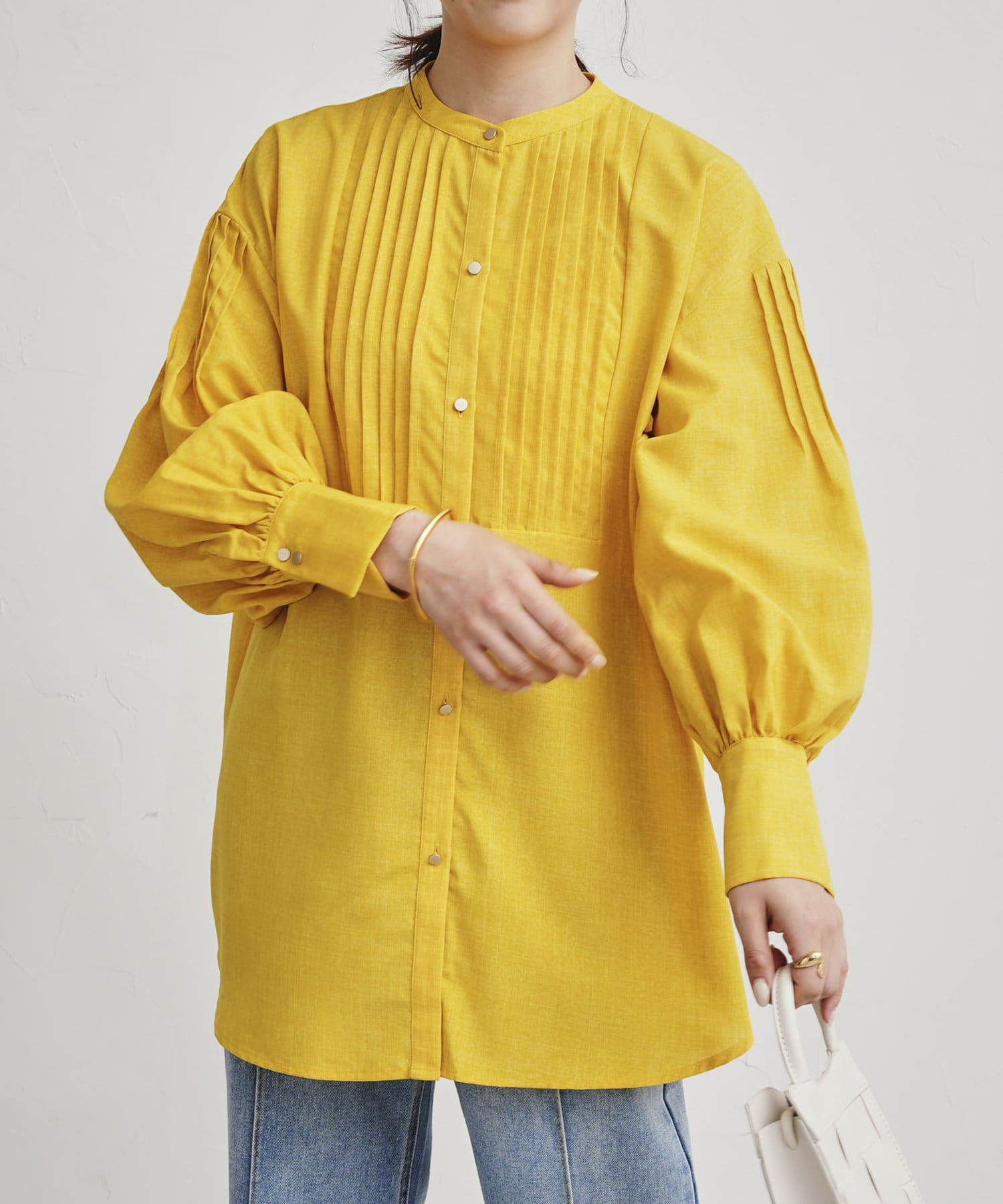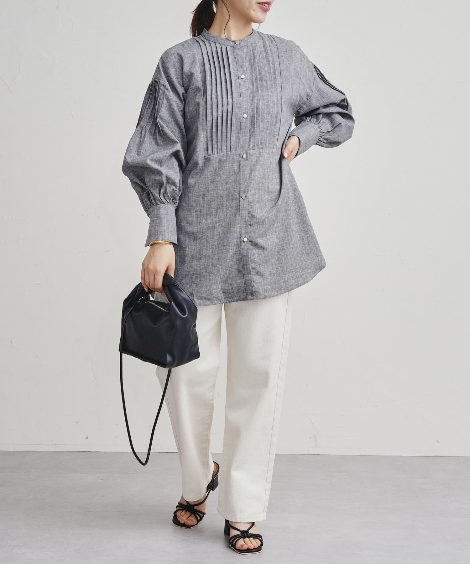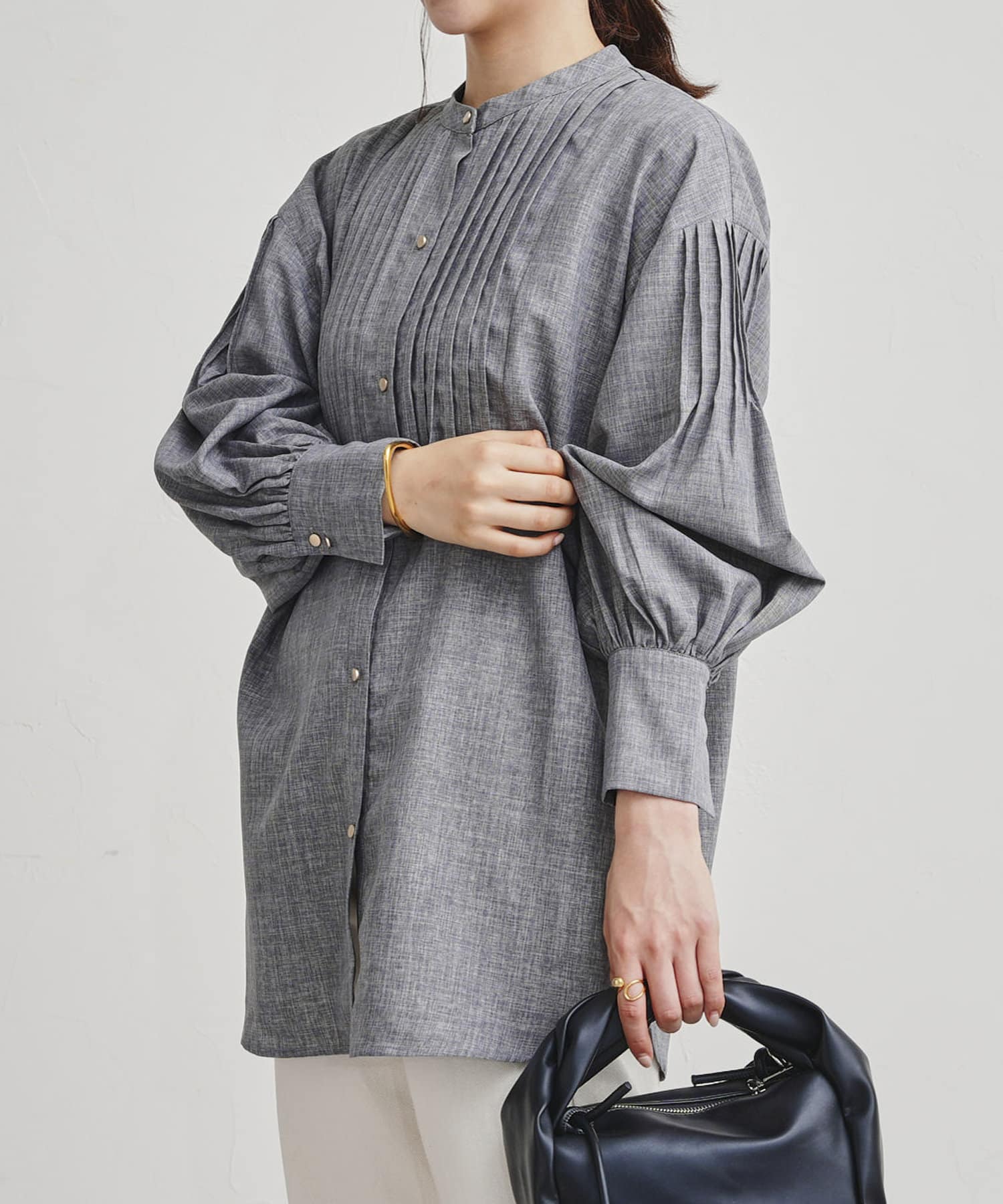 ●フロントと袖のタックがレトロムード漂う一枚