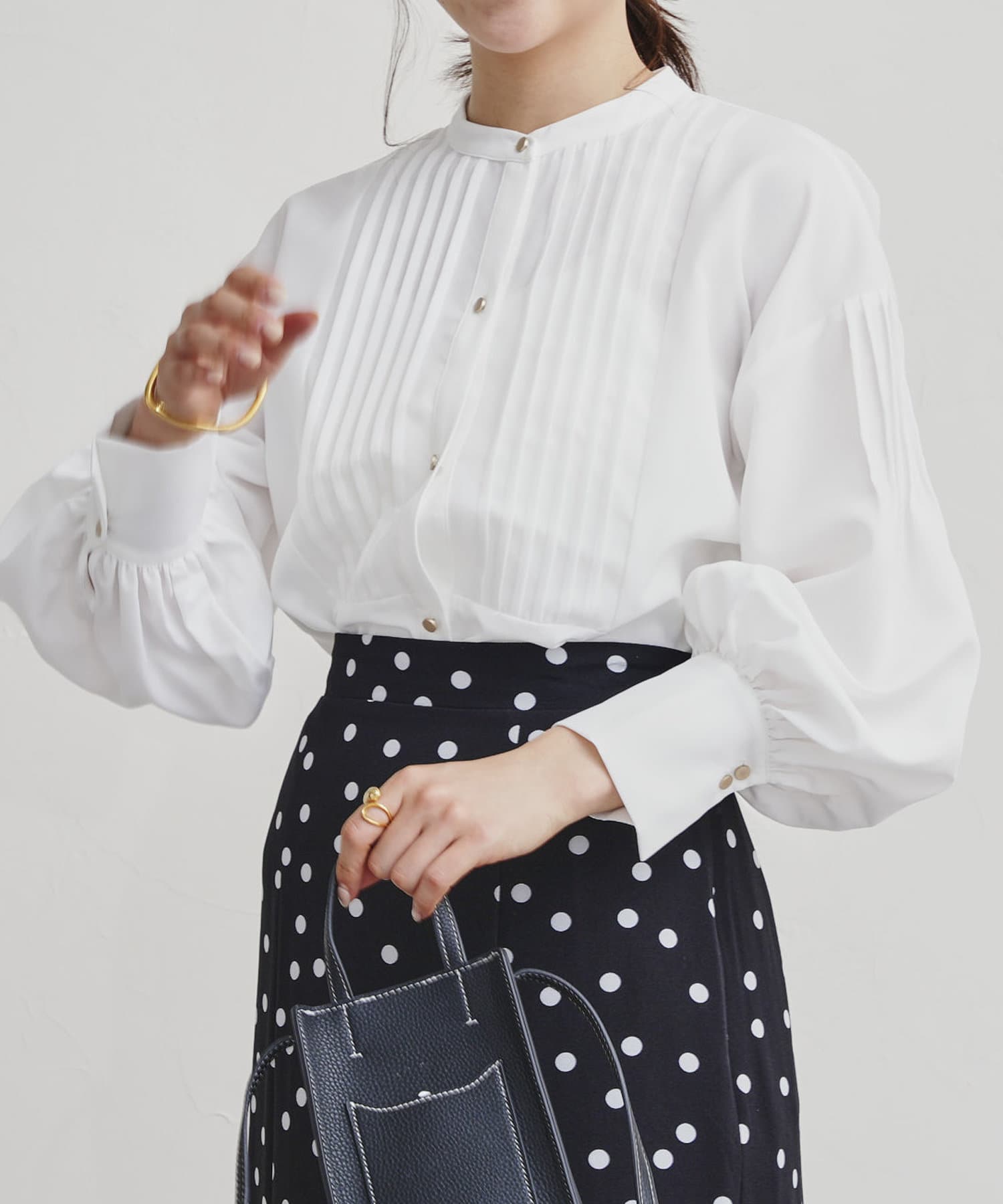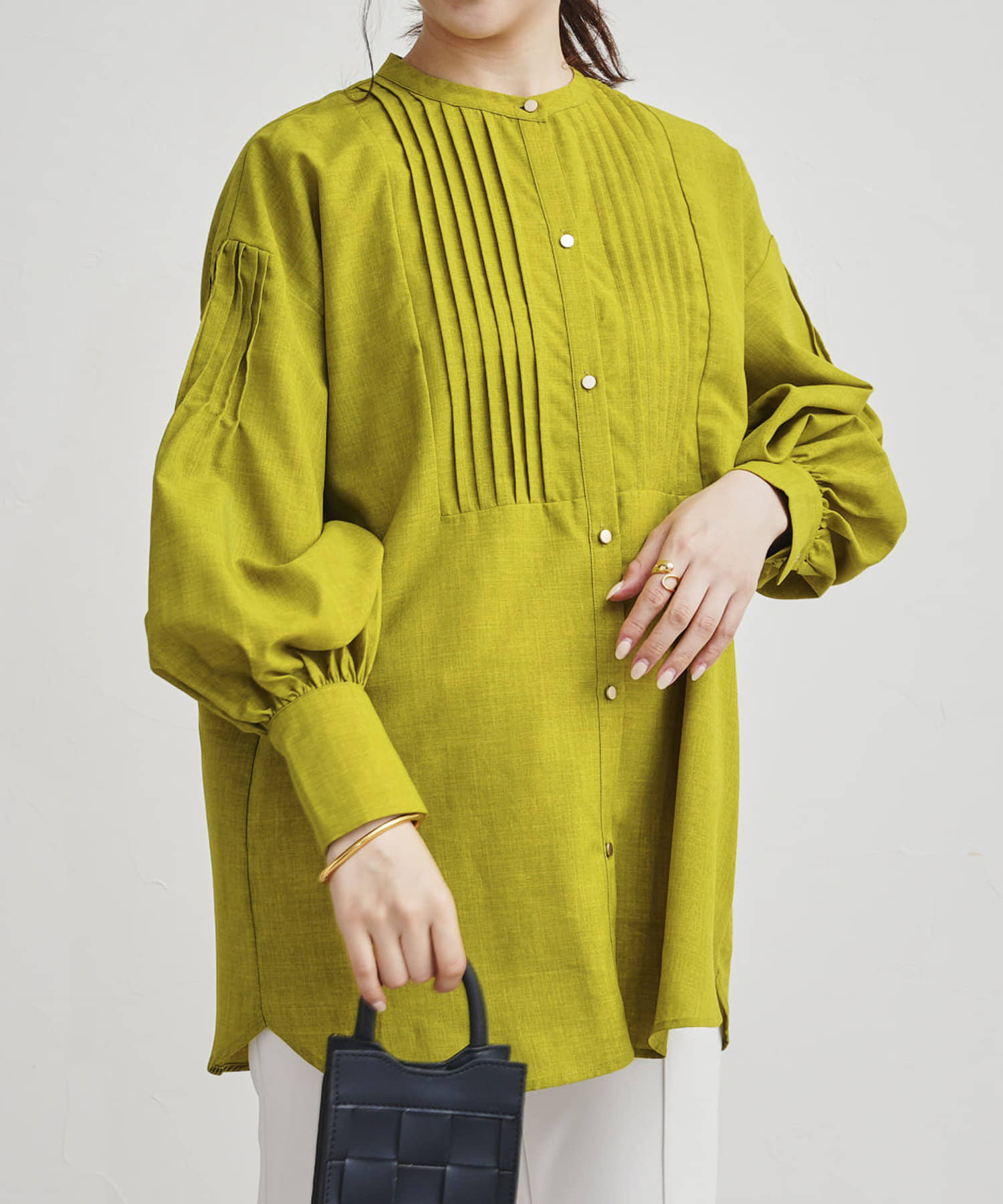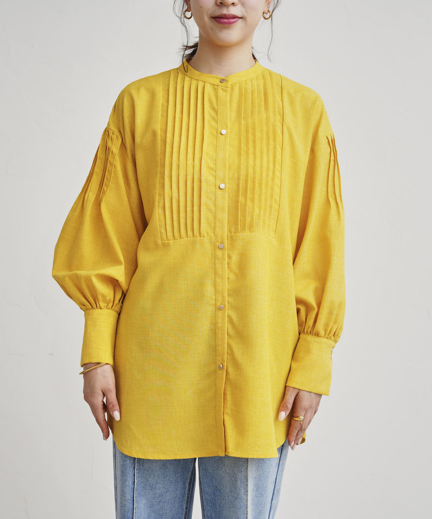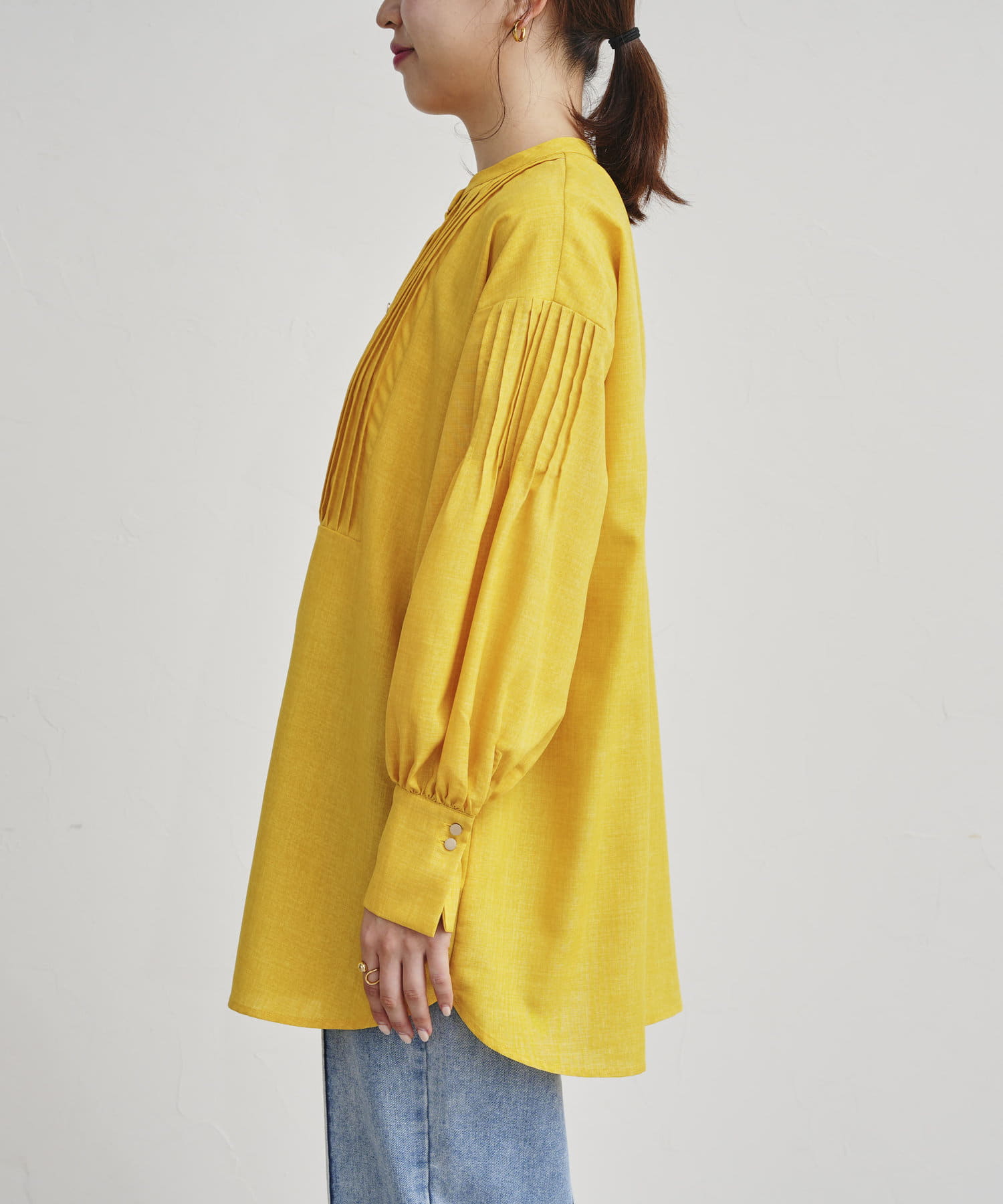 ●フロントと袖のタックがレトロムード漂う一枚