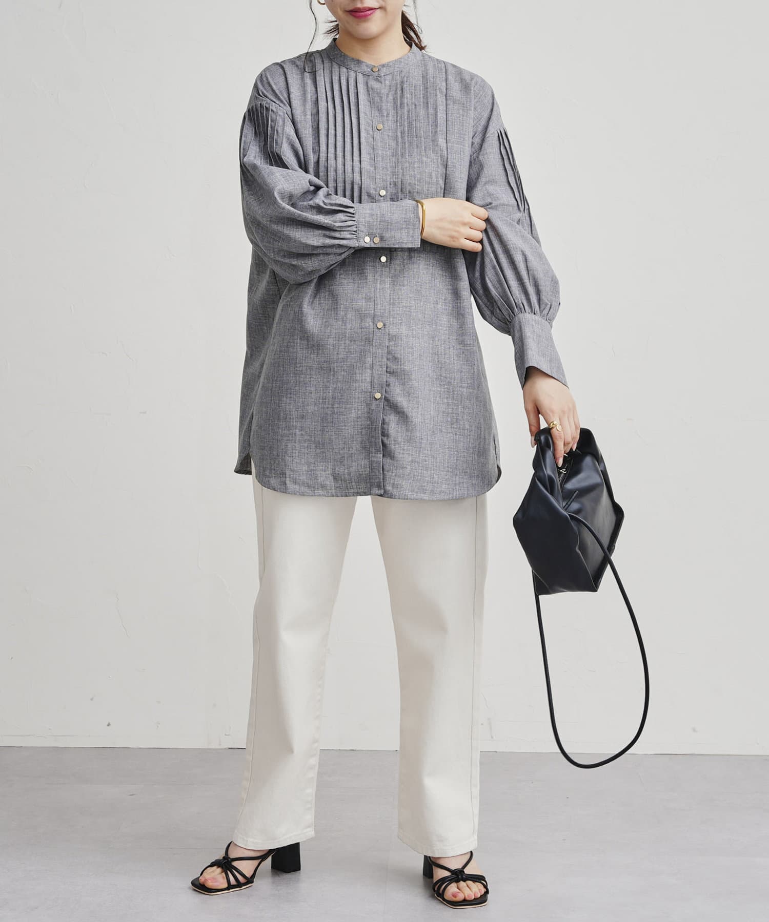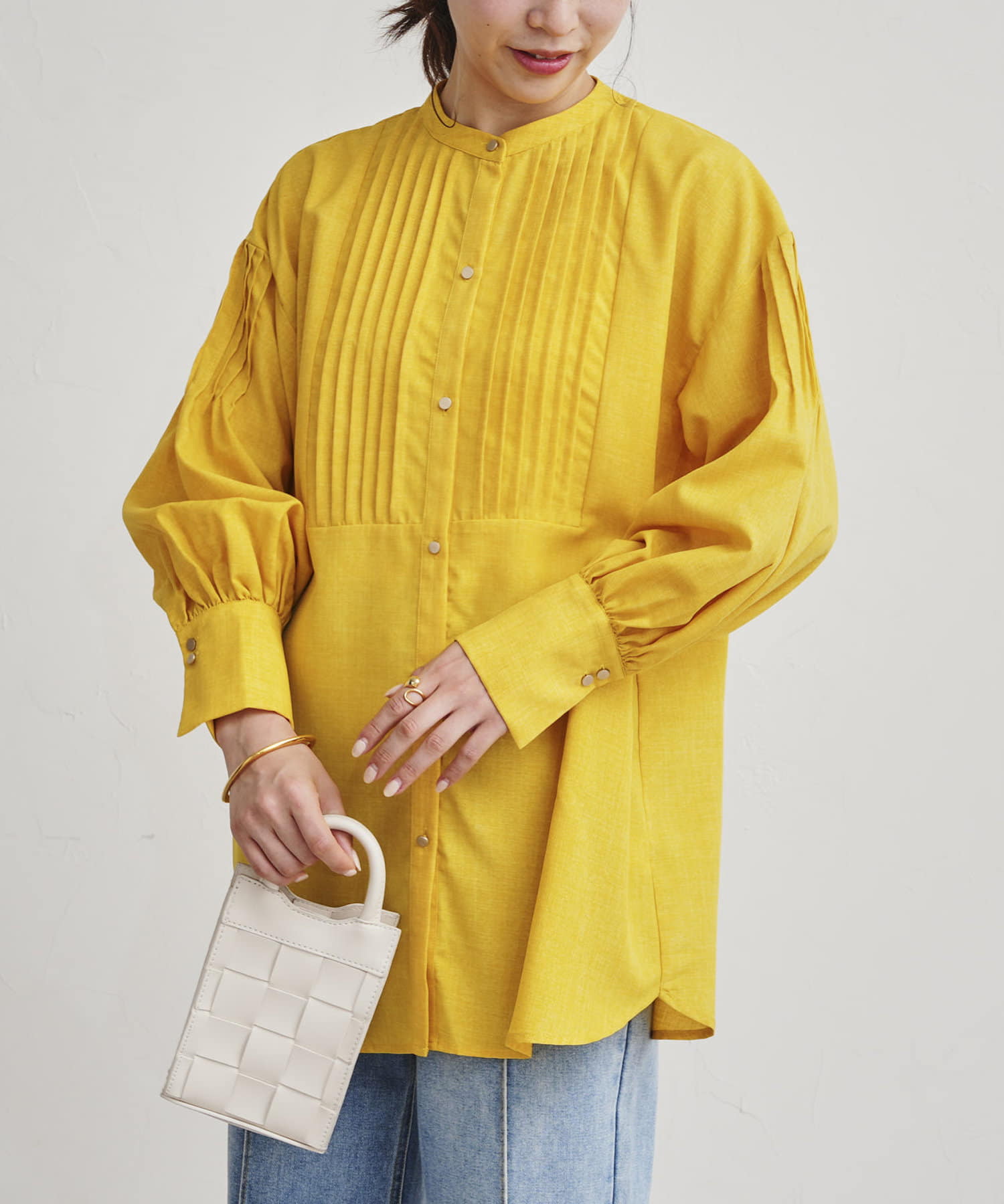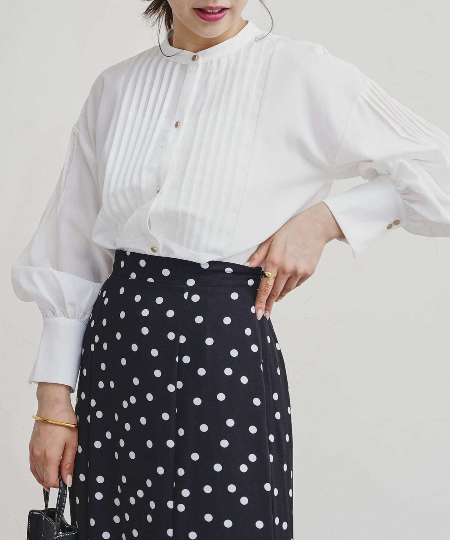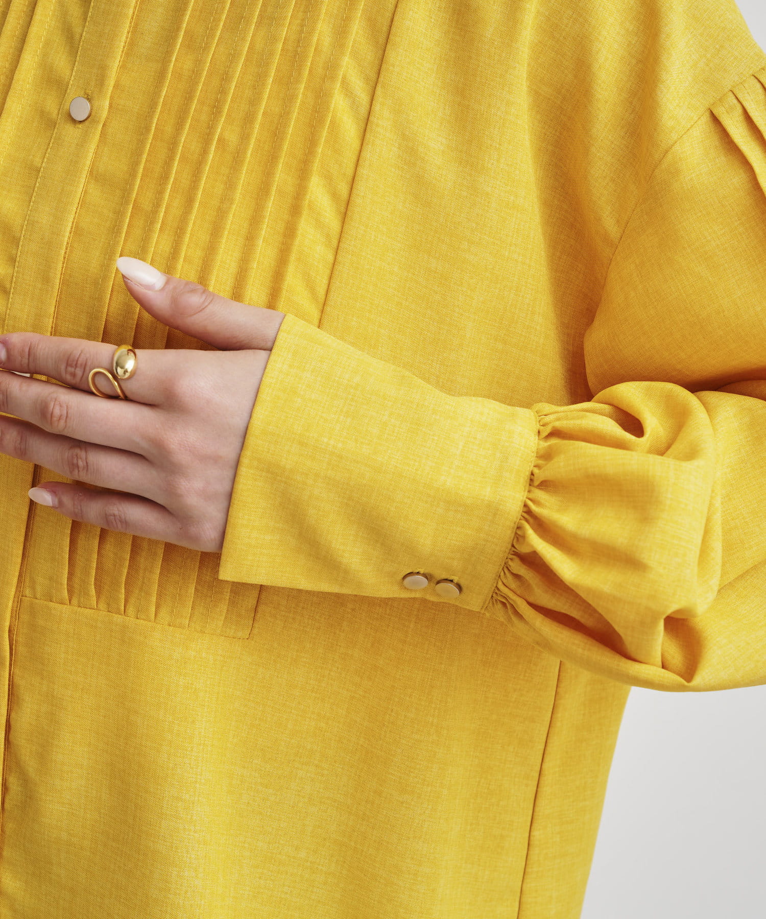 ●フロントと袖のタックがレトロムード漂う一枚