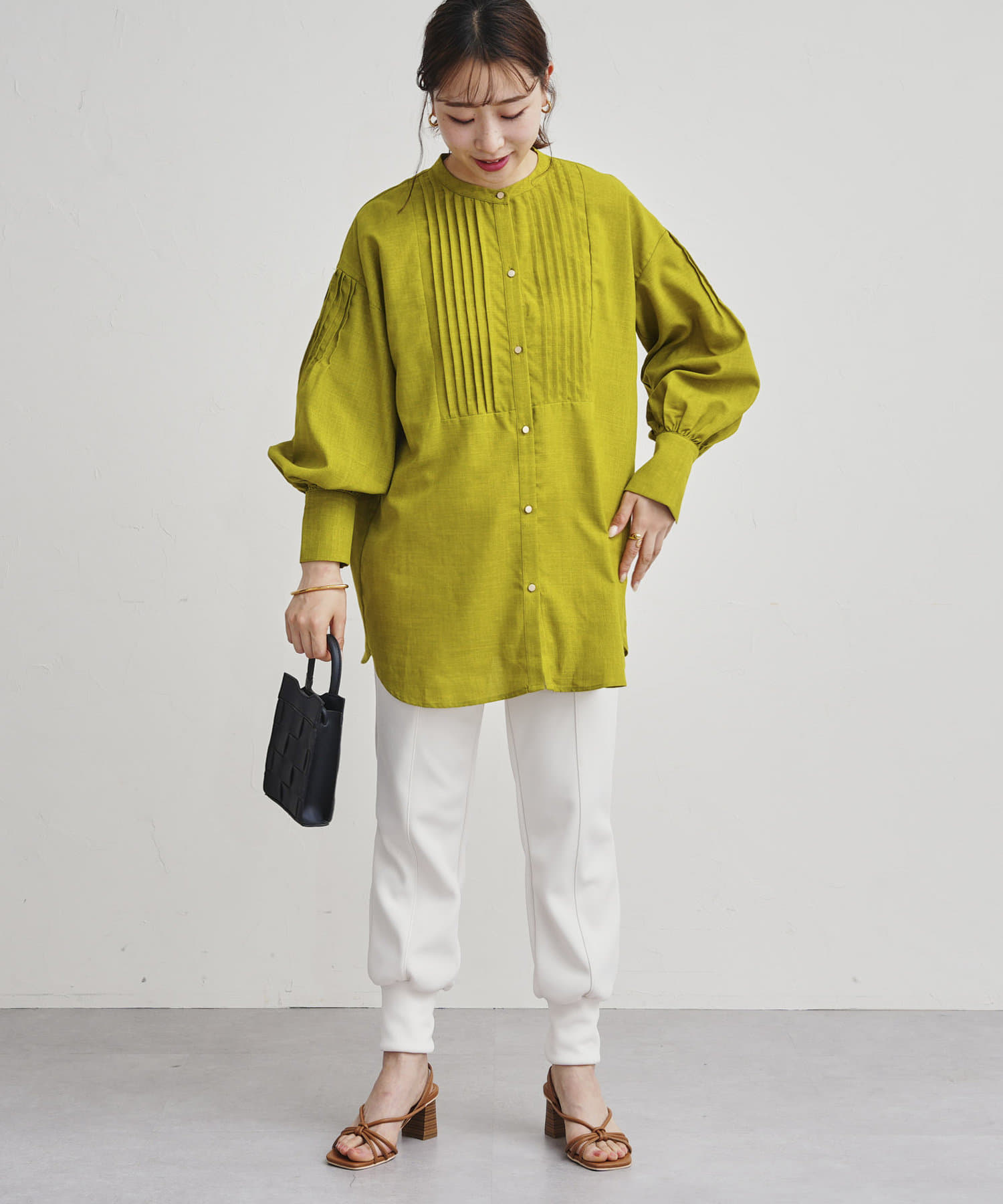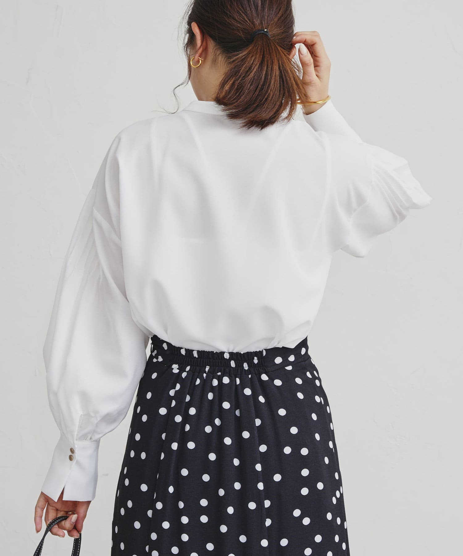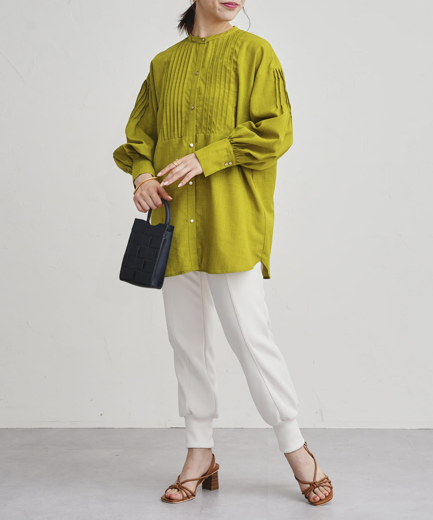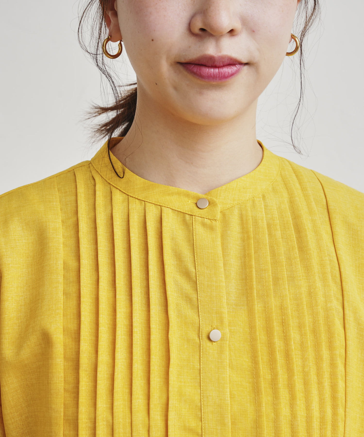 ●フロントと袖のタックがレトロムード漂う一枚