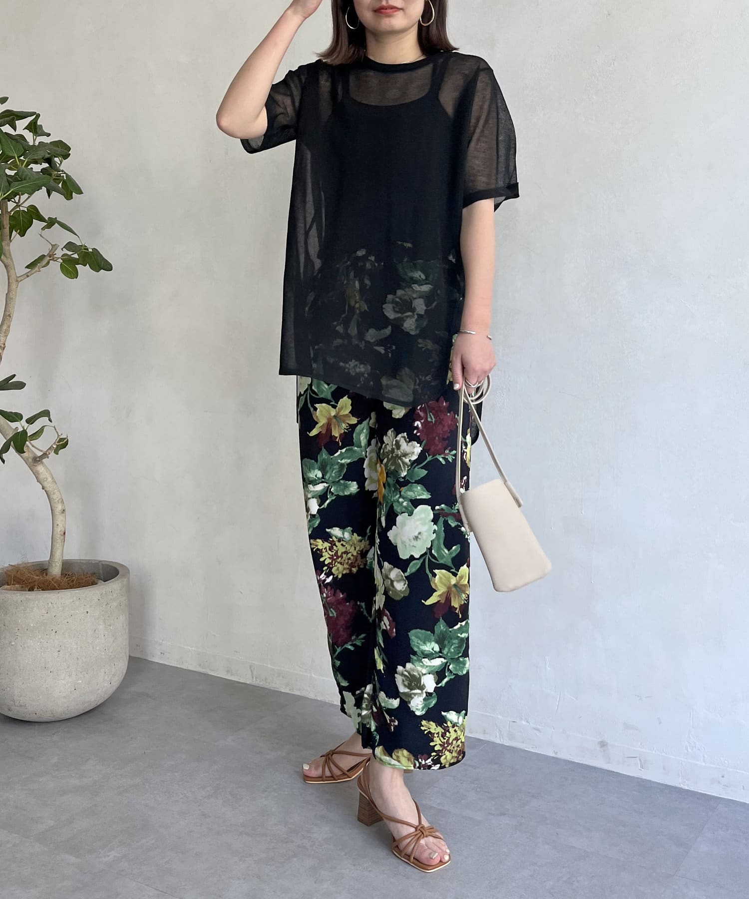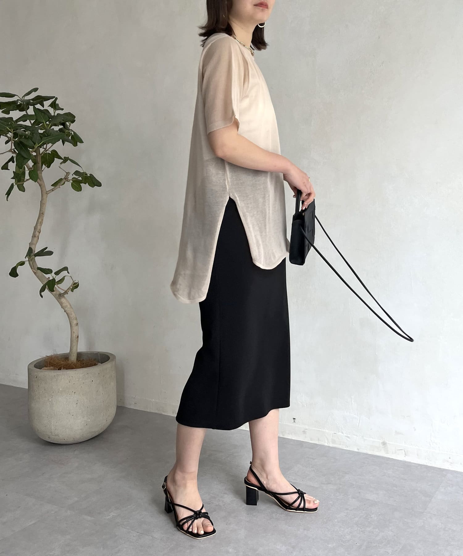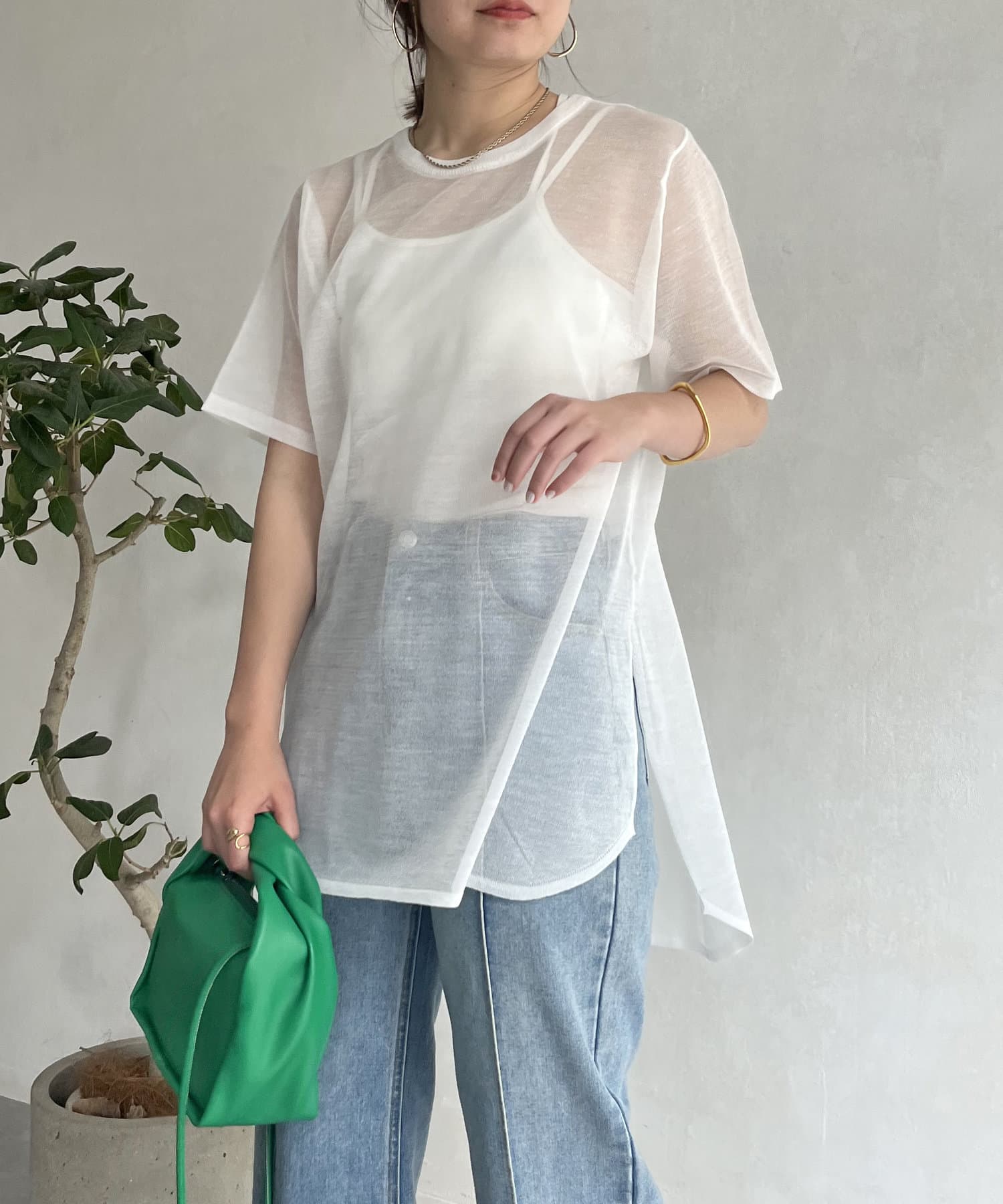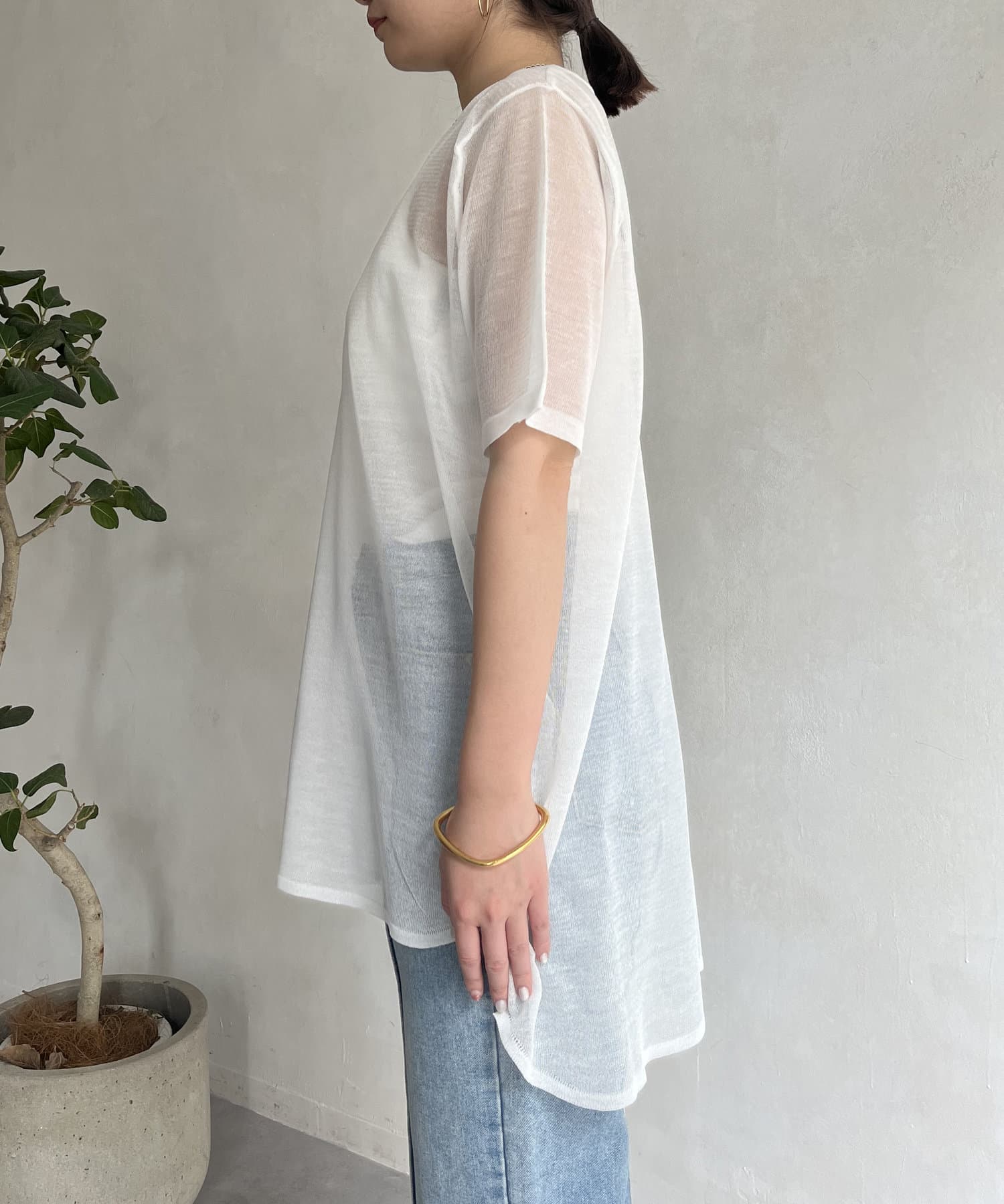●シャリ感のあるリネンタッチ素材が旬な一枚