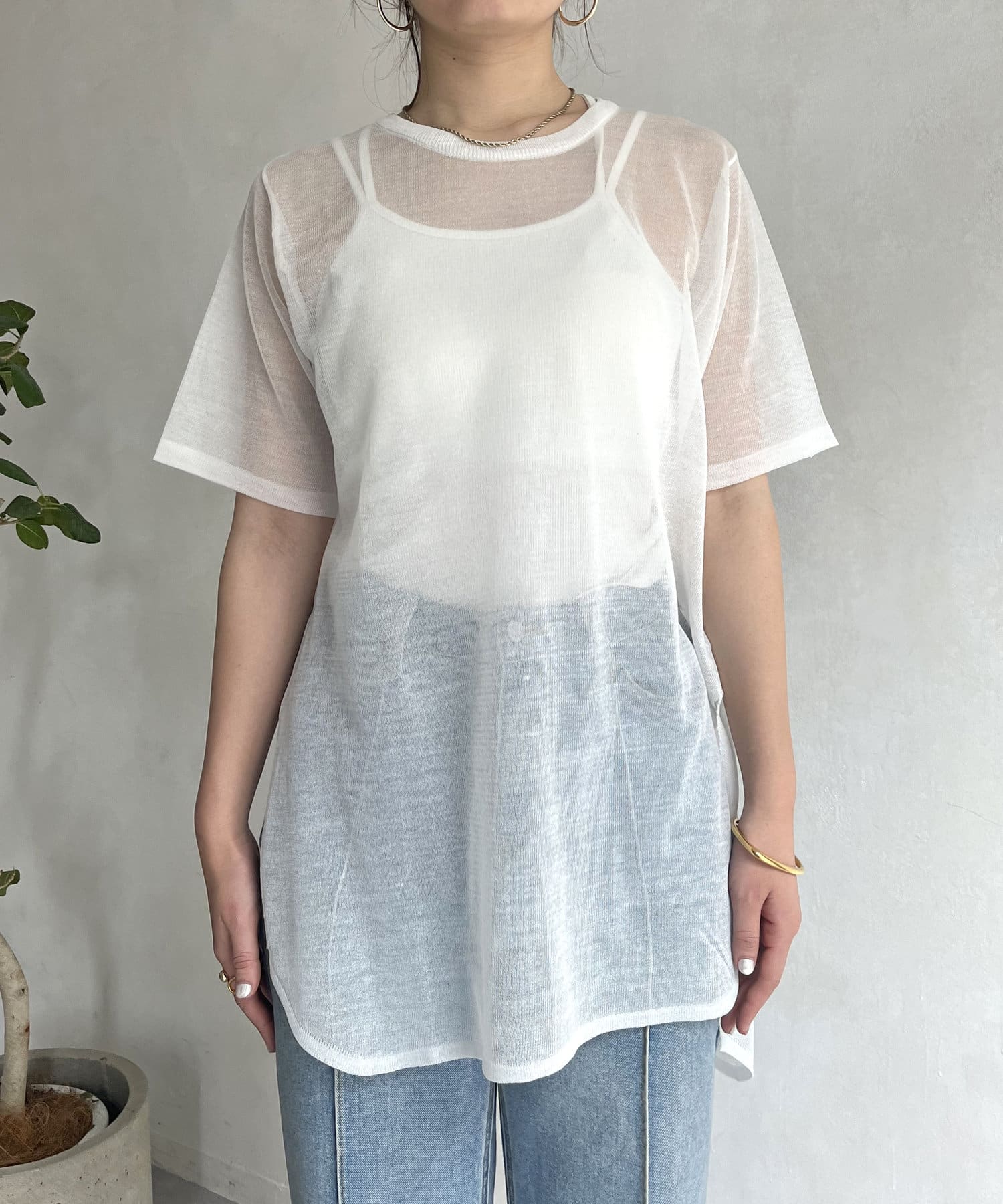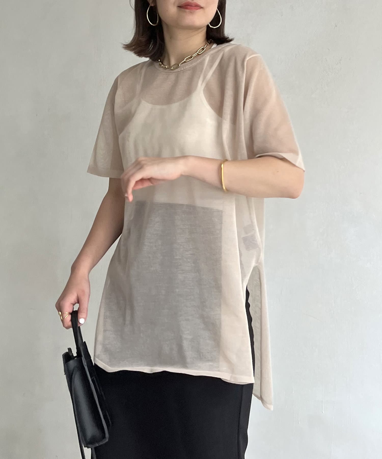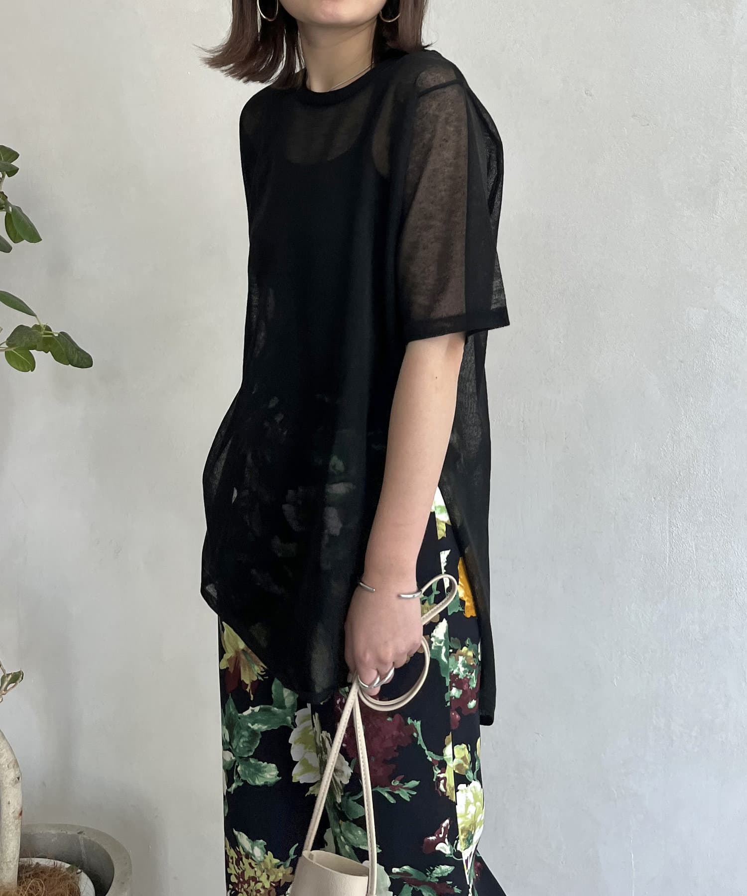●シャリ感のあるリネンタッチ素材が旬な一枚