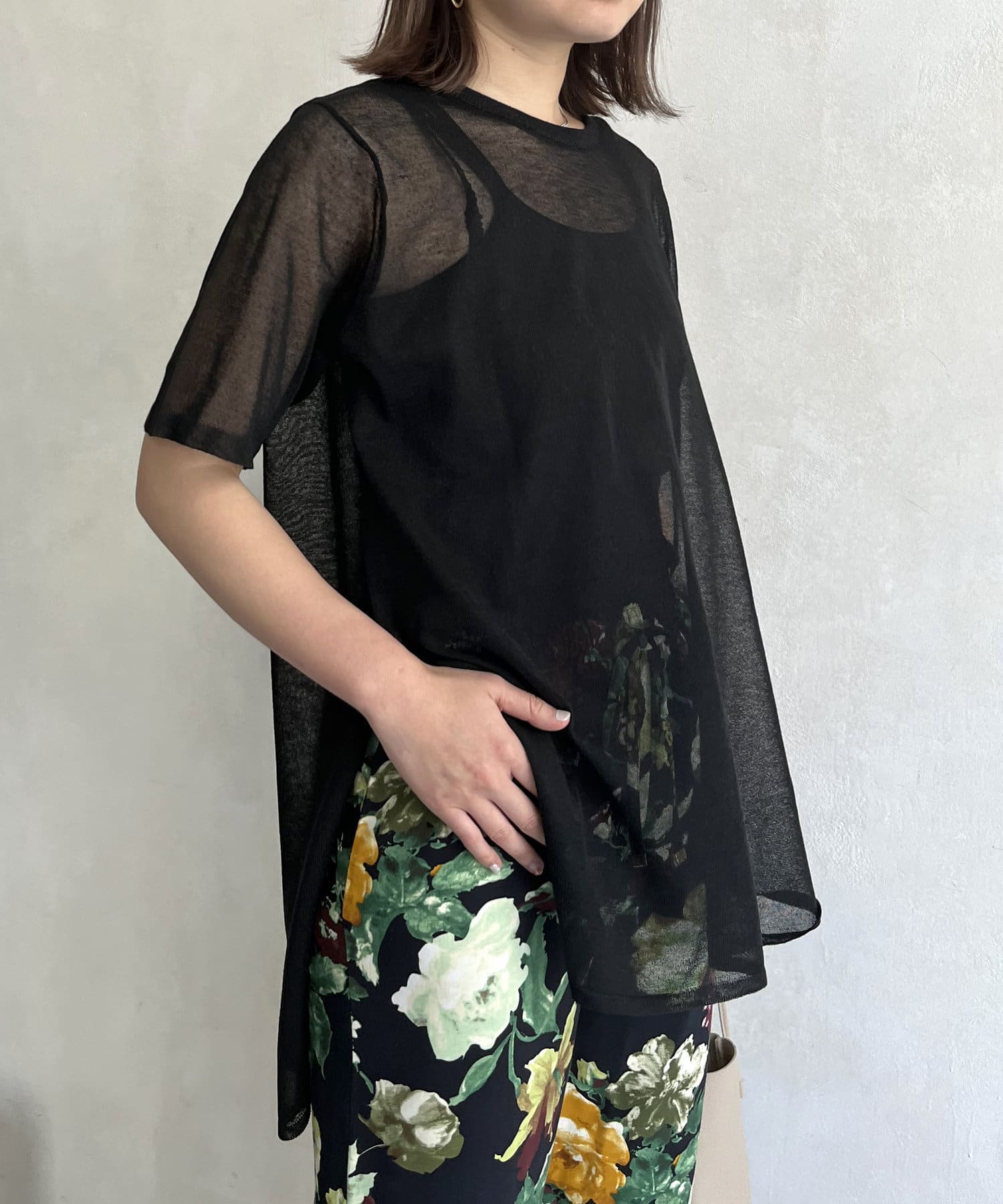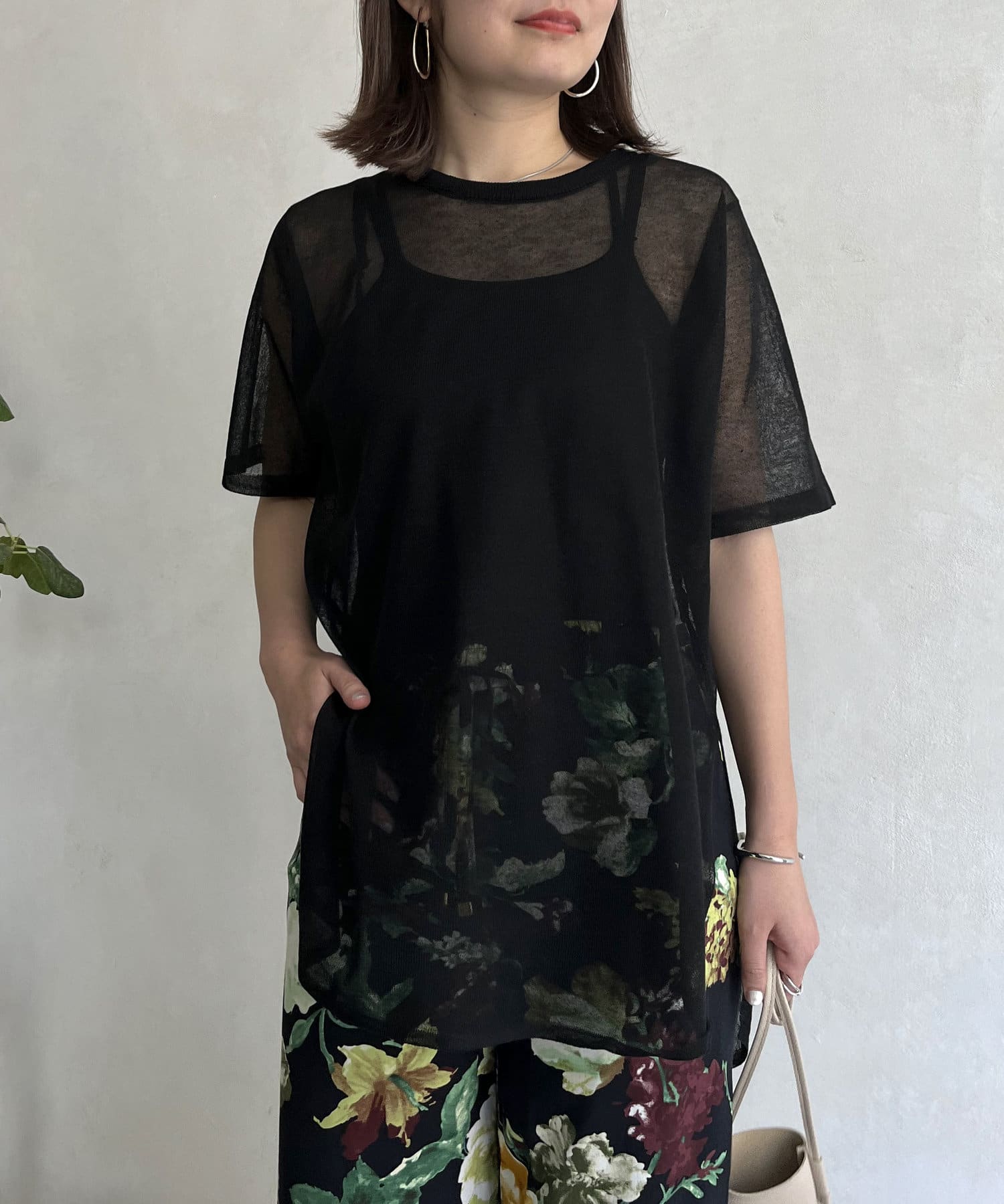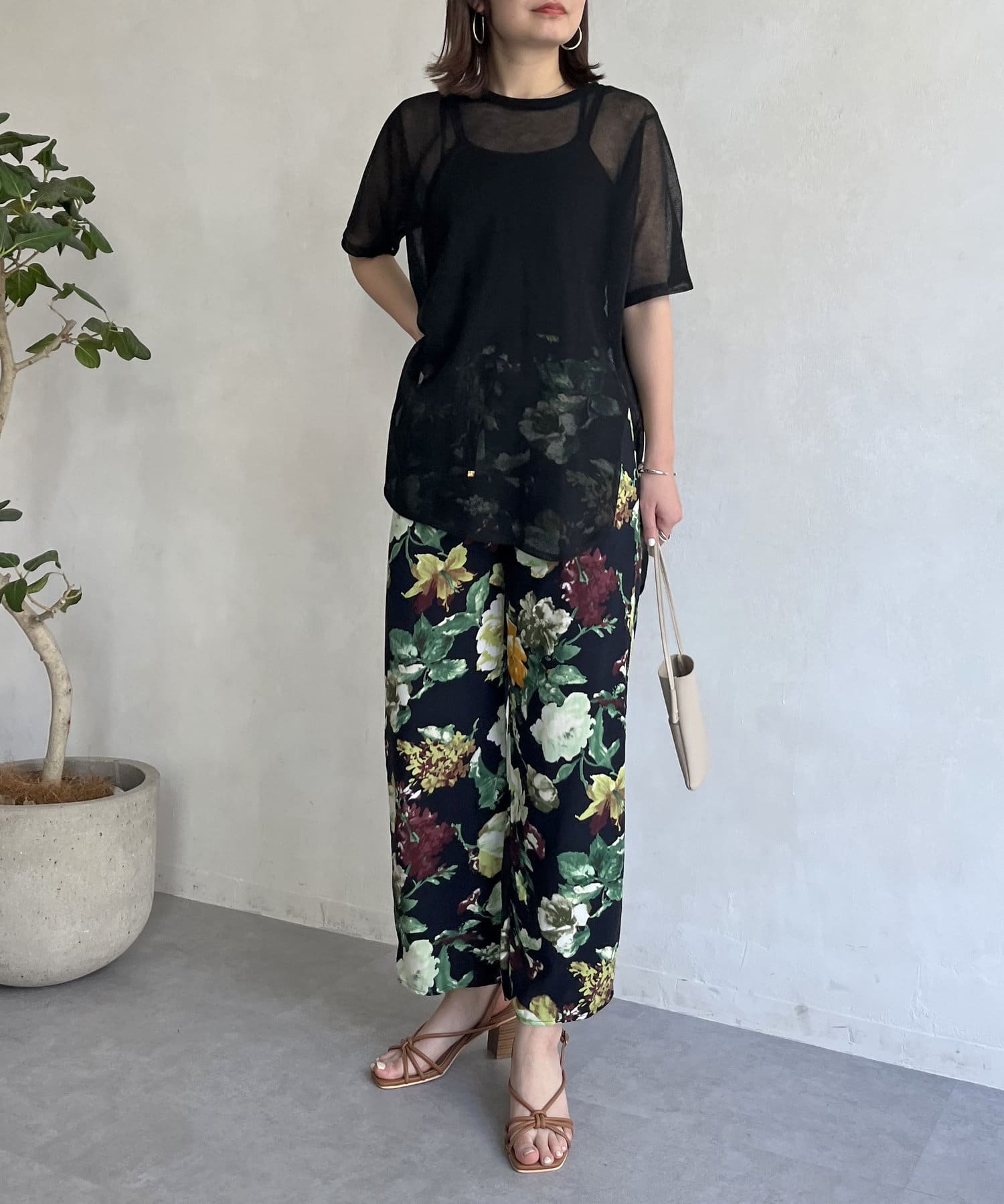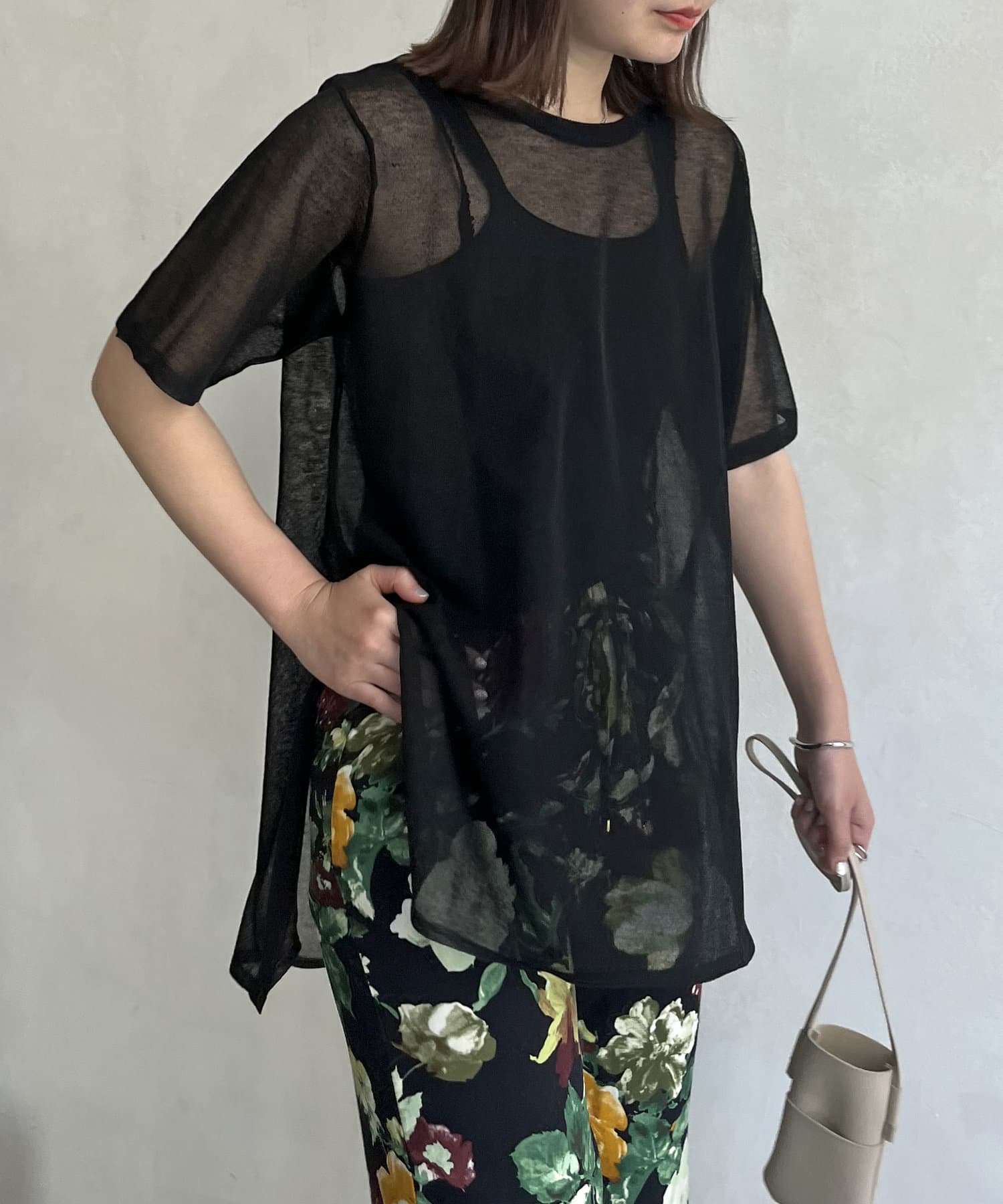 ●シャリ感のあるリネンタッチ素材が旬な一枚