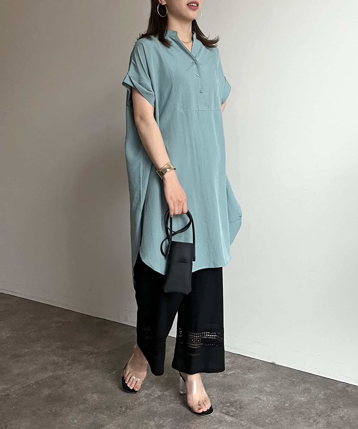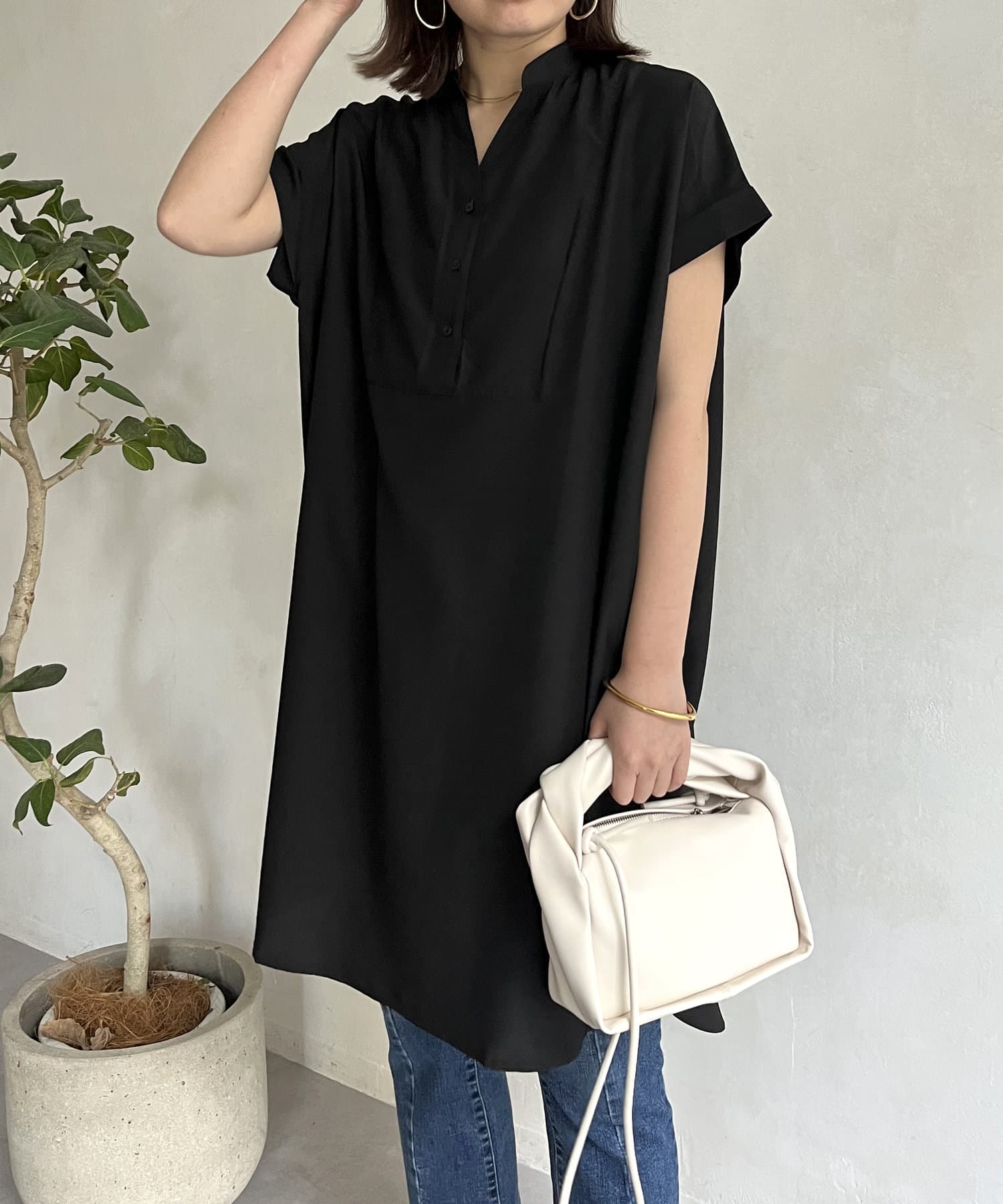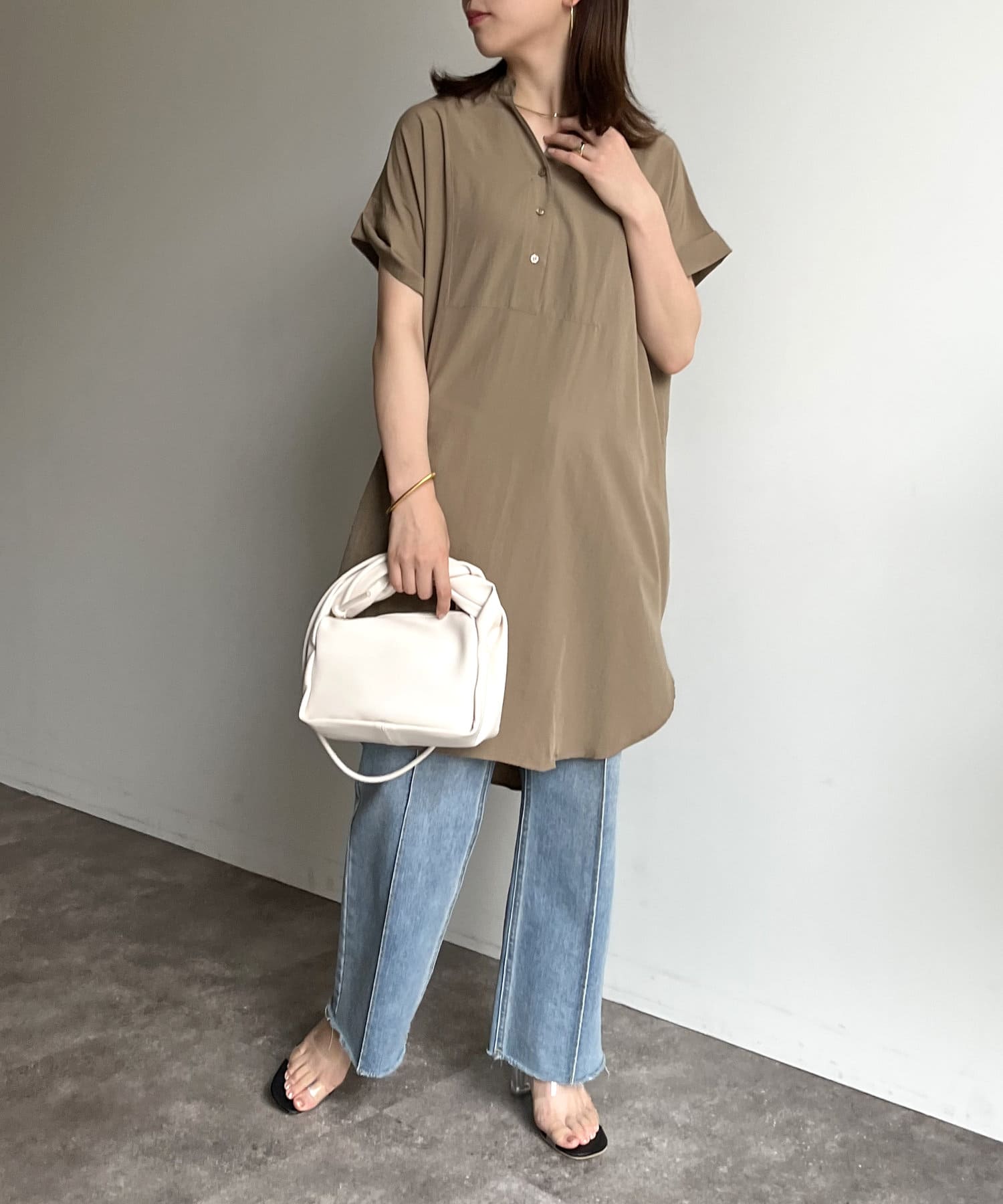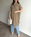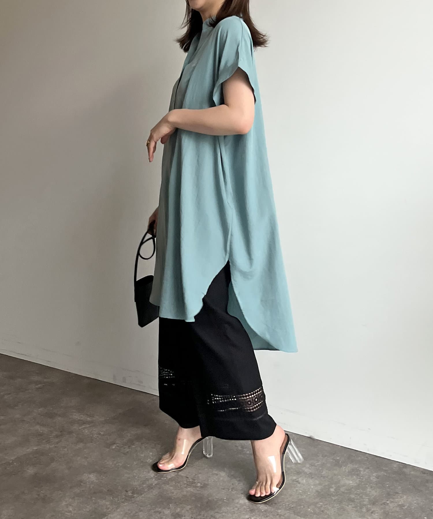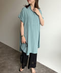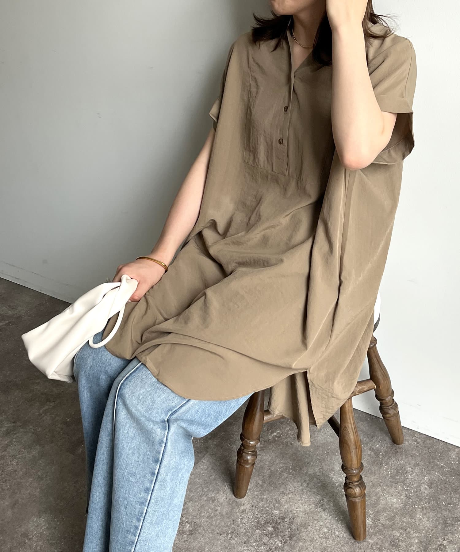 ●体型を拾わないゆったりシルエットのシャツワンピース