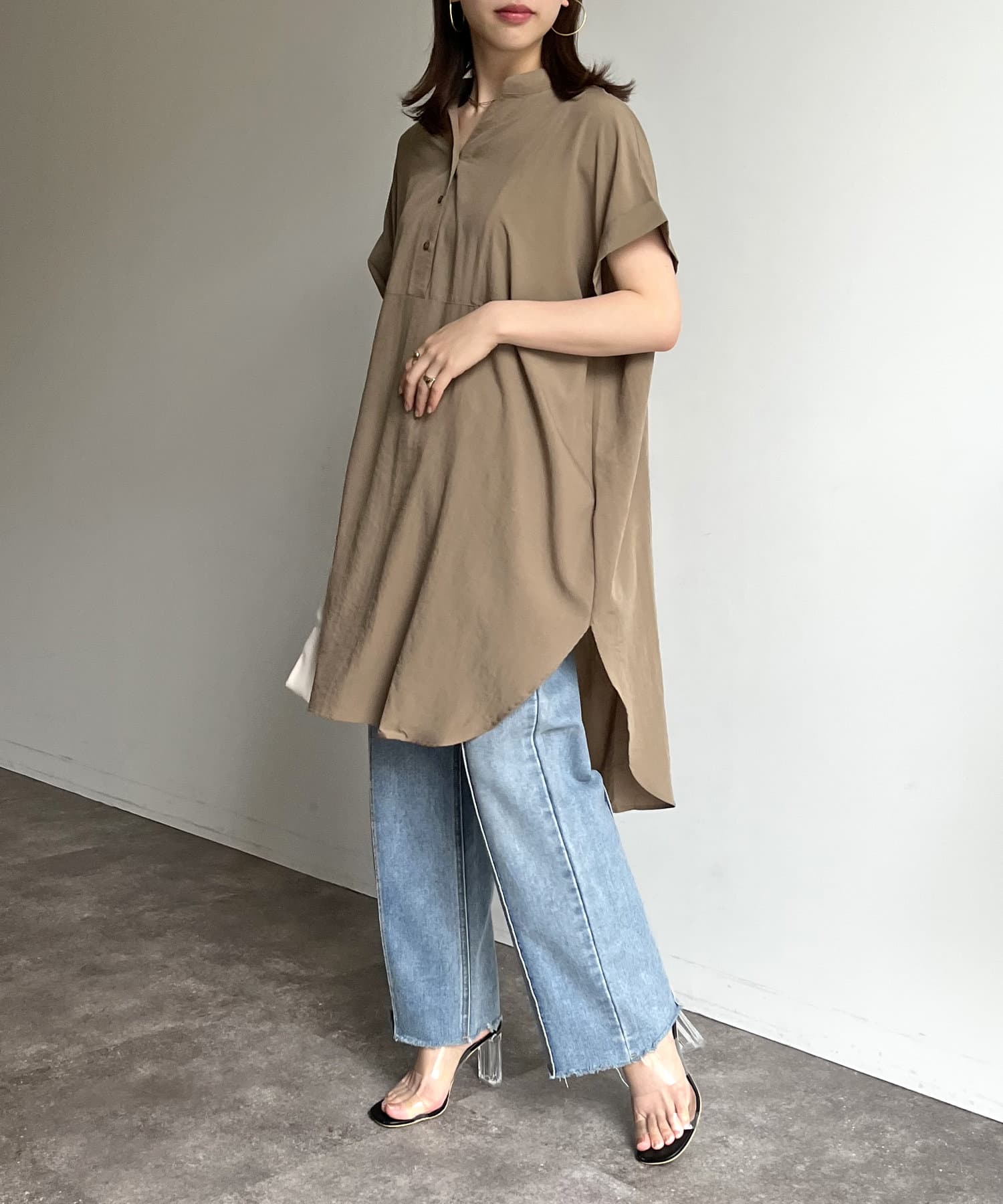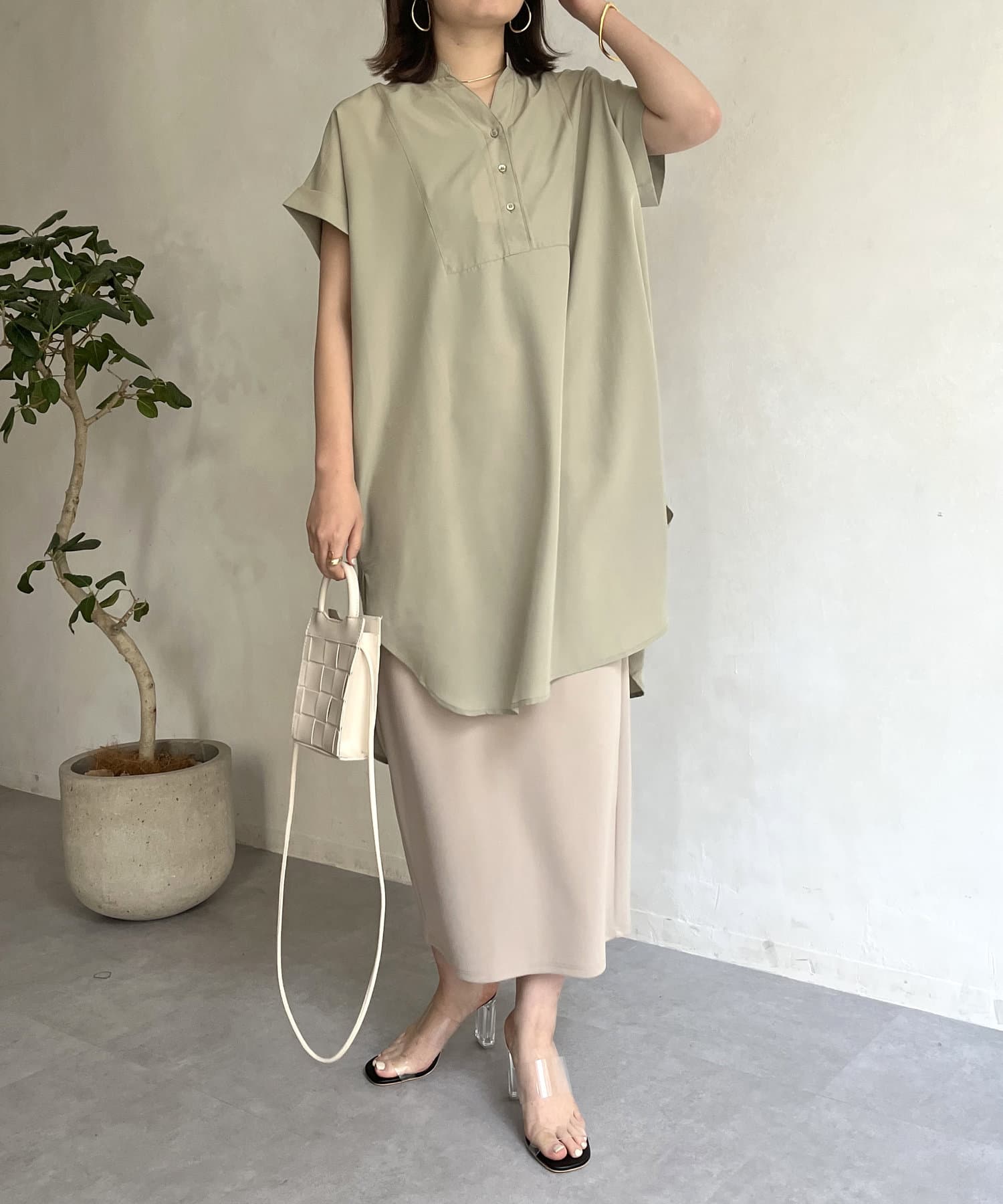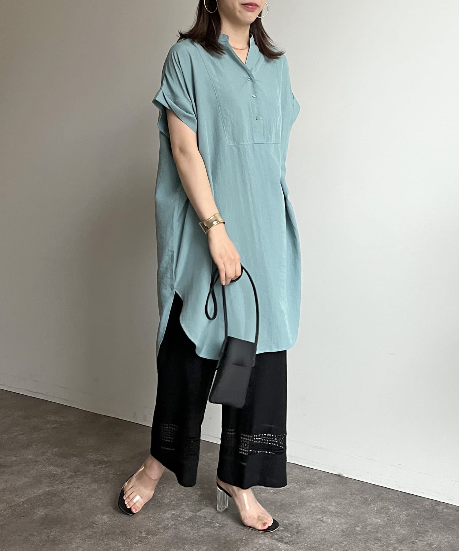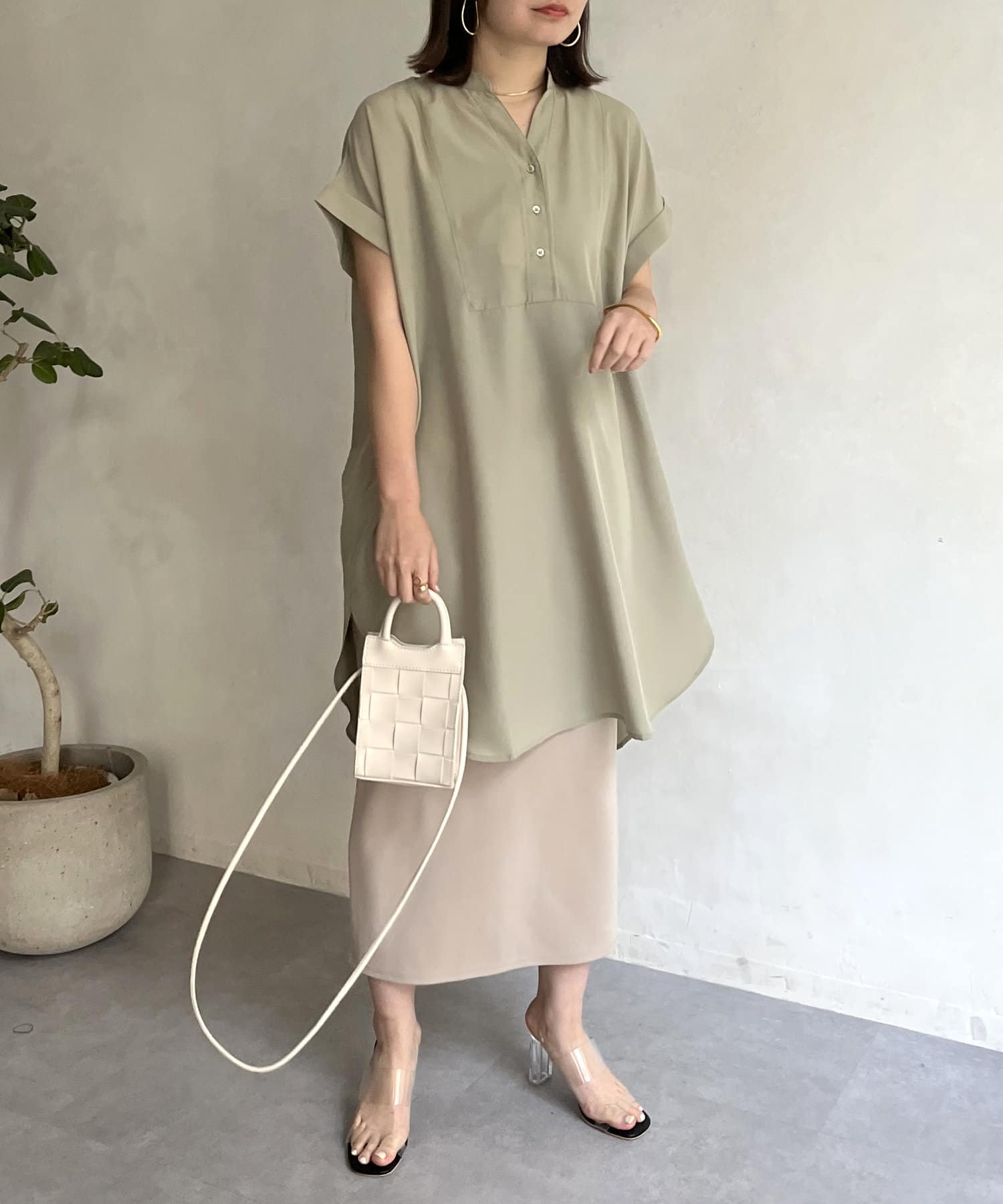 ●体型を拾わないゆったりシルエットのシャツワンピース