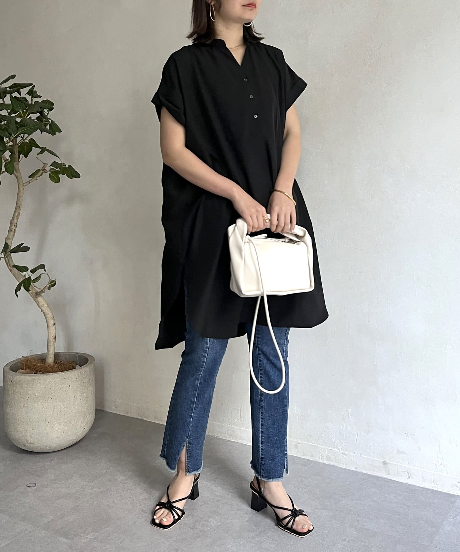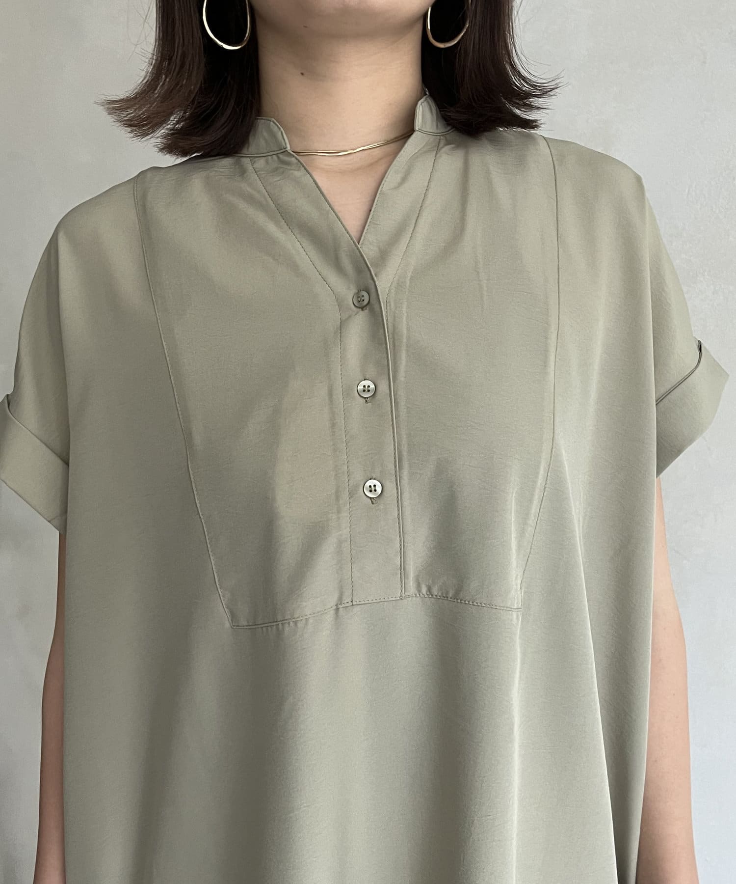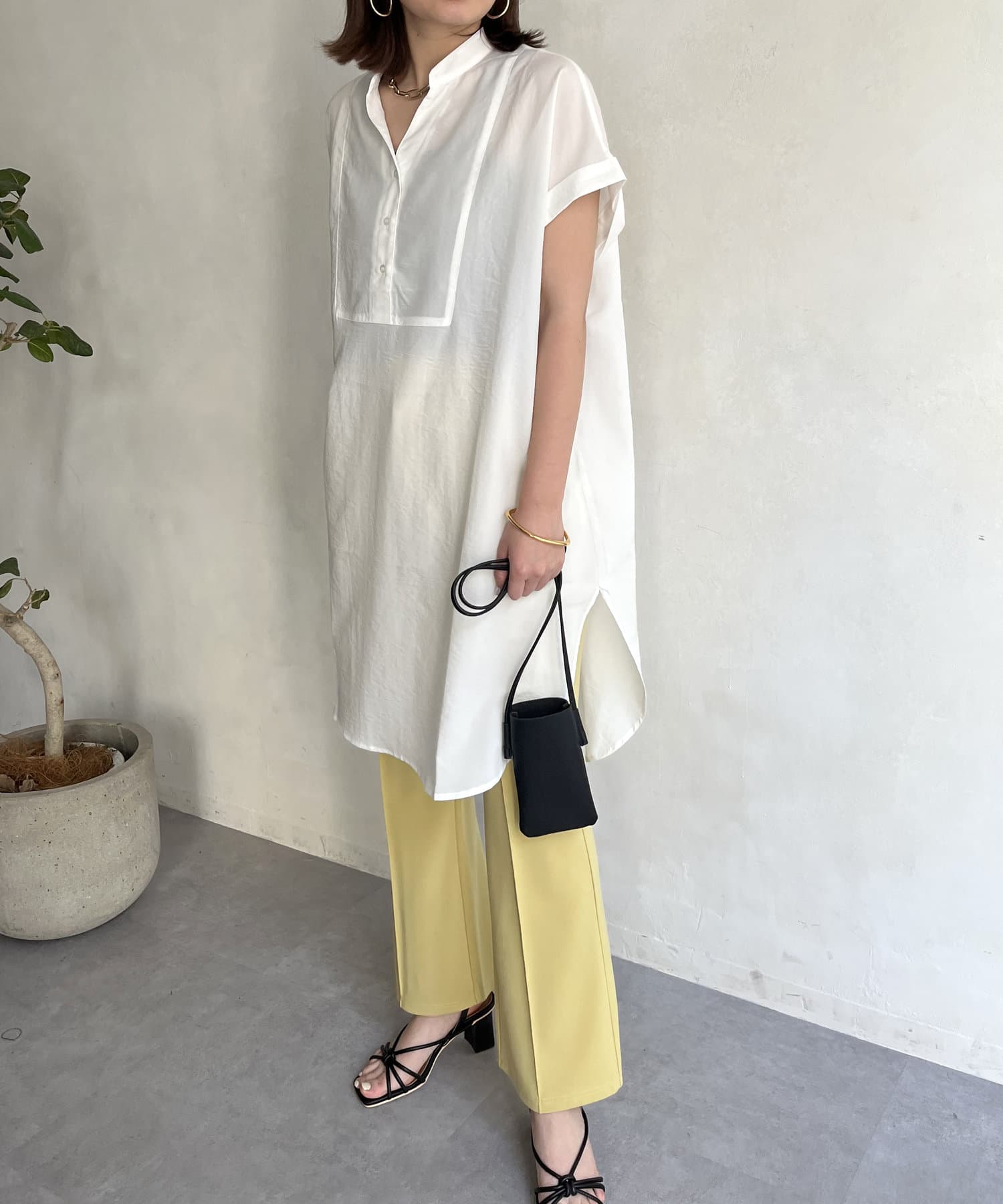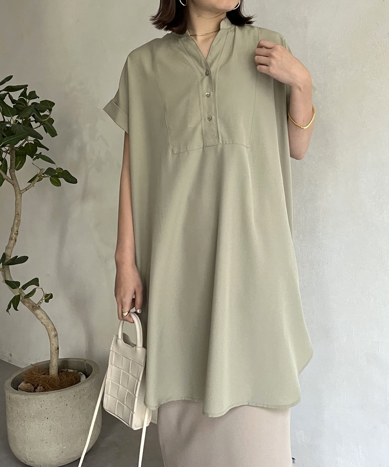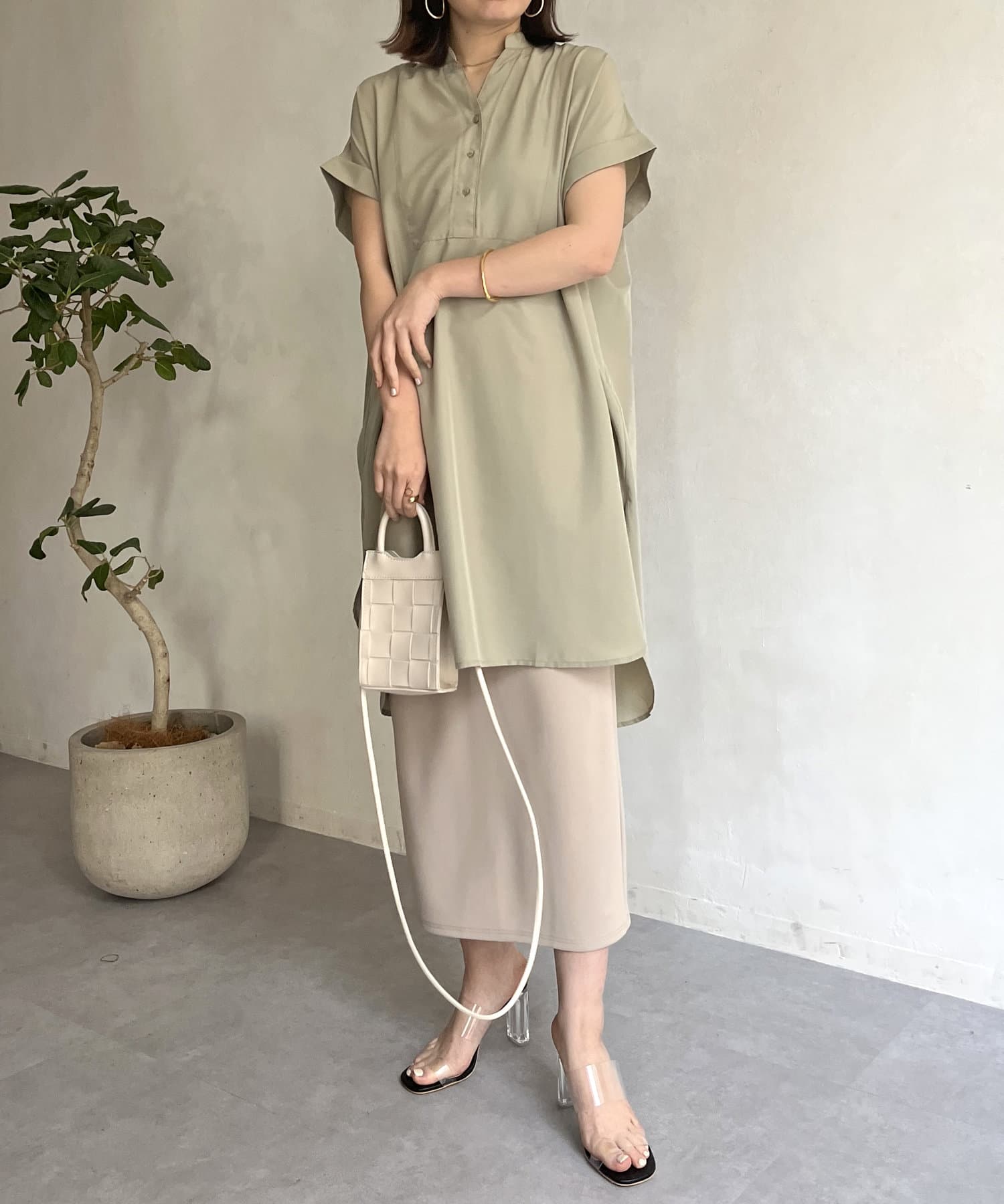 ●体型を拾わないゆったりシルエットのシャツワンピース