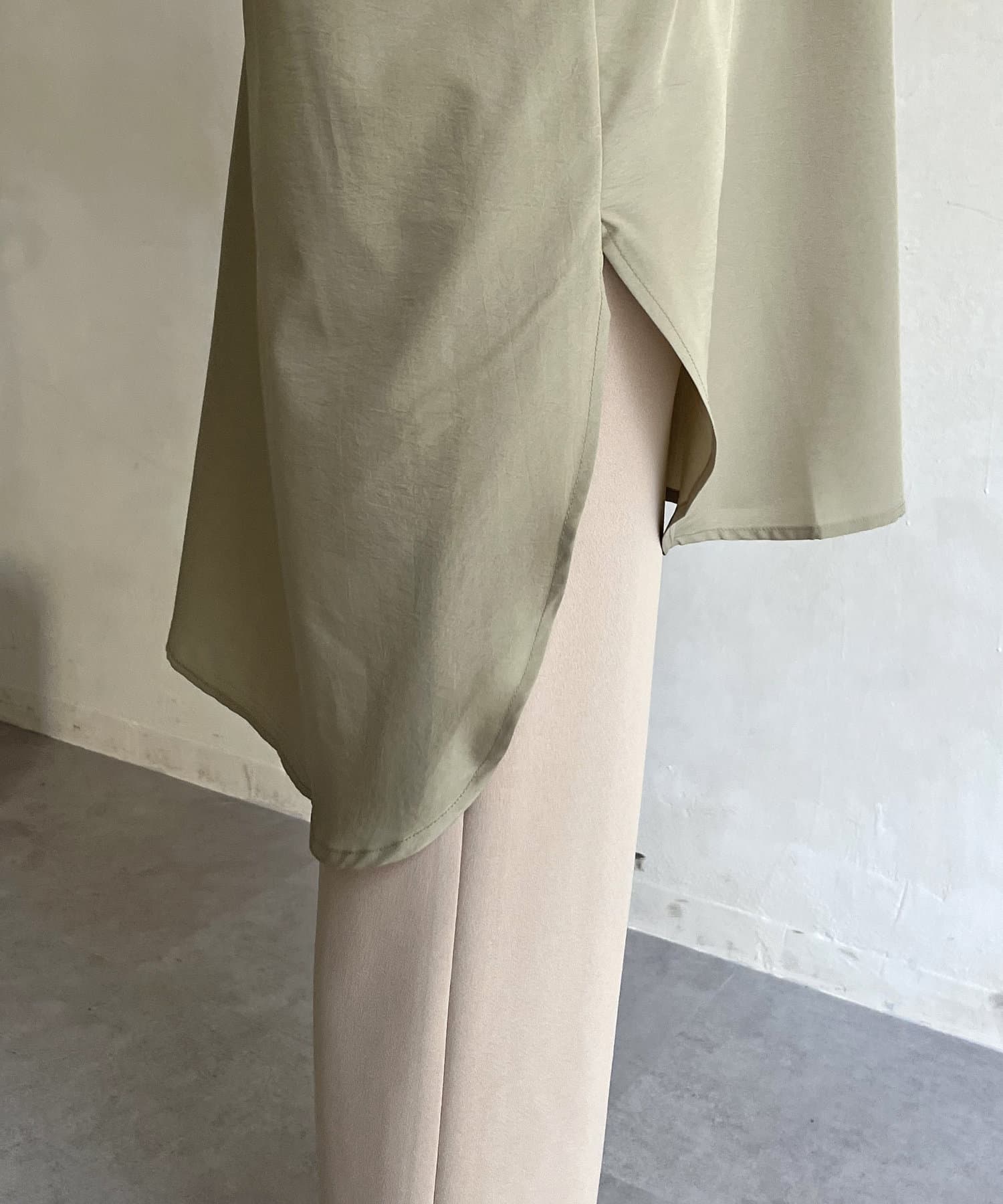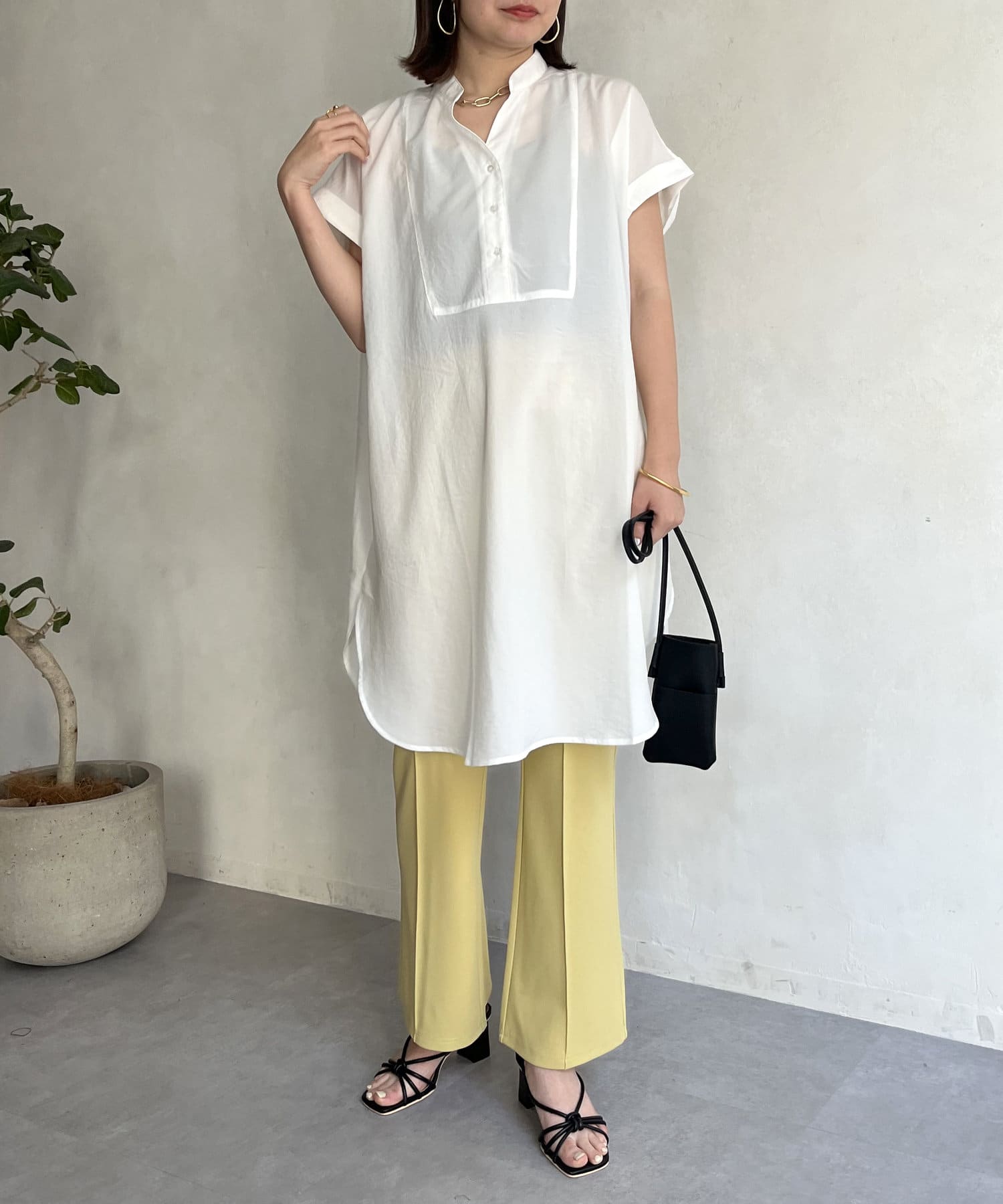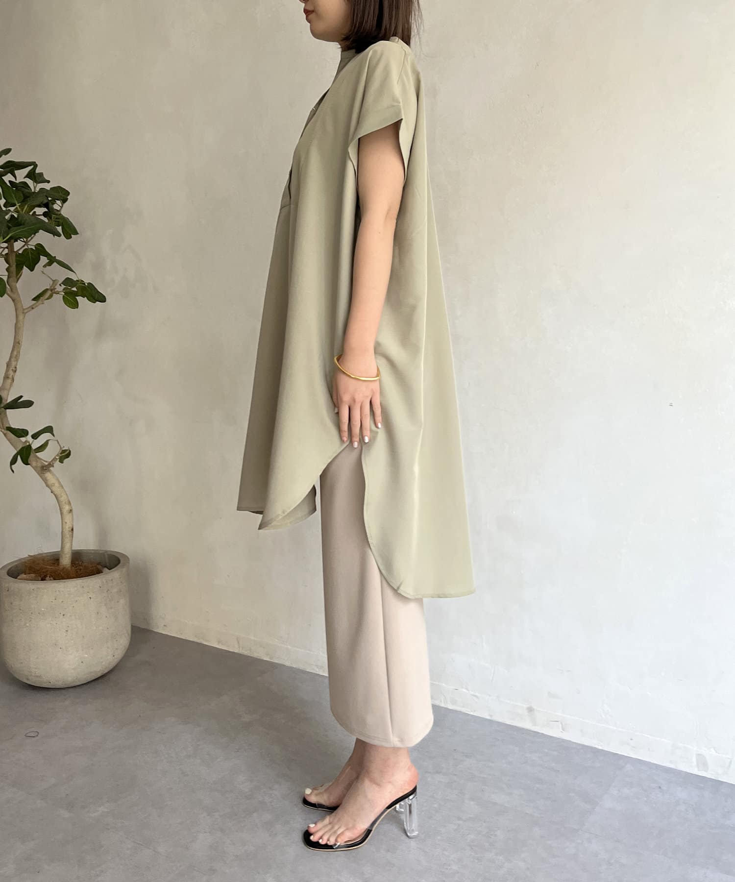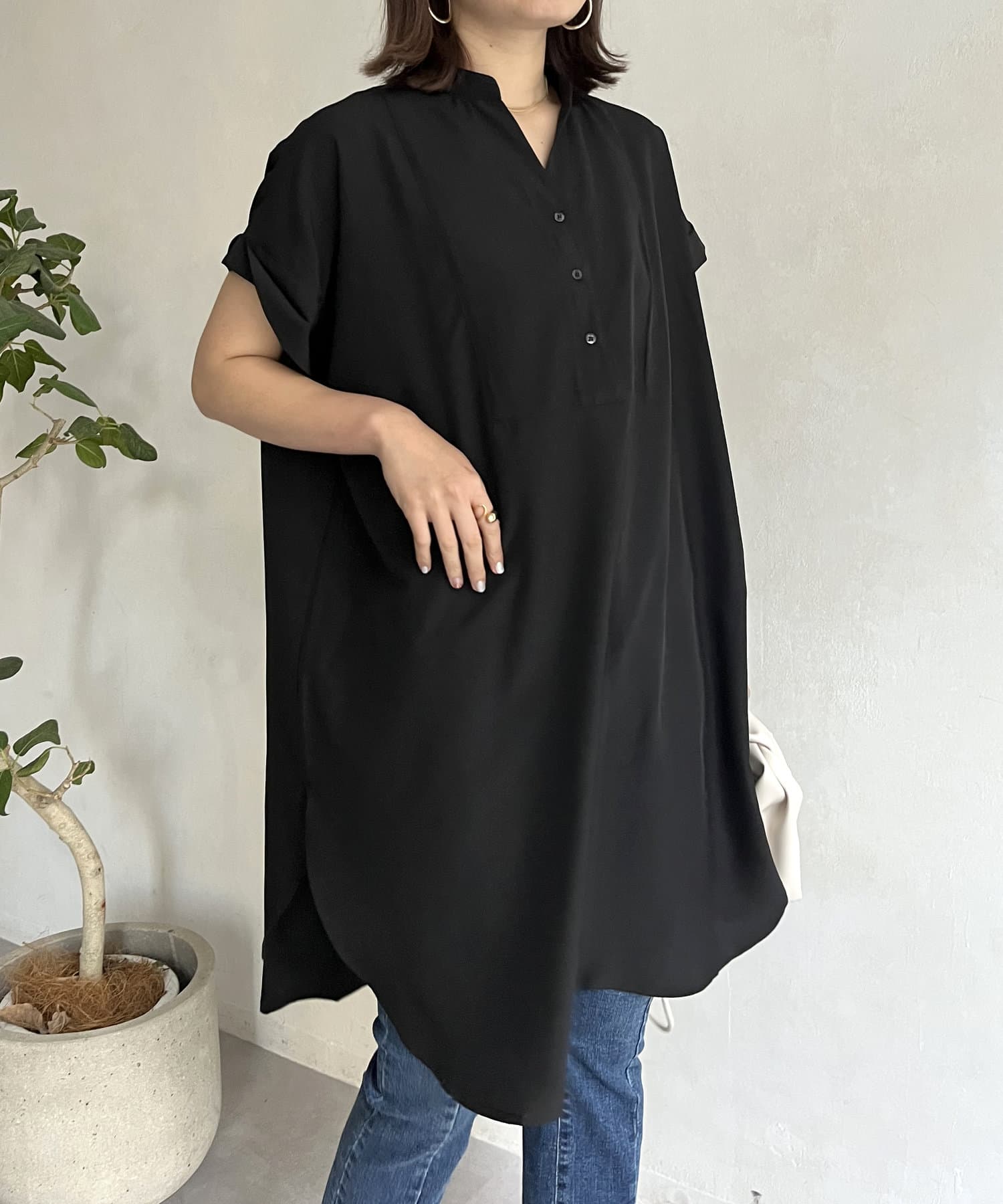 ●体型を拾わないゆったりシルエットのシャツワンピース
