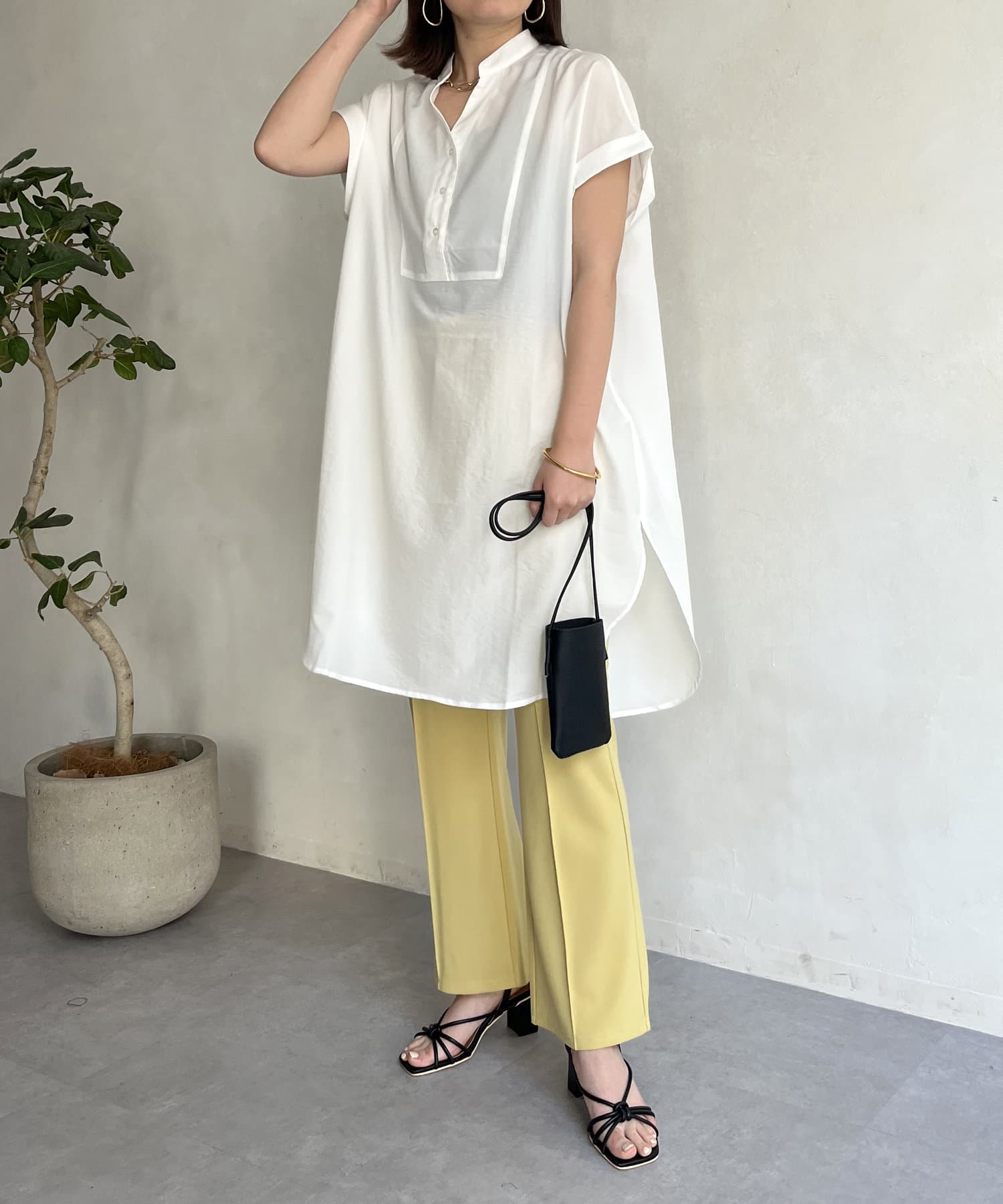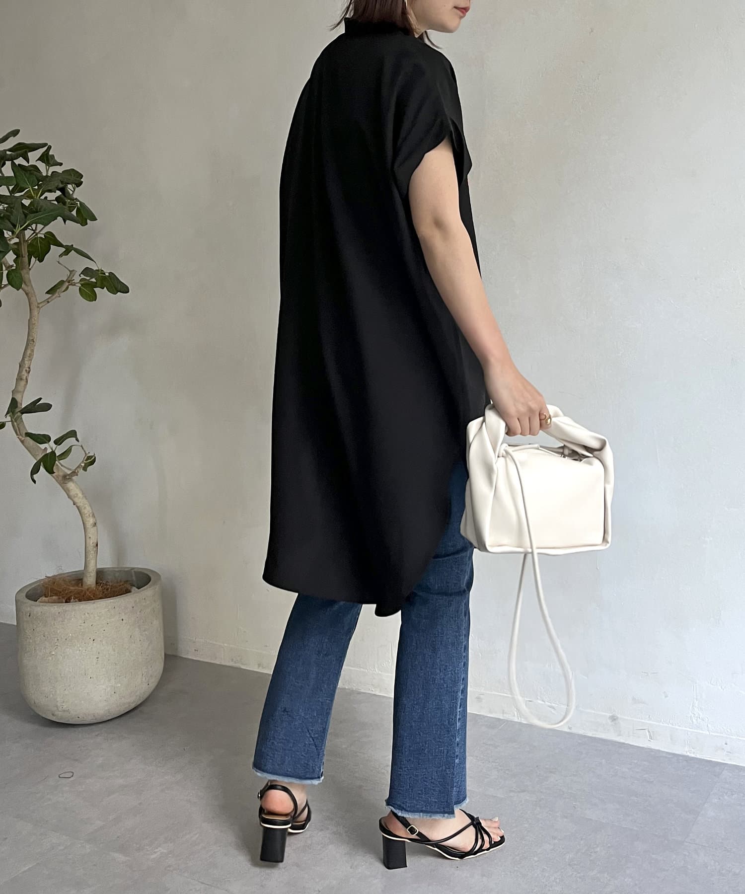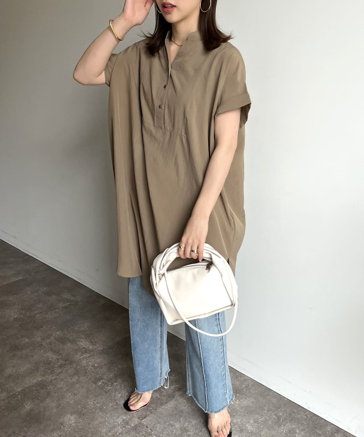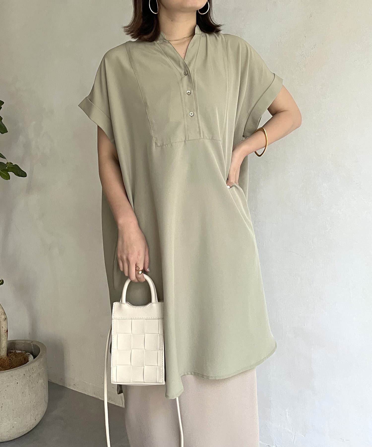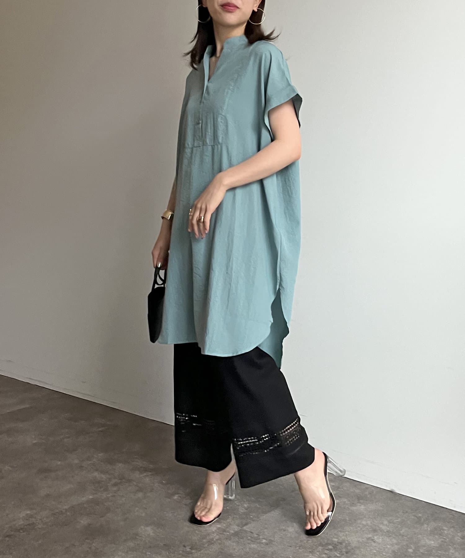 ●体型を拾わないゆったりシルエットのシャツワンピース