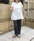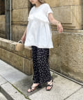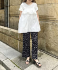 着心地はパジャマの様なのにスッキリしたシルエットと柄で細見え&綺麗見えして大活躍しそうです。