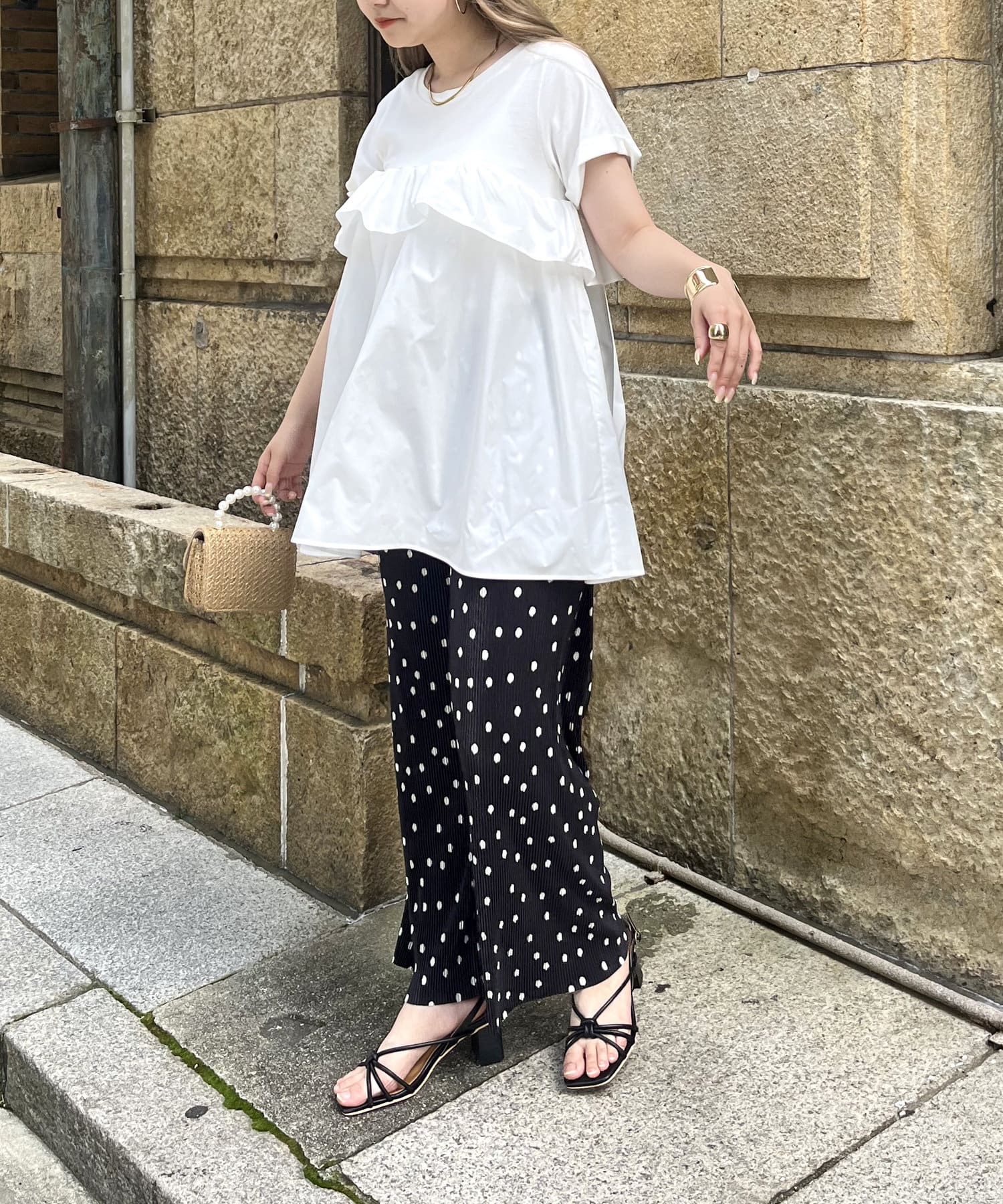 購入場所:パルクローゼットウエストゴムで軽くてシワにもならず、スタッフコメントにありましたが旅行で活躍しそうです。トップスはモノトーンor茶系になりがちですが合いそうなものを模索中です。