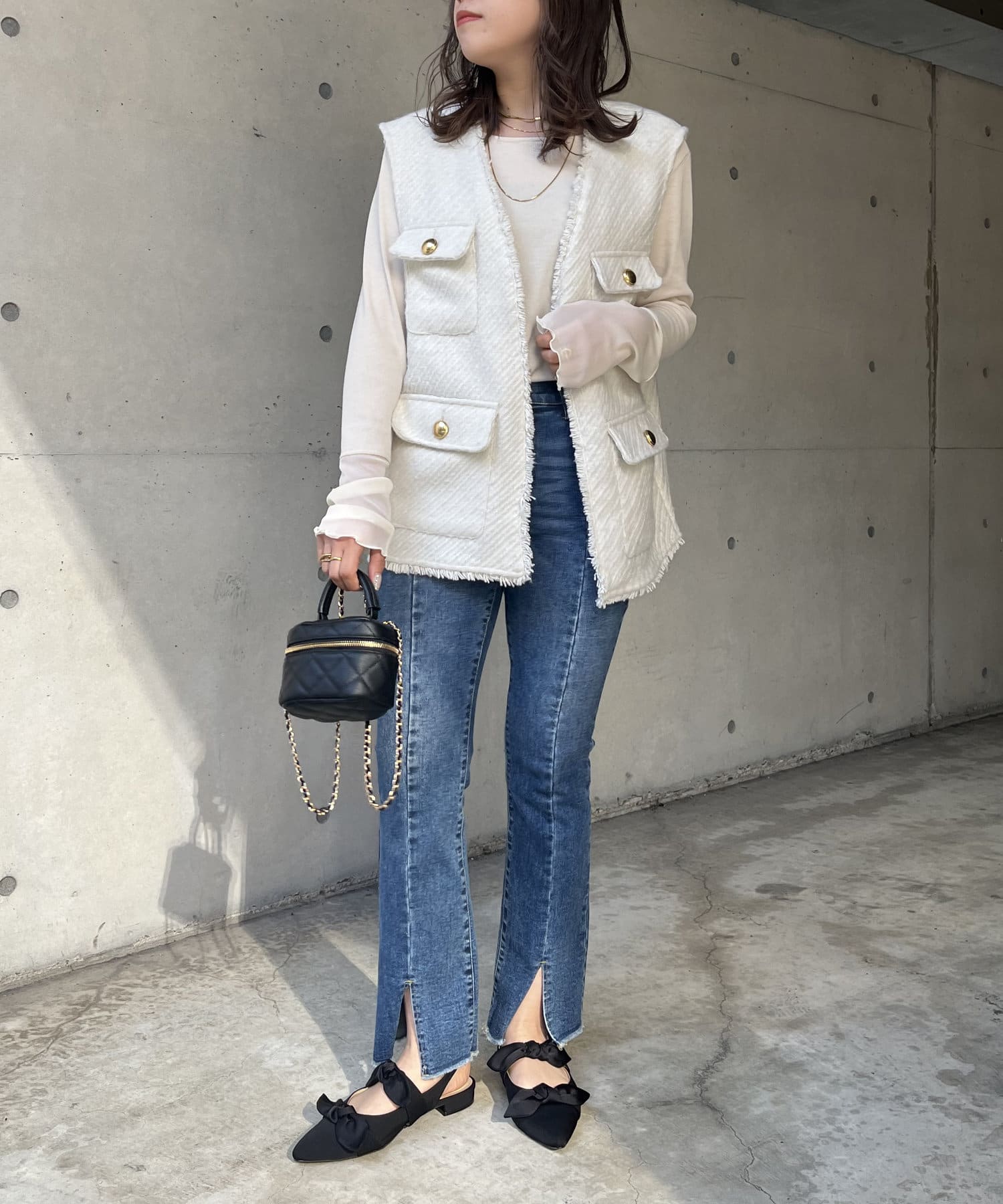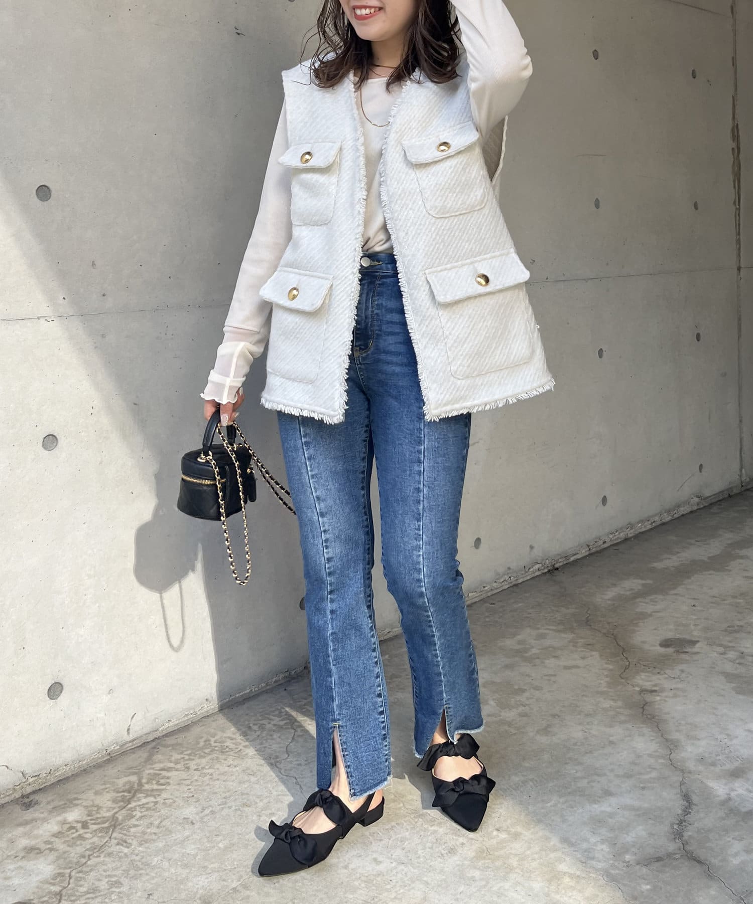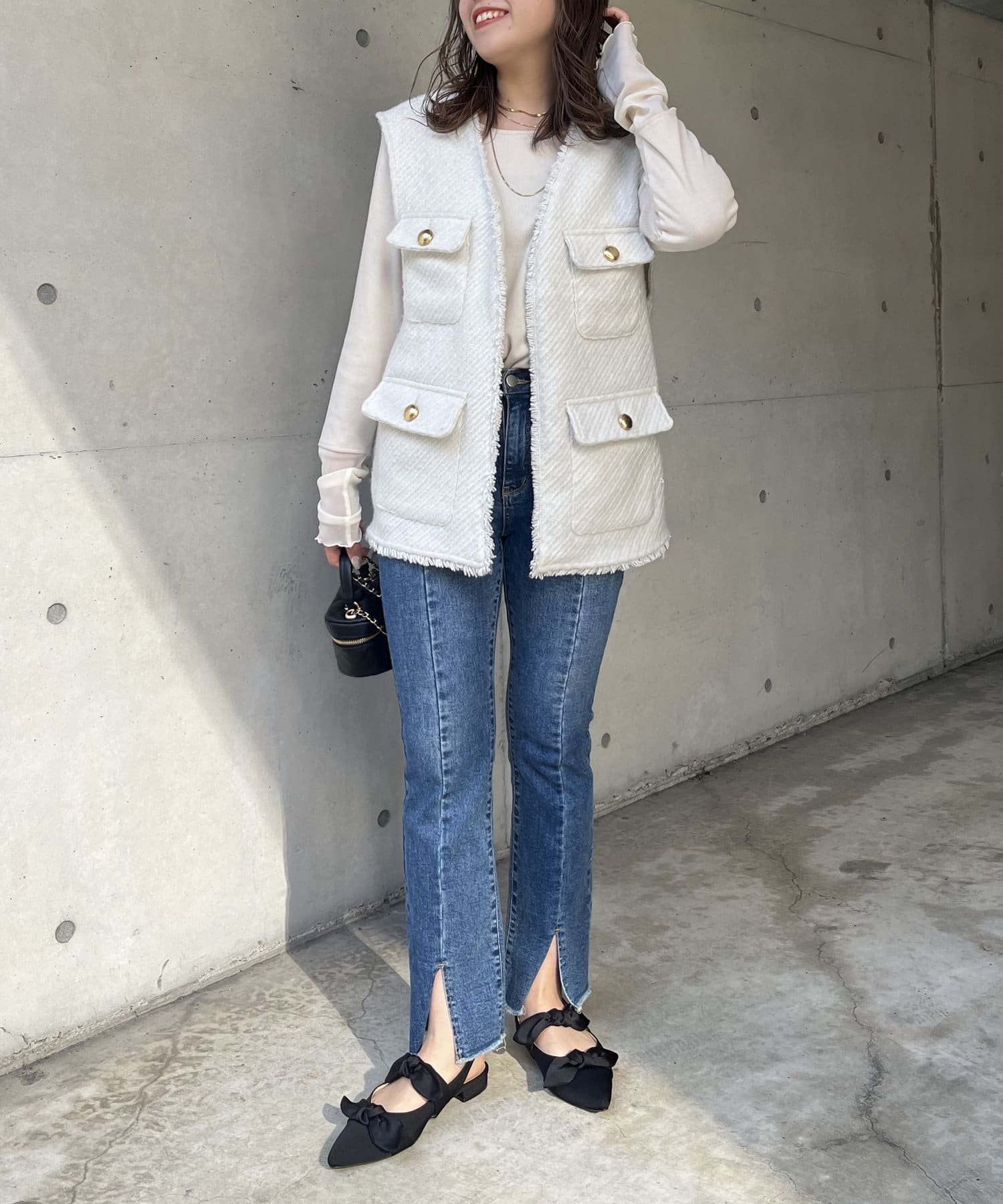 ●裾のフリンジとスリットが足元に抜け感をプラス◎