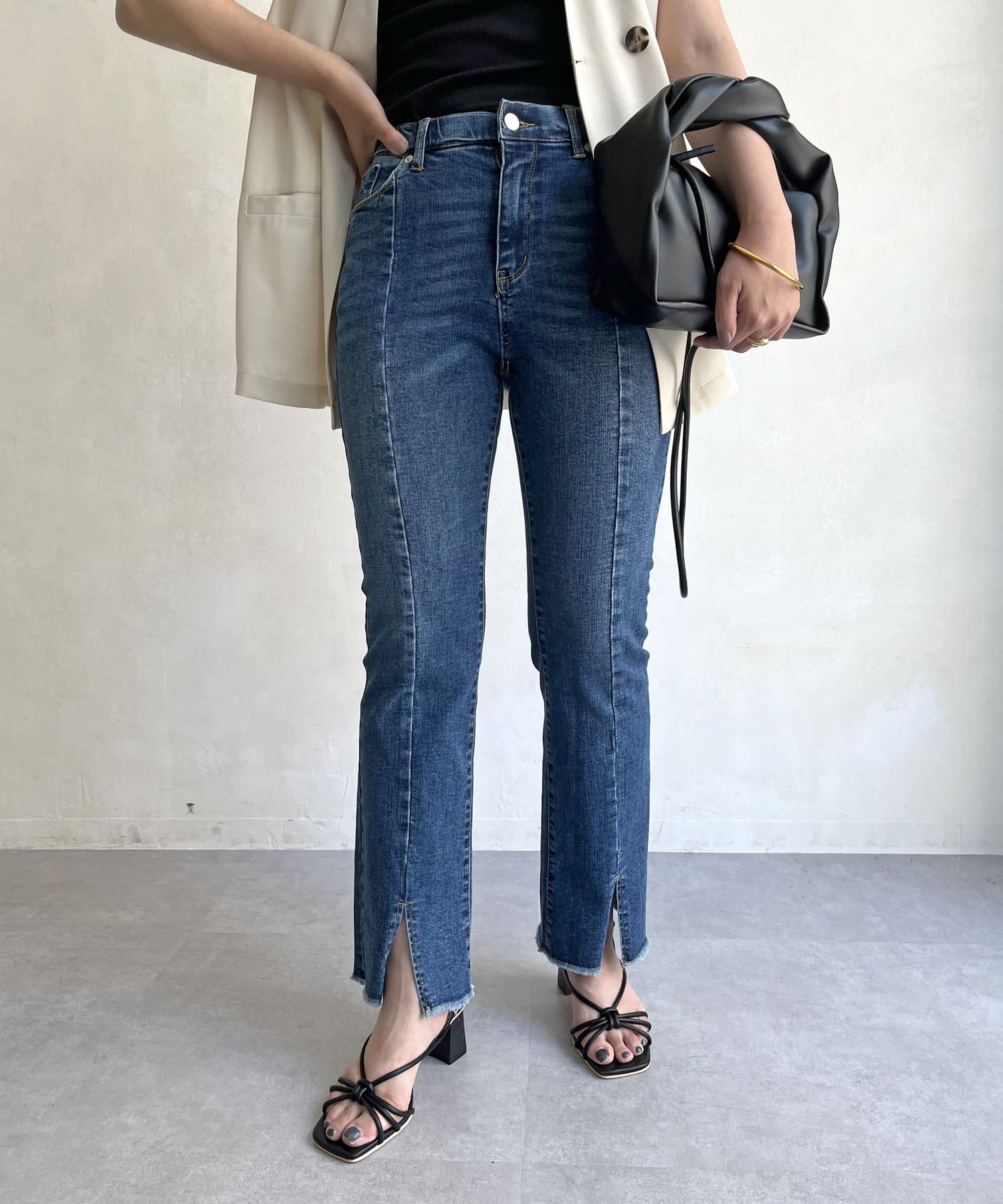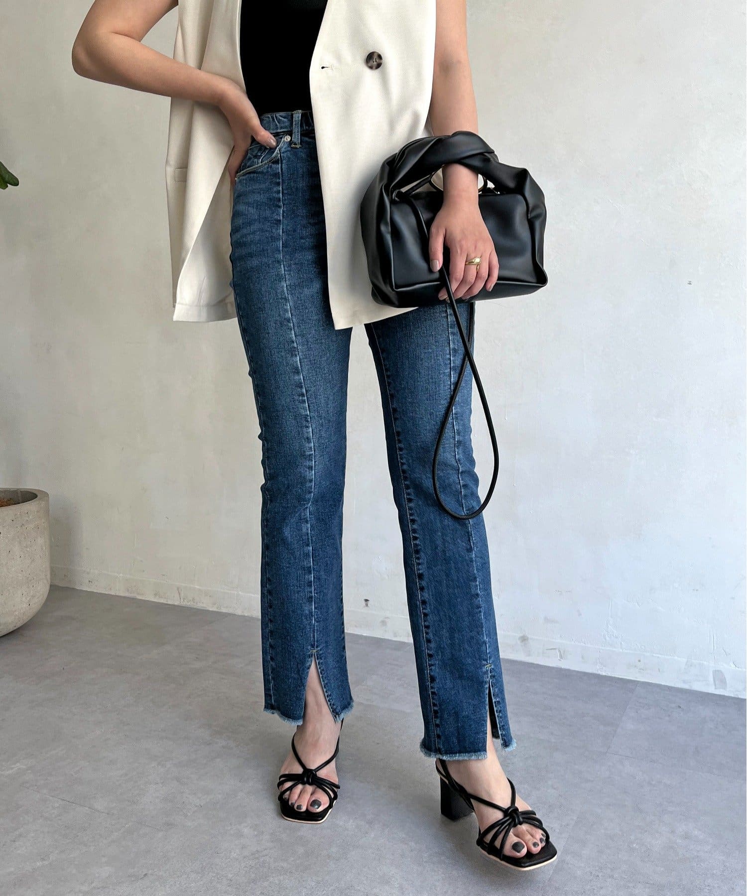 フロントスリットデニムパンツ