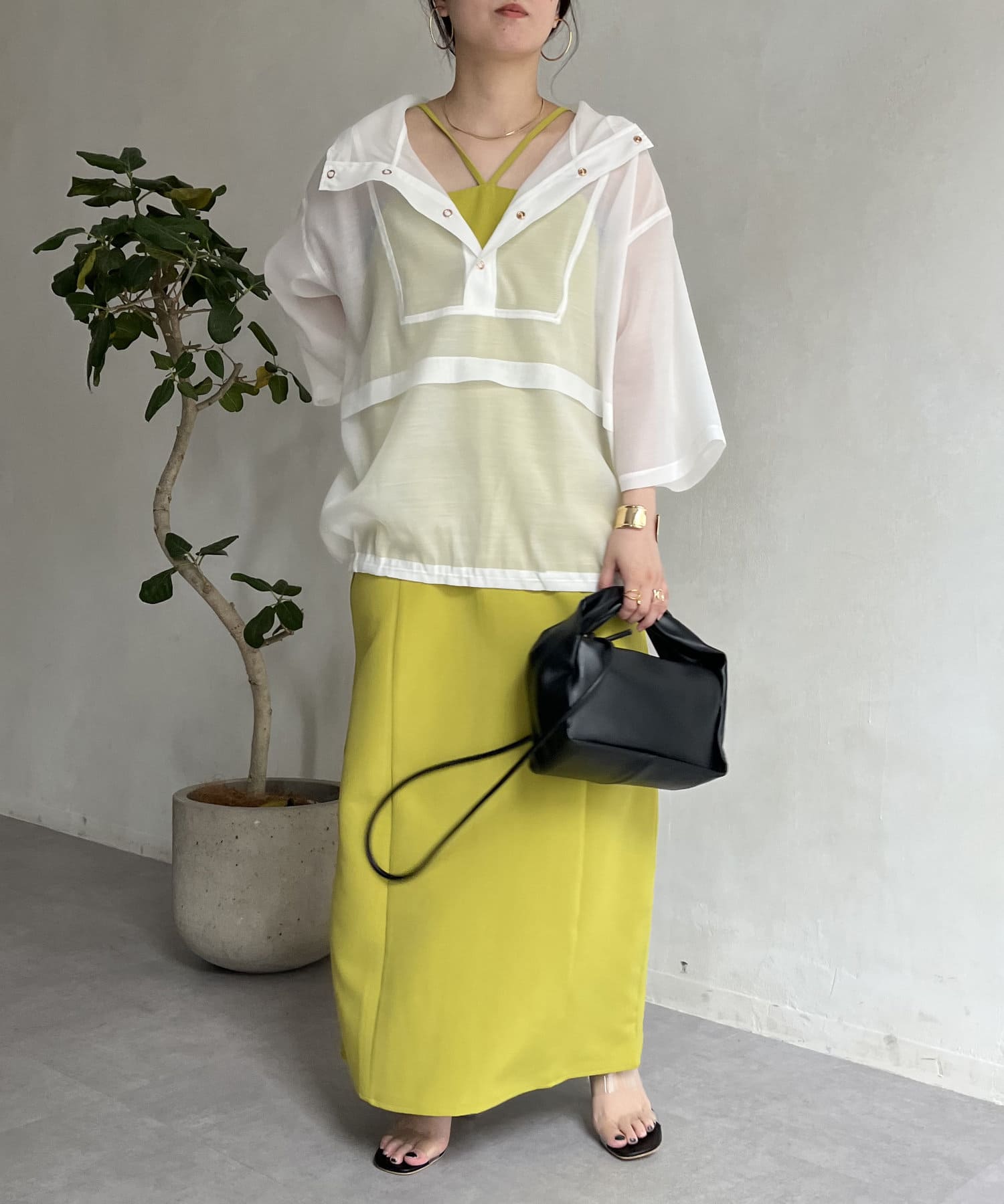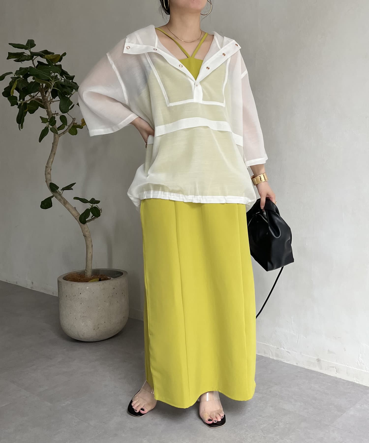 ●カラーボトムと合わすと、より旬なスタイリングに