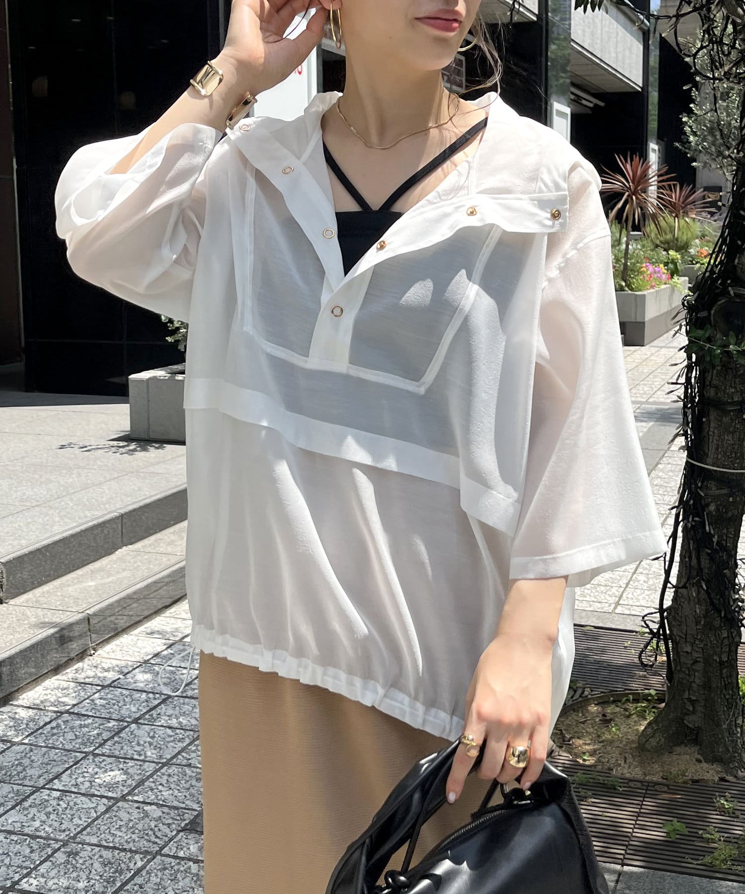 リップルオーガンジーアノラックパーカー