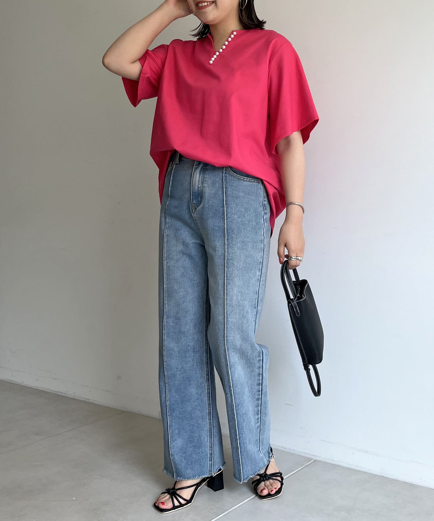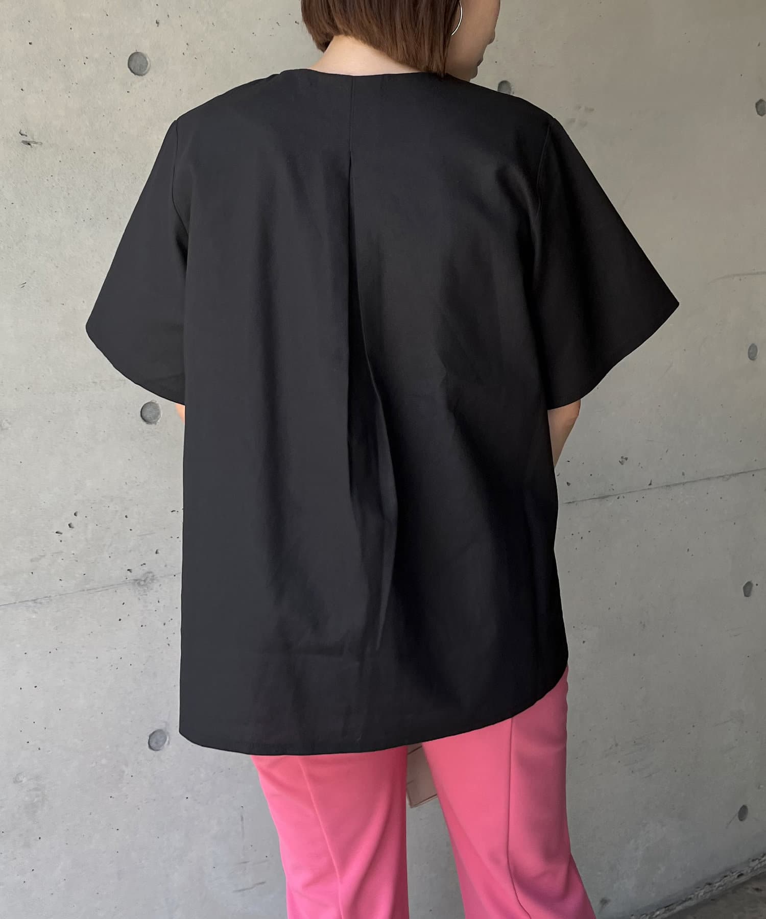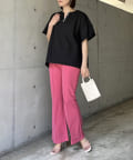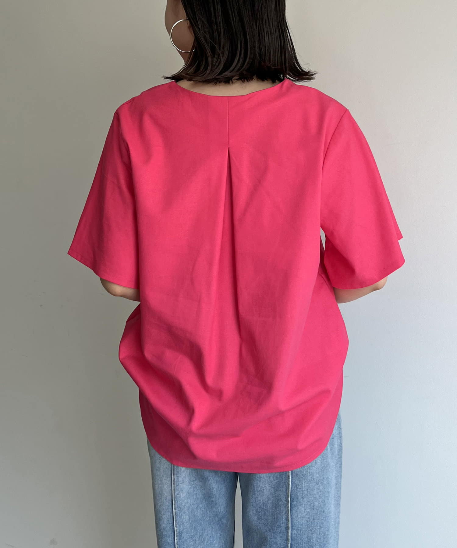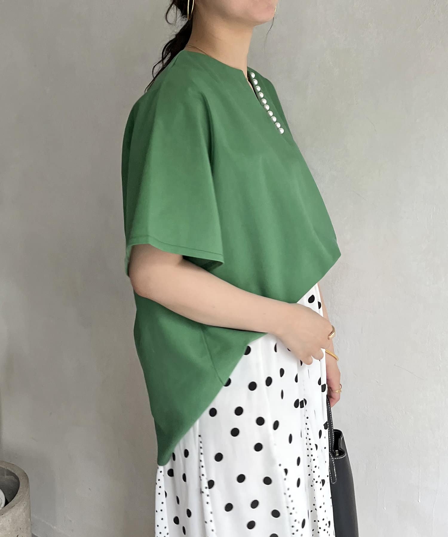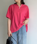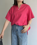 ●チラッと開いたキーネックが首元にほど良い抜け感を与えます