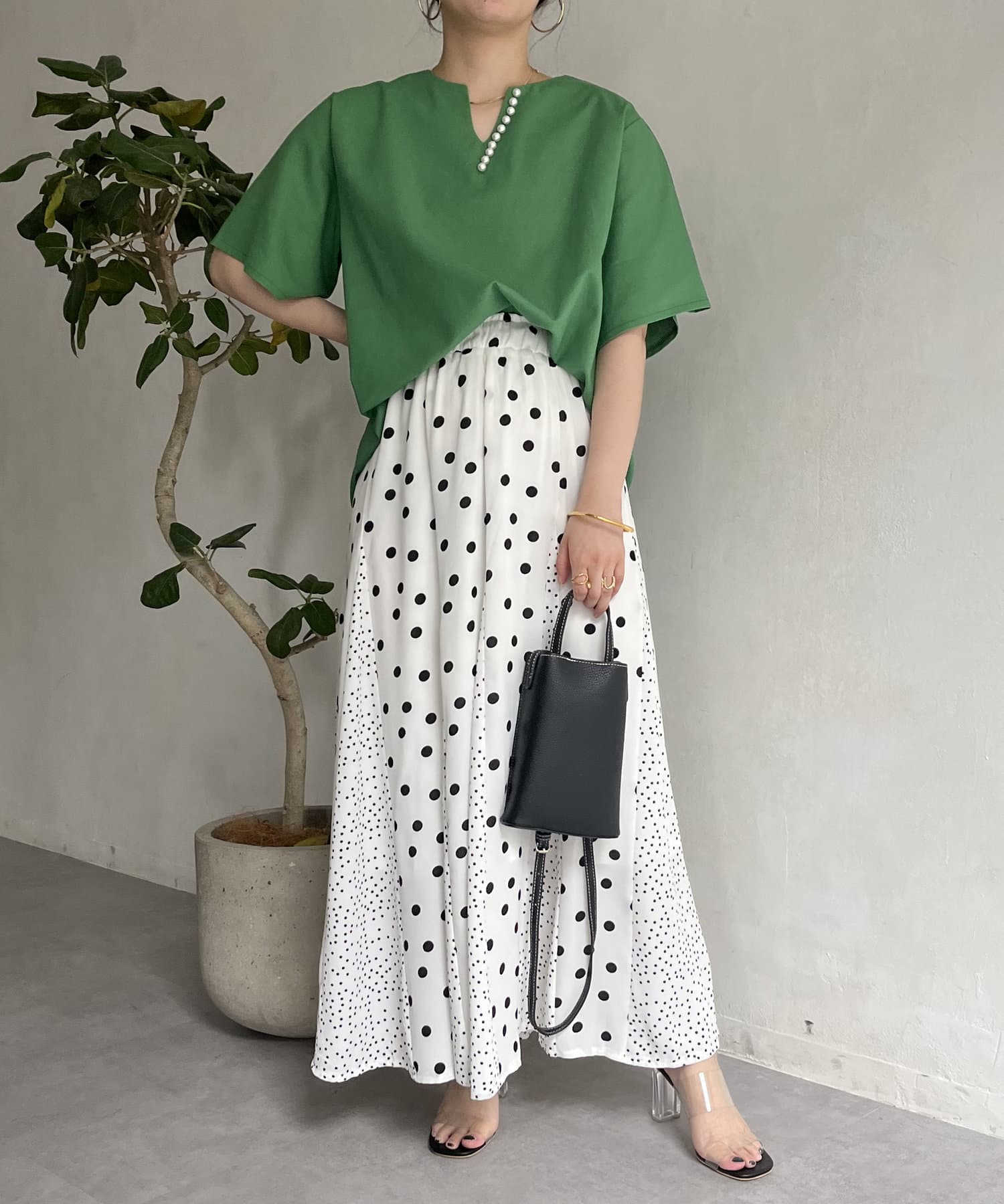 ●首元に施したパールデザインが目を引く上品デザイン