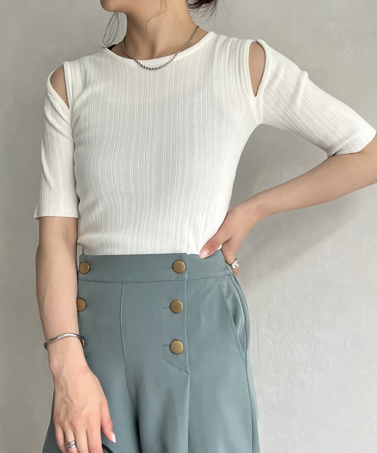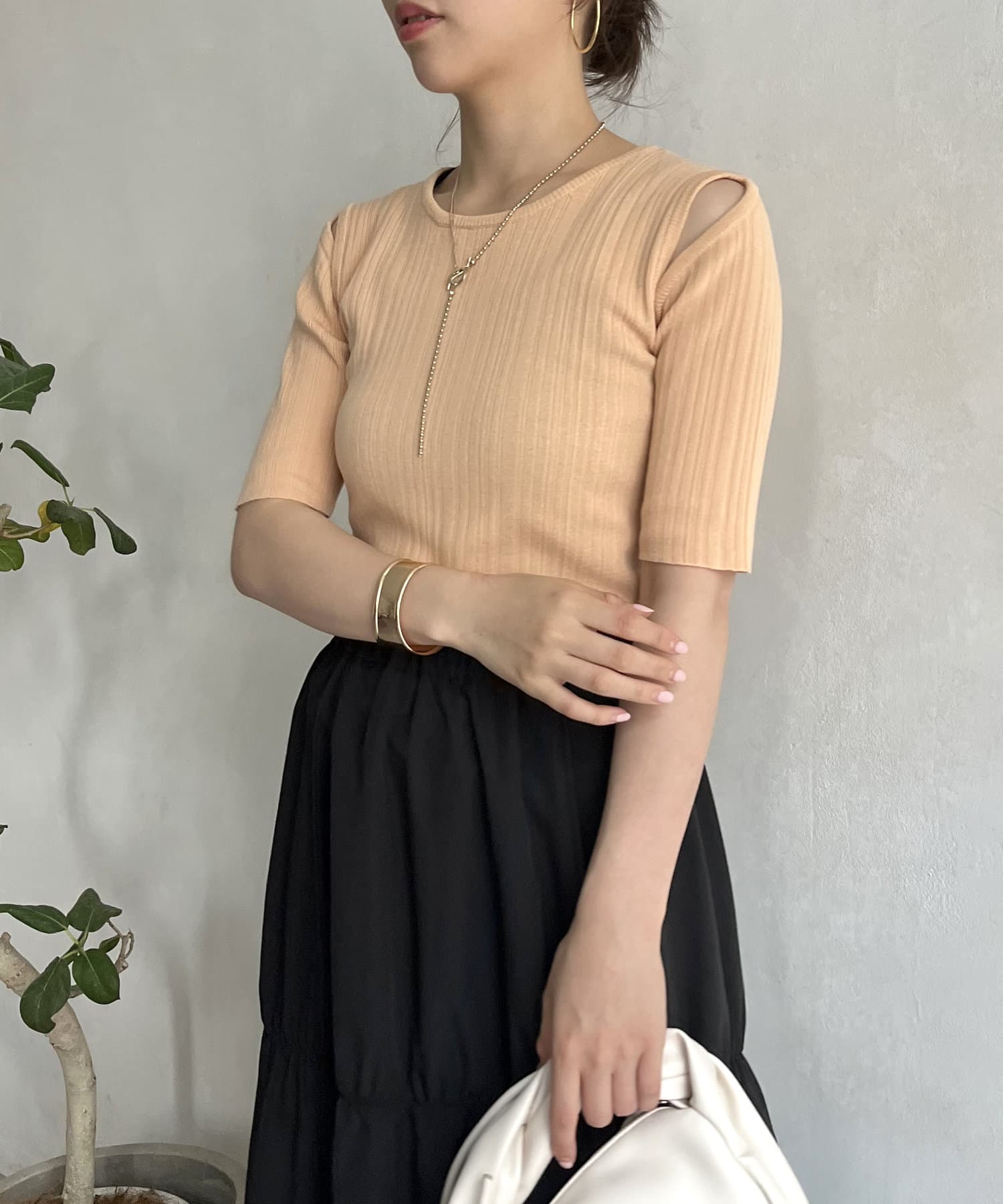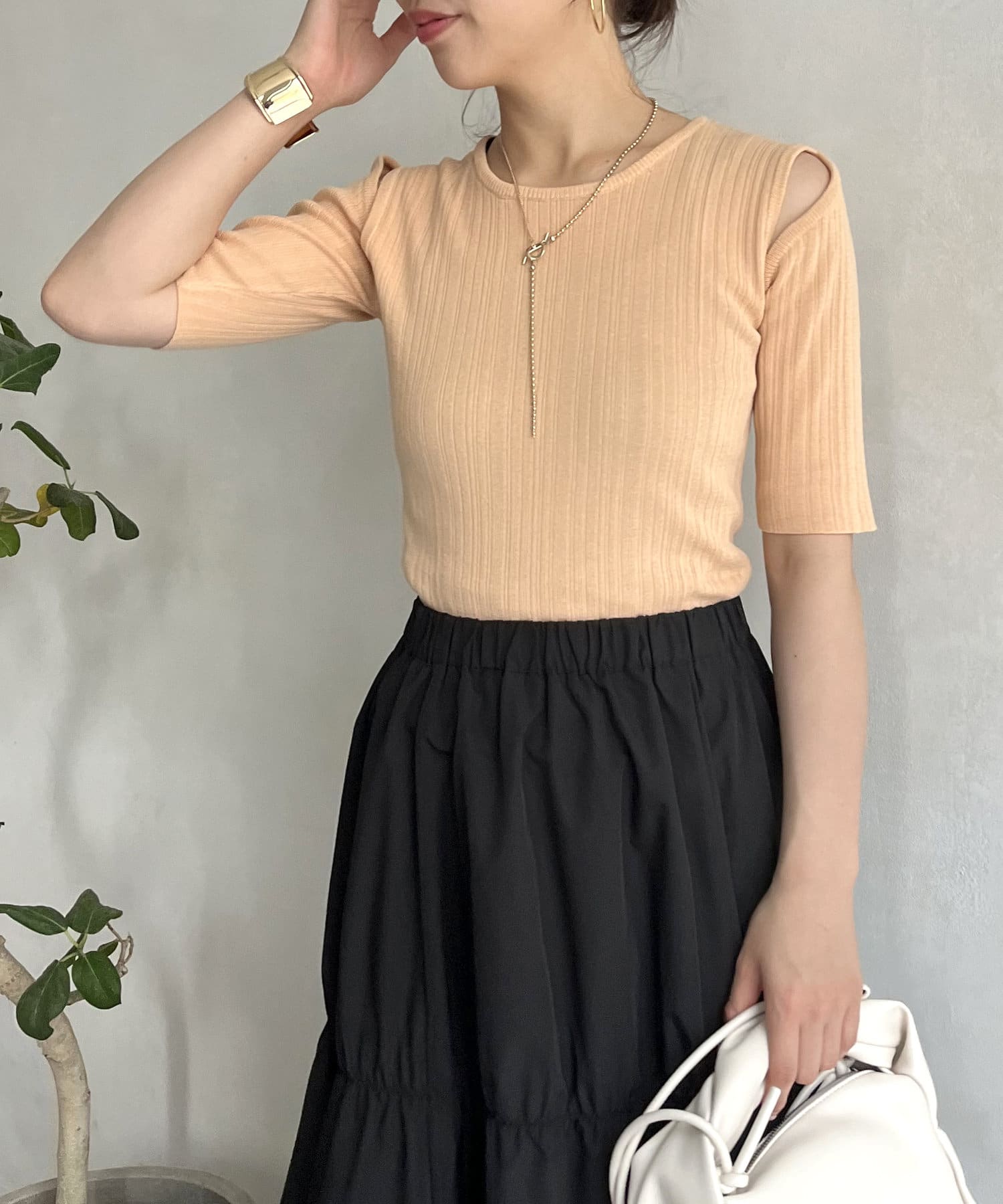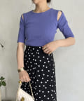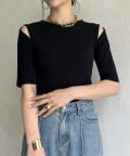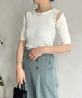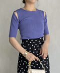 ●シンプルなデザインにカットデザインを取り入れたサマーニット