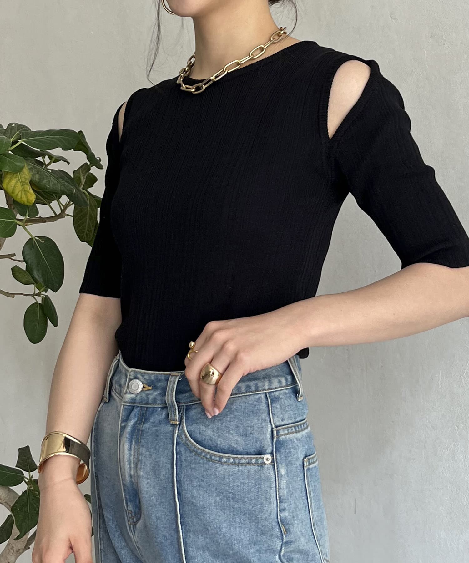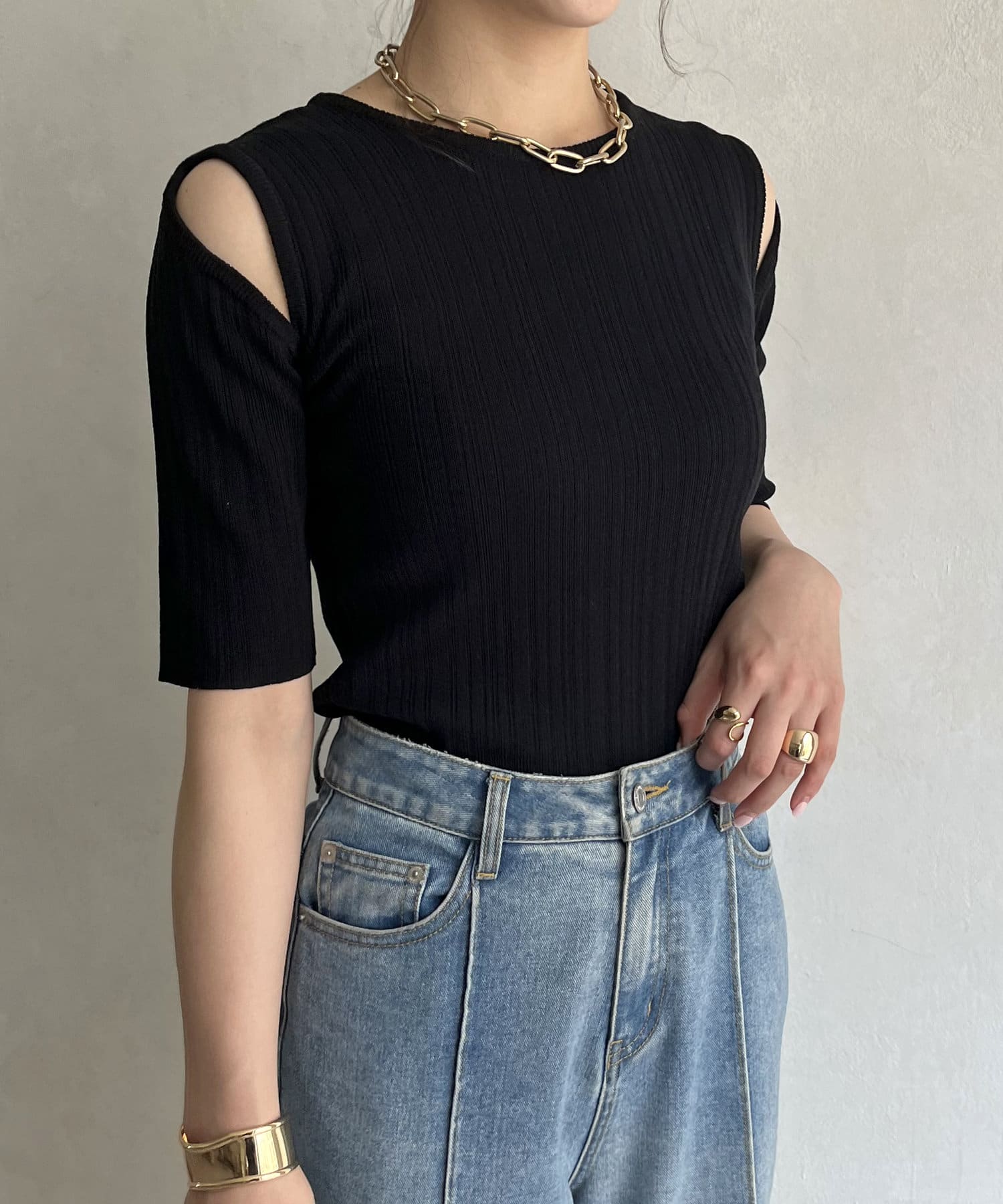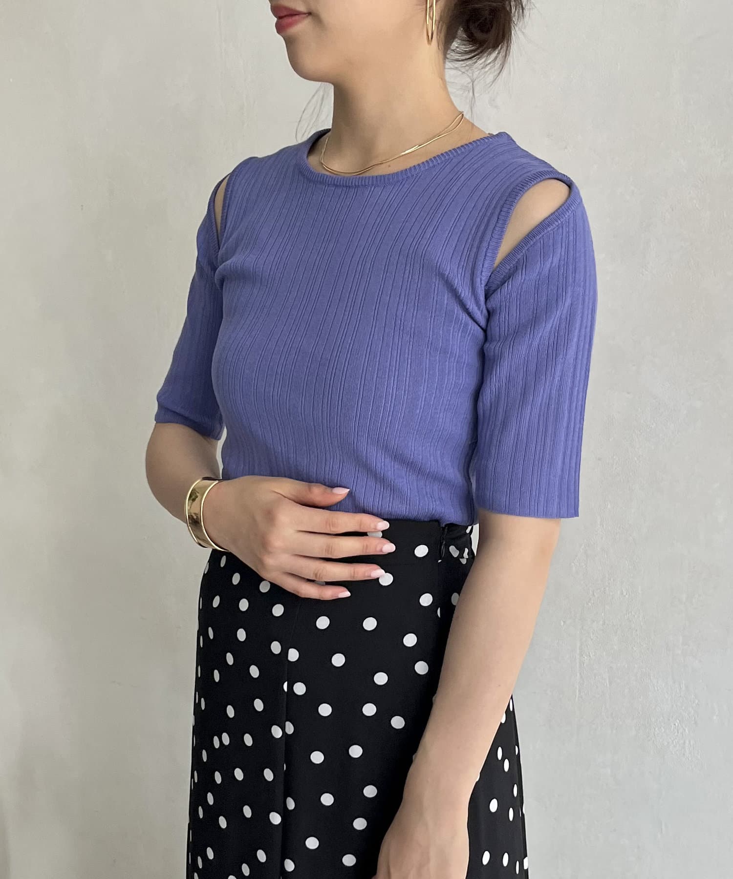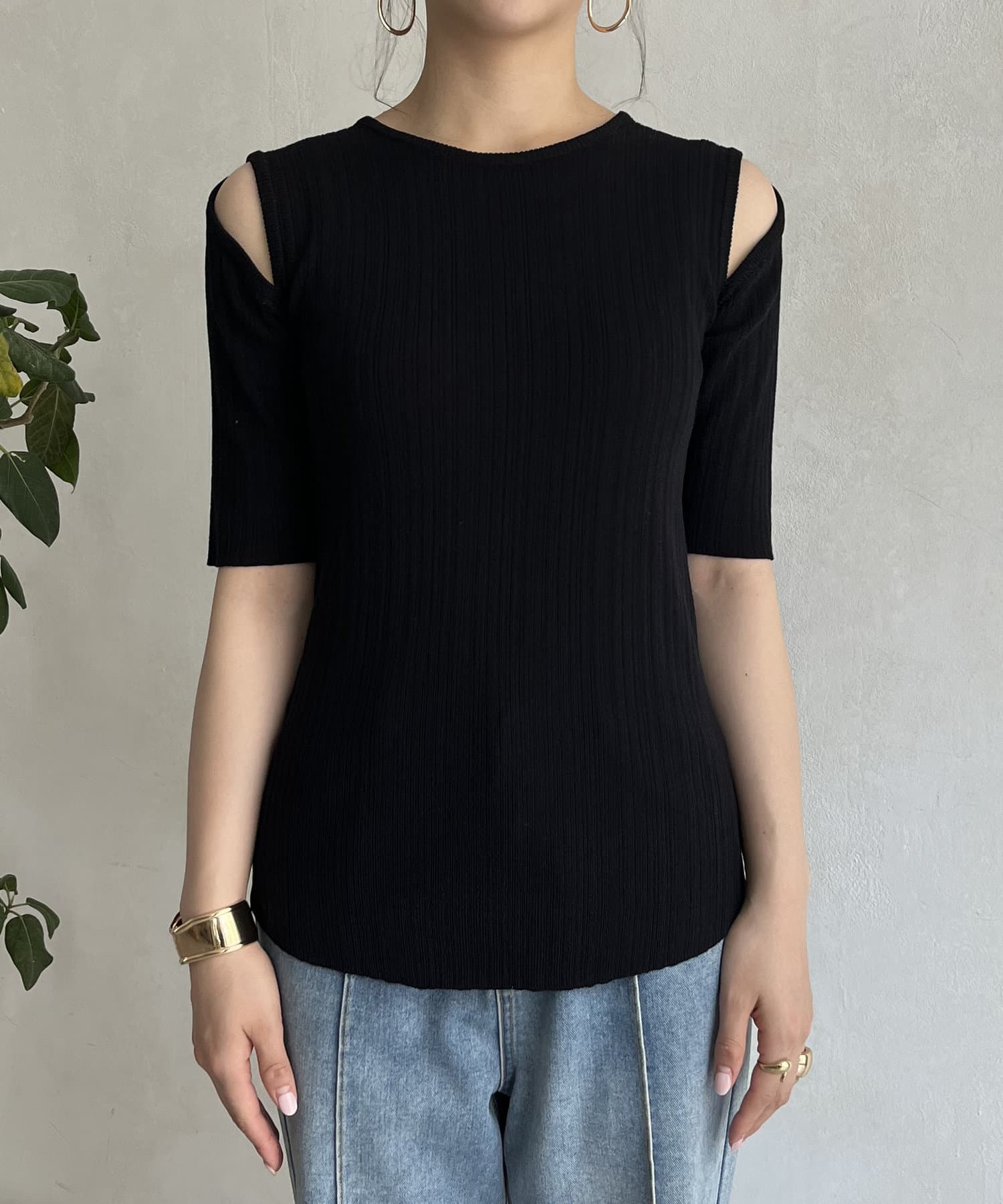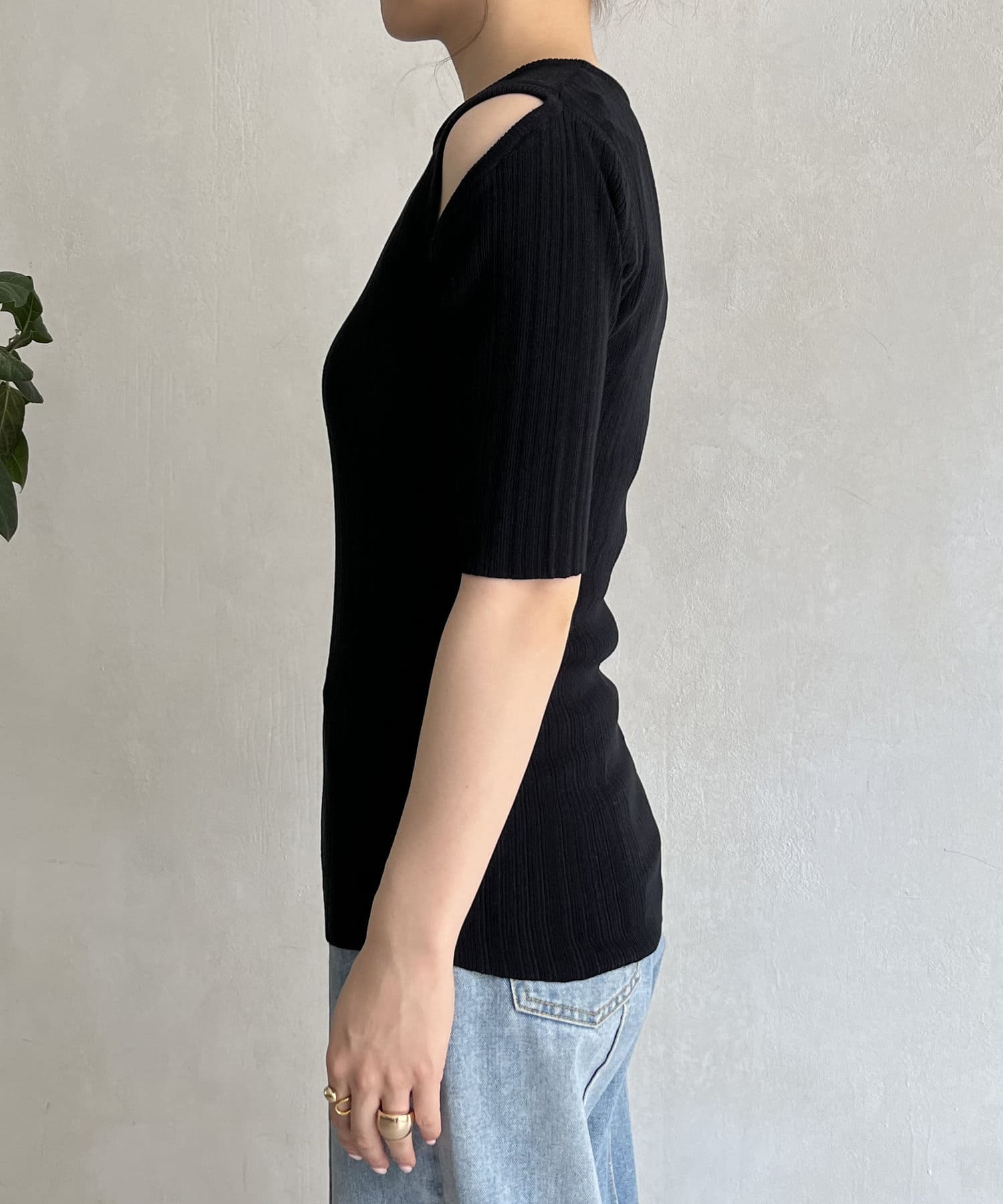 オープンショルダーハーフスリーブニット